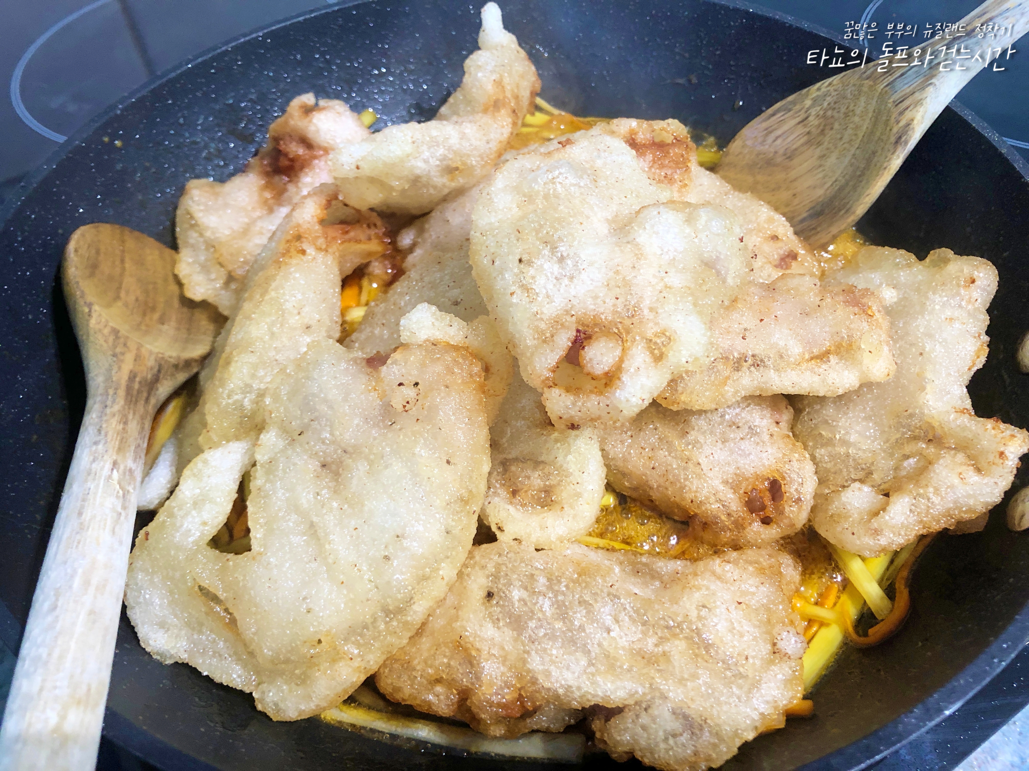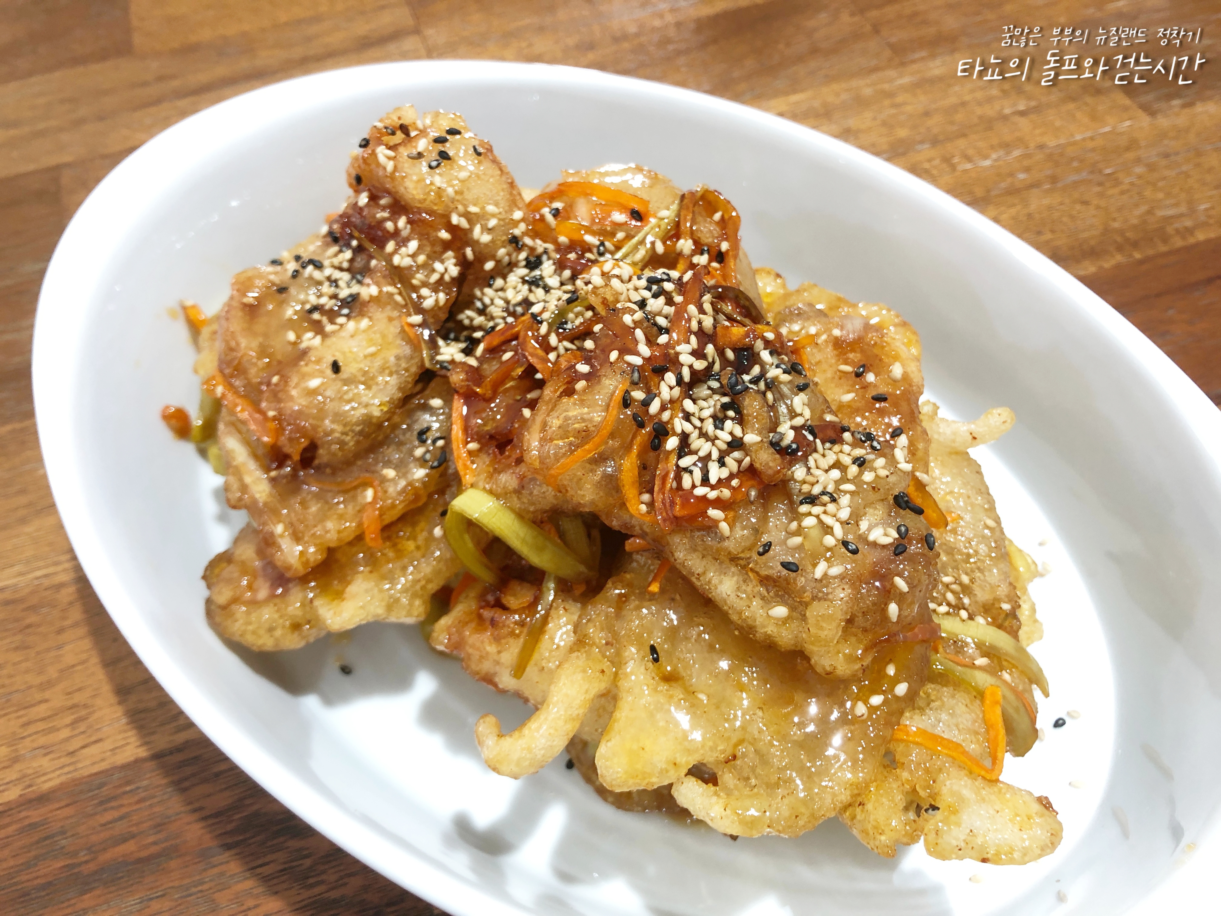 집에서 꿔바로우를 만들어 봤습니다. 제가 살고 있는 뉴질랜드 크라이스트처치는 현재 델타 변이 코로나 지역감염으로 인한 락다운 7일 차입니다. 집에 있으니 이것저것 평소에 귀찮아서 시도하지 않았던 음식들을 만들어 보고 있습니다. 꿔바로우는 중국인이 운영하는 레스토랑에서 간혹 판매를 하고 있습니다. 한국인들에게 인기가 좋은 음식이지만 다른 음식에 비해 가격이 비싸고 양이 적은 편이라 먹성 좋은 저희 부부에게는 언제나 부족하고 아쉬운 음식이었죠. 그래서 이번에는 아쉽지 않은 양으로 직접 만들어 봤습니다.