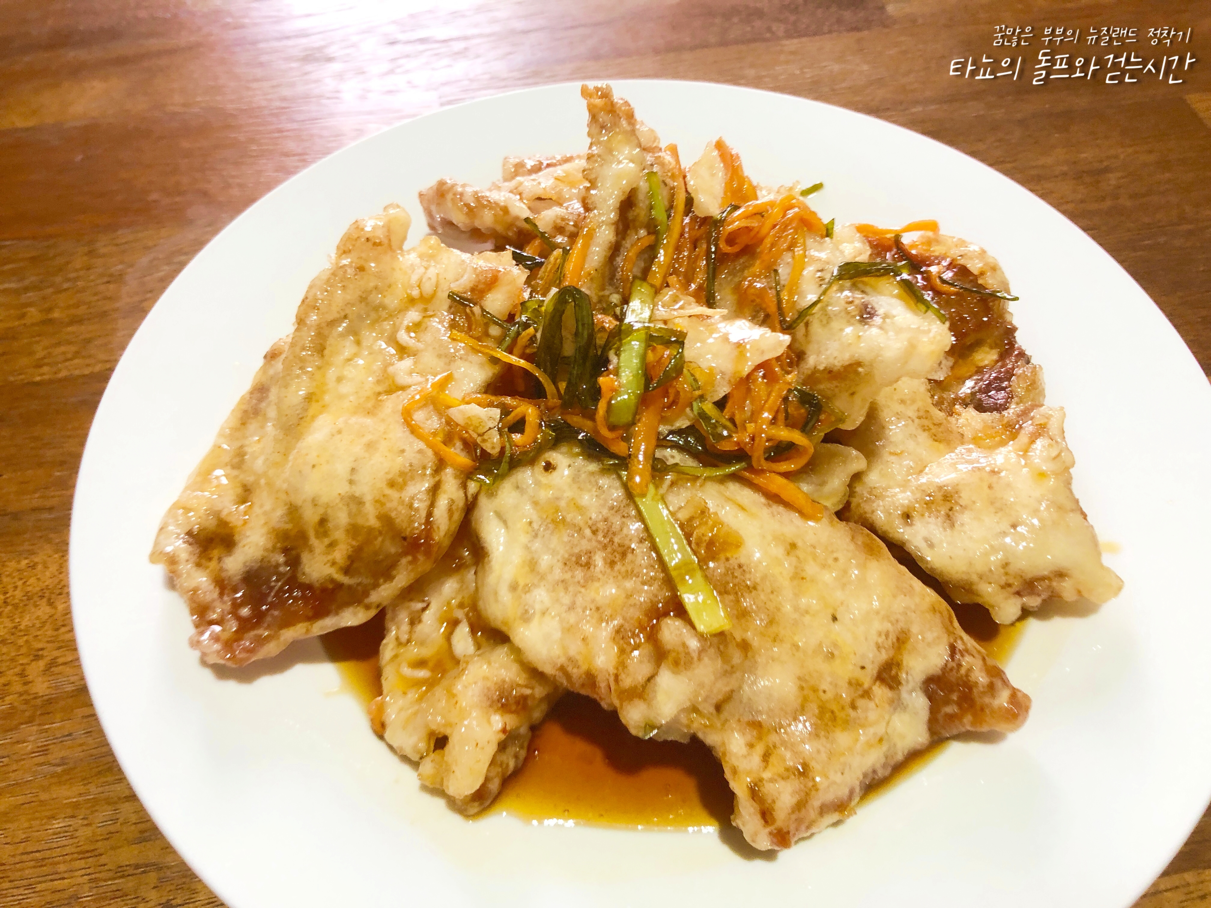 집에서 꿔바로우를 만들어 봤습니다. 제가 살고 있는 뉴질랜드 크라이스트처치는 현재 델타 변이 코로나 지역감염으로 인한 락다운 7일 차입니다. 집에 있으니 이것저것 평소에 귀찮아서 시도하지 않았던 음식들을 만들어 보고 있습니다. 꿔바로우는 중국인이 운영하는 레스토랑에서 간혹 판매를 하고 있습니다. 한국인들에게 인기가 좋은 음식이지만 다른 음식에 비해 가격이 비싸고 양이 적은 편이라 먹성 좋은 저희 부부에게는 언제나 부족하고 아쉬운 음식이었죠. 그래서 이번에는 아쉽지 않은 양으로 직접 만들어 봤습니다.