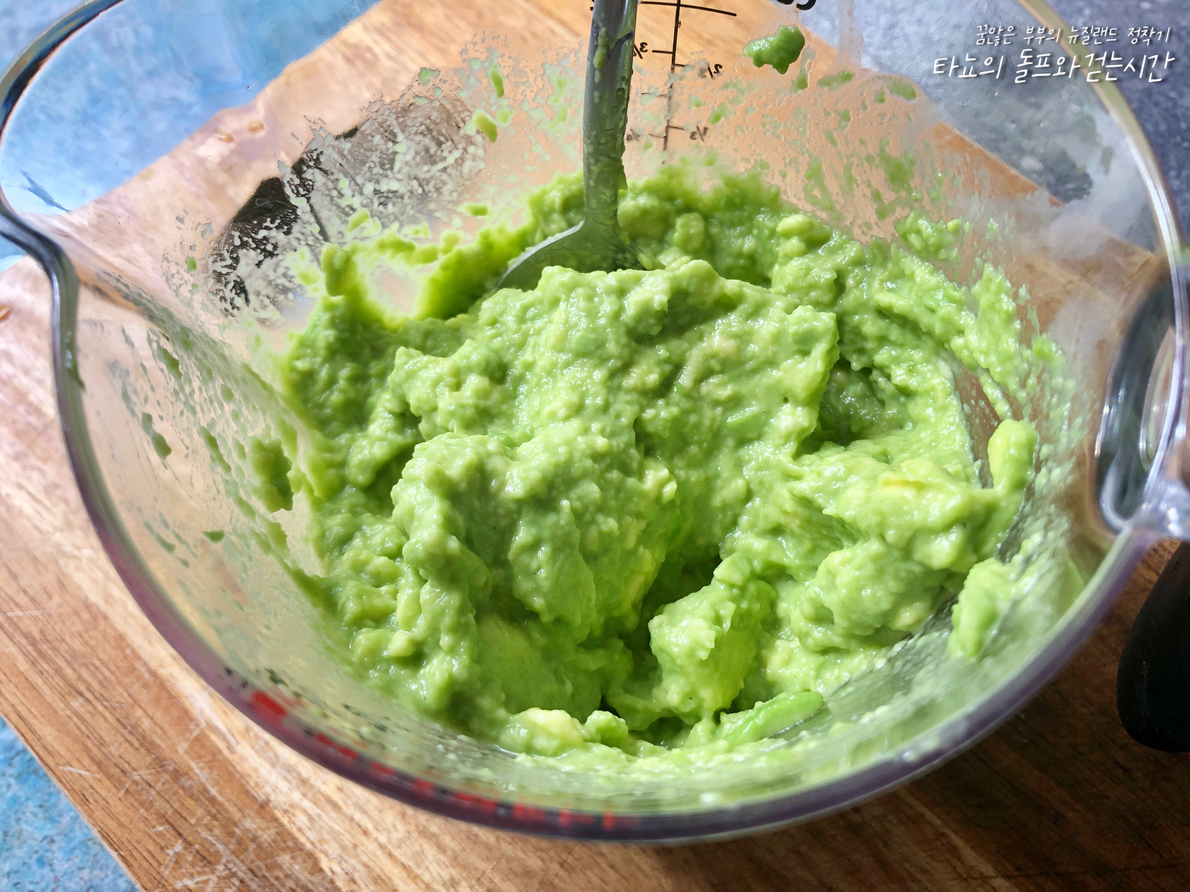 아보카도는 잘 으깨줍니다.