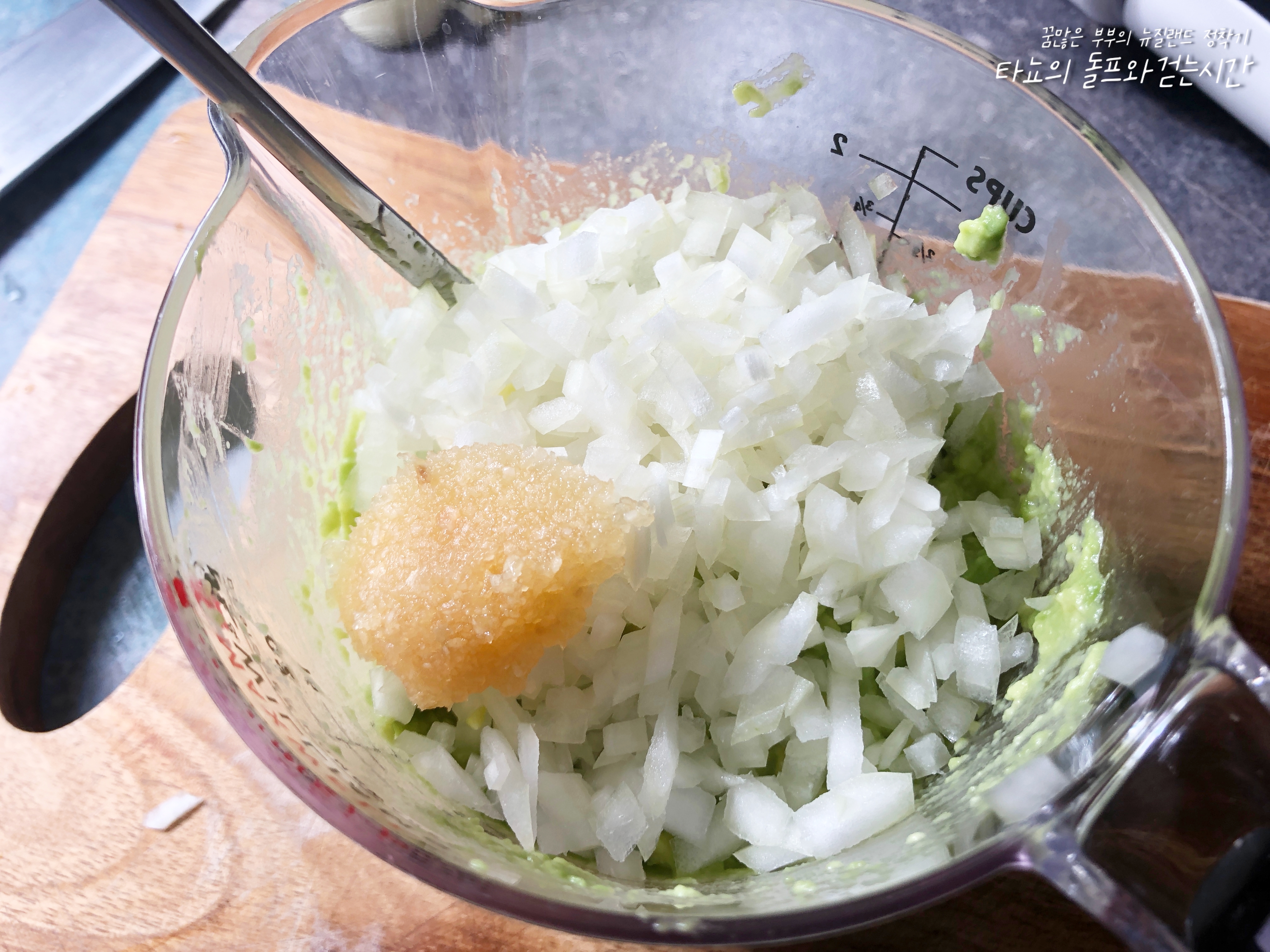 양파, 다진 마늘, 레몬즙, 소금 모두 넣어주세요.