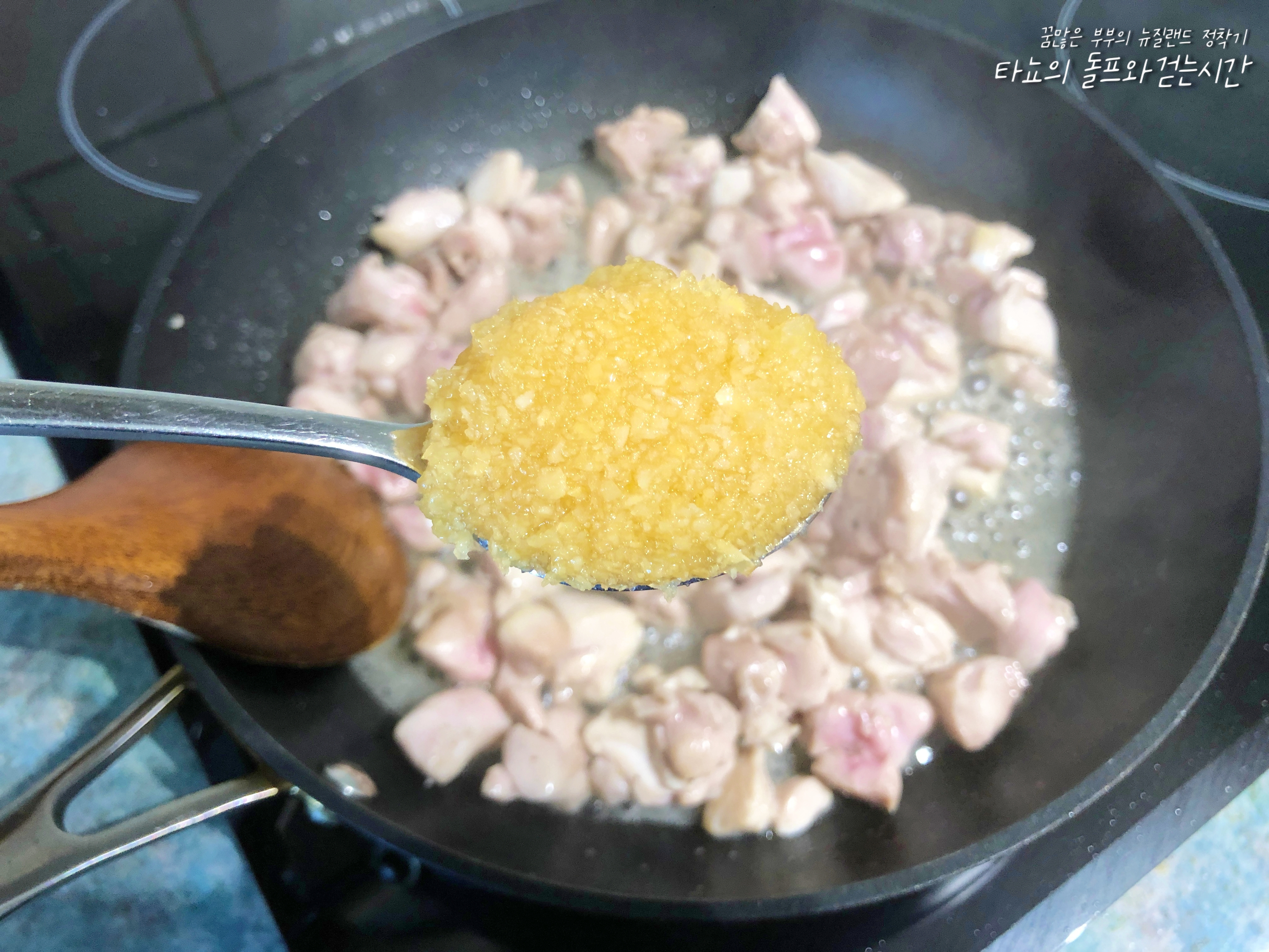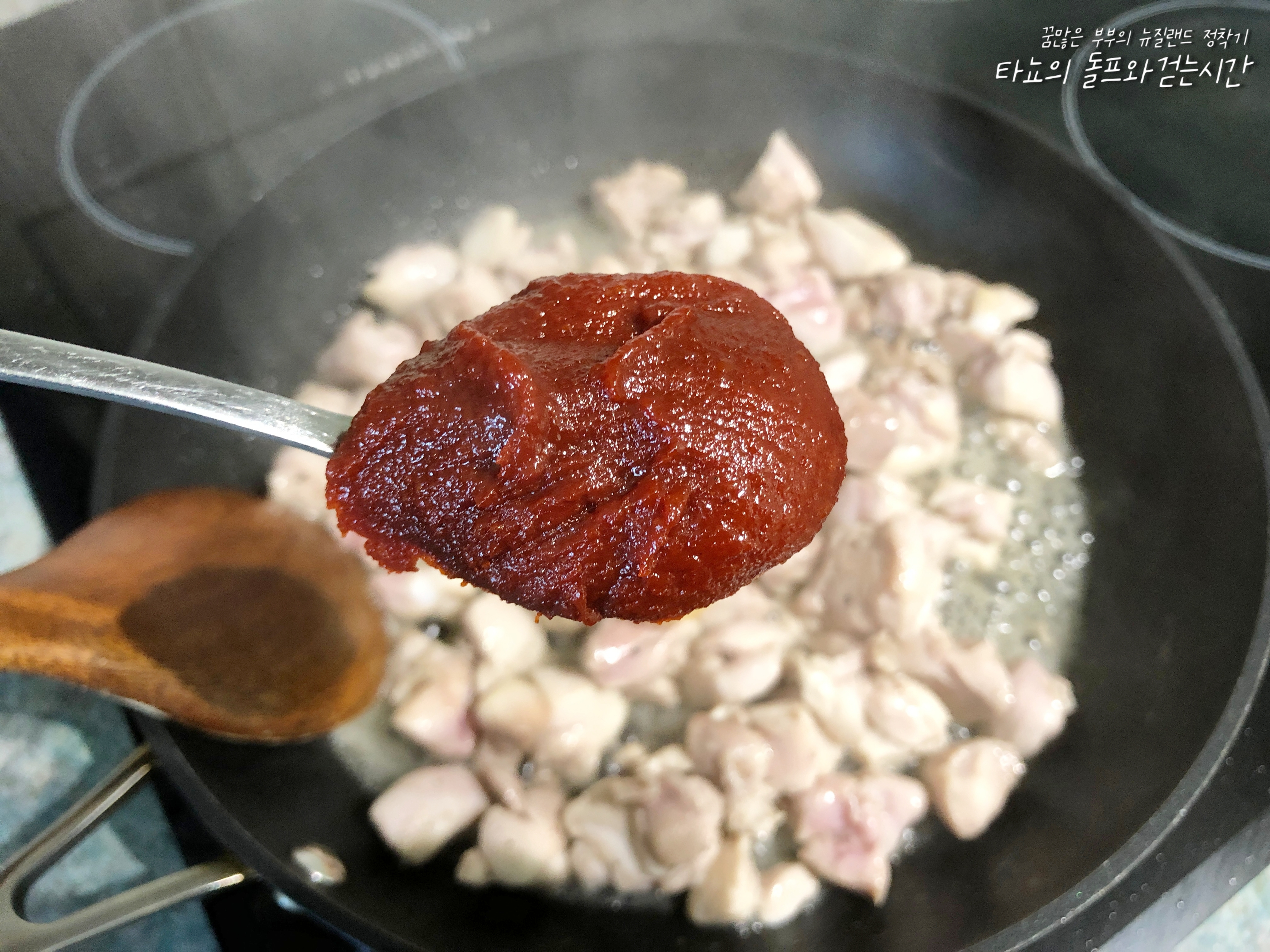 곧바로 다진마늘 1큰술, 진간장 2큰술, 고추장 1큰술 넣어주세요.