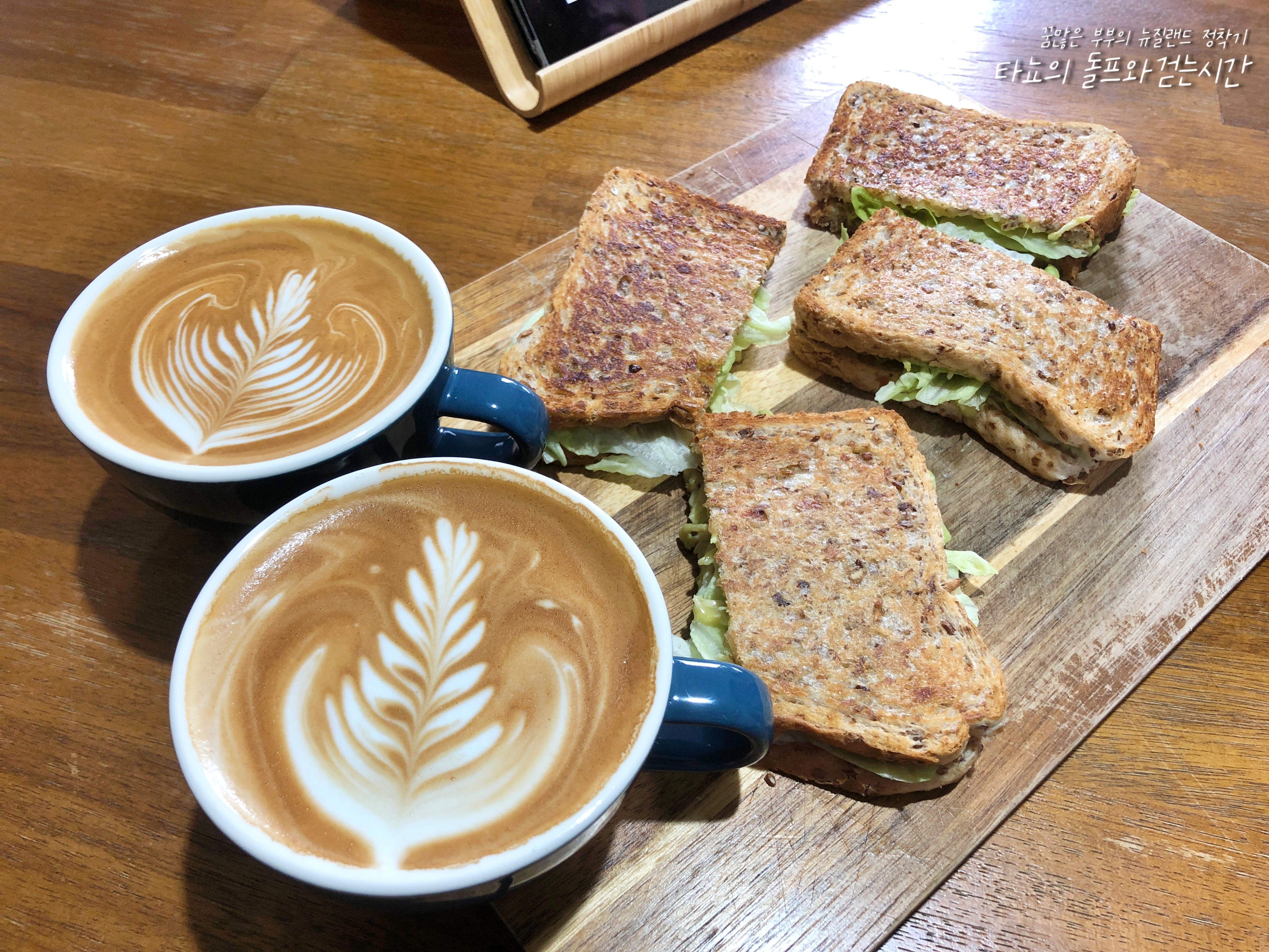 오잉, 신랑과 함께 즐기는 아침식사에 먹었던 치킨 바질 페스토 토스트와 플랫화이트, 굳이 아침으로 뭔가를 고를 수 있다면 당연히 한식을 고르겠지만... 뭐 만만한 게 이런 밥상이라 아침에는 보통 이런 식으로 먹습니다.