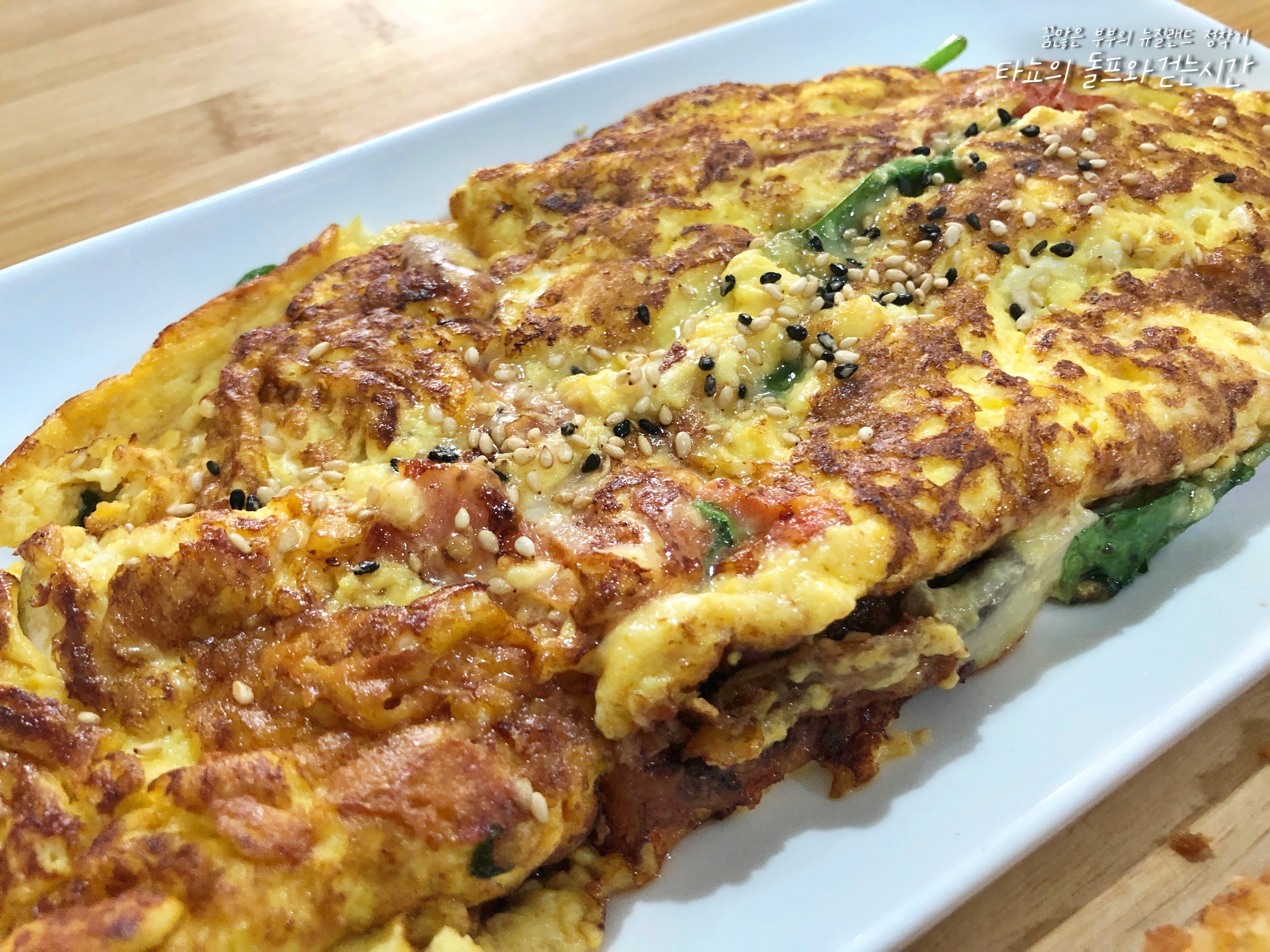 전날 저녁 간식으로 먹었던 해시 포테이토와 과카몰리를 얹은 피자와 잔뜩 차려서 먹은 아침 밥상입니다. 강된장, 각종 나물 무침, 파전, 오믈렛, 김치찌개까지 정말 완벽한 아침밥상! 이거 먹고 너무 든든해서 점심은 건너뛰었습니다.