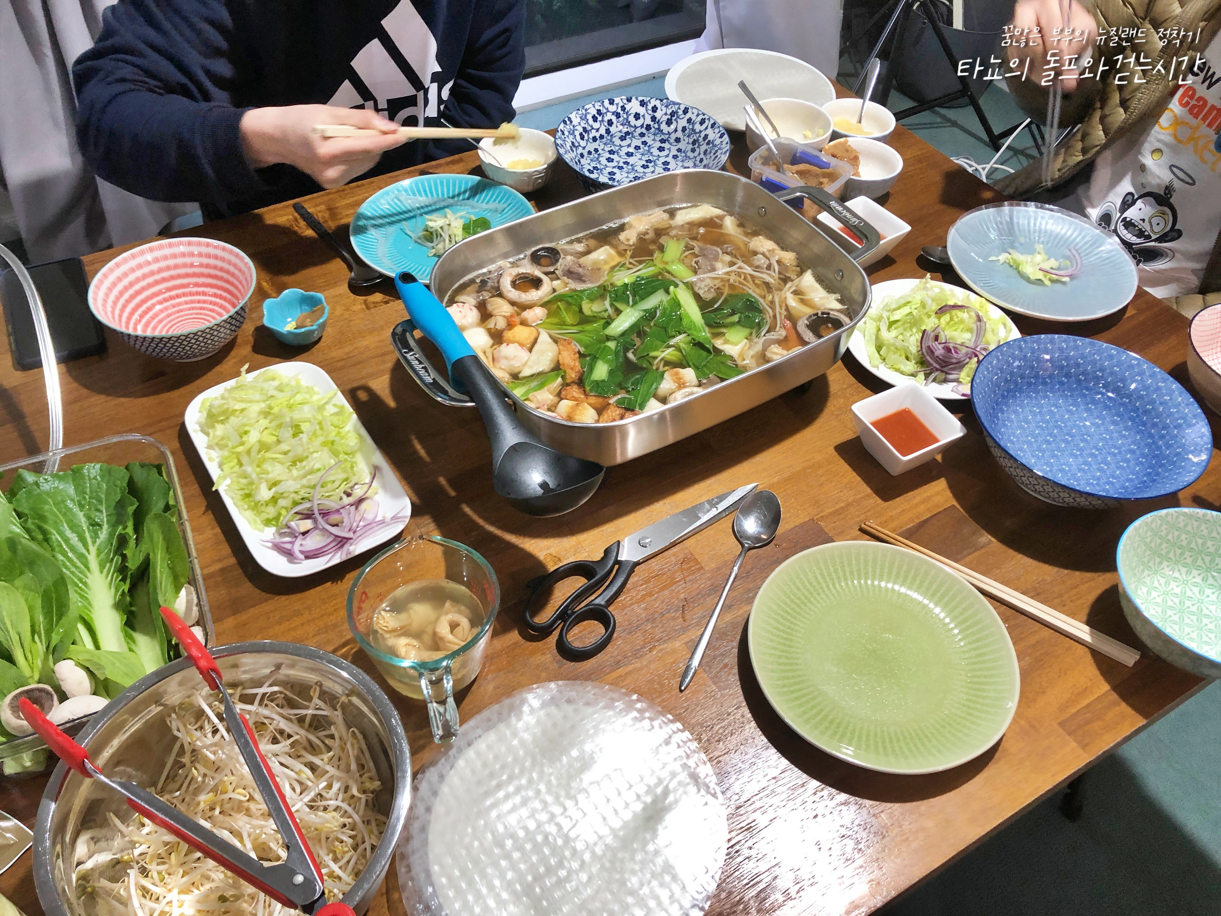 주말 저녁으로 플메와 함께 먹은 샤브샤브와 월남쌈입니다. 아직은 야채값이 너무 비싸서 파프리카나 오이 같은 채소는 꿈도 꾸지 못합니다. 주먹만 한 파프리카 하나에 5천 원 정도인데 월남쌈에 넣겠다고 사려니 손이 떨리더라고요. 오이도 가격이 비슷하고요. 사시사철 가격 변동이 없는 청경채와 숙주나물이 가장 만만한 샤브샤브 채소입니다. 월남쌈에 넣을 채소로는 적양파와 양상추 준비했어요. 벌써 봄이 왔지만, 저녁에는 조금 쌀쌀한 기온이라 샤브샤브를 먹기에는 좋은 것 같습니다. 마무리로 쌀국수까지 아주 알차게 잘 챙겨 먹었습니다.