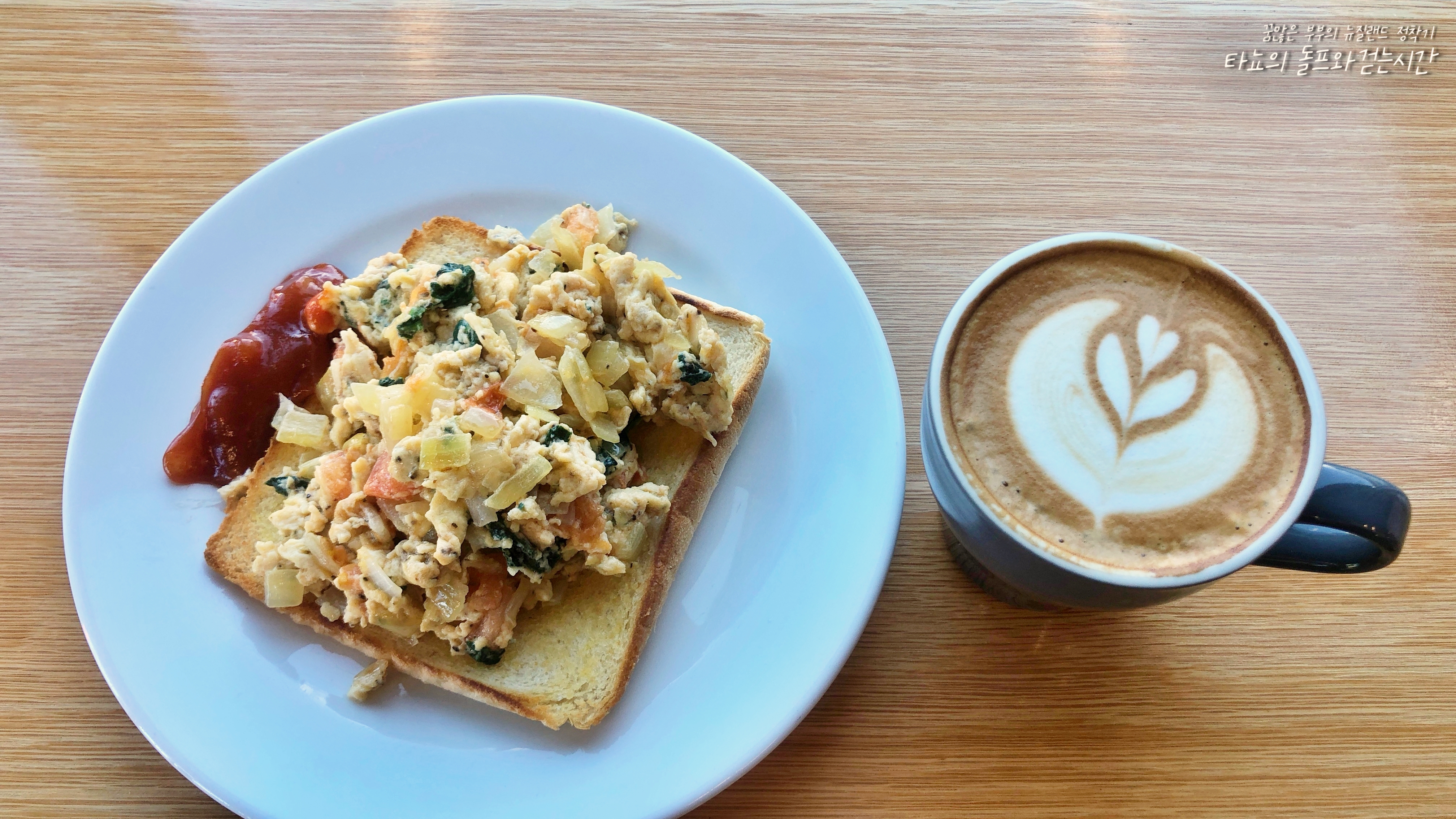 스크램블 에그 온 토스트와 플랫화이트