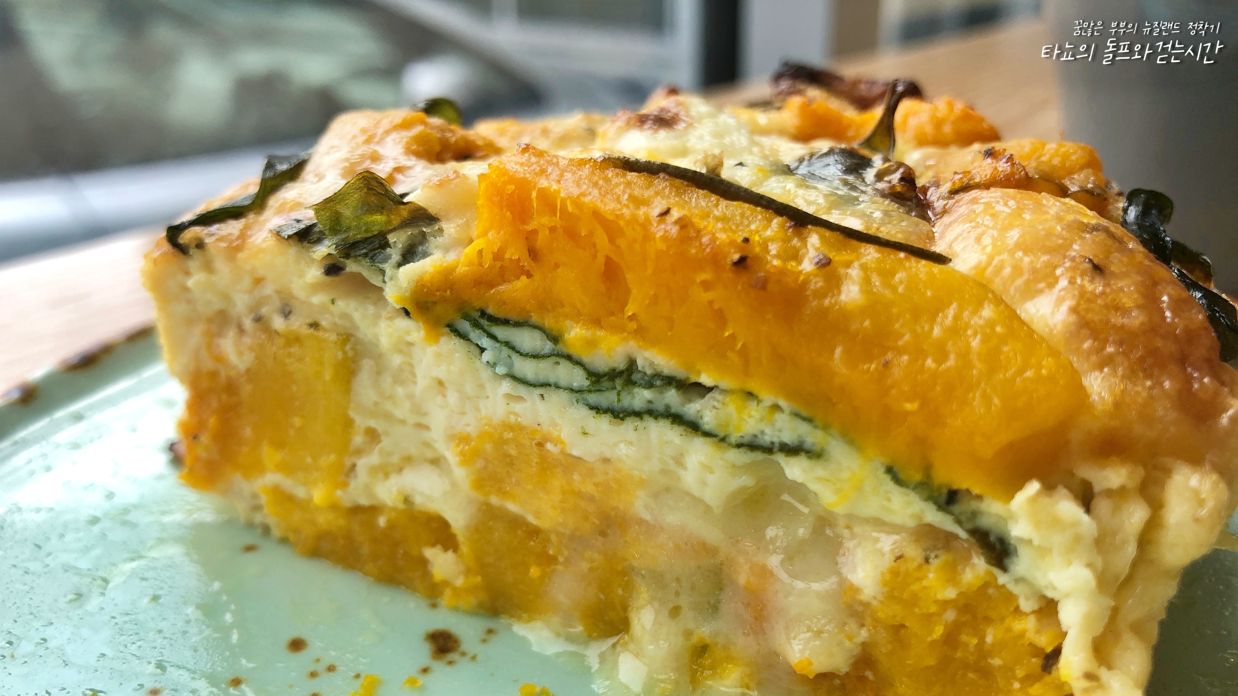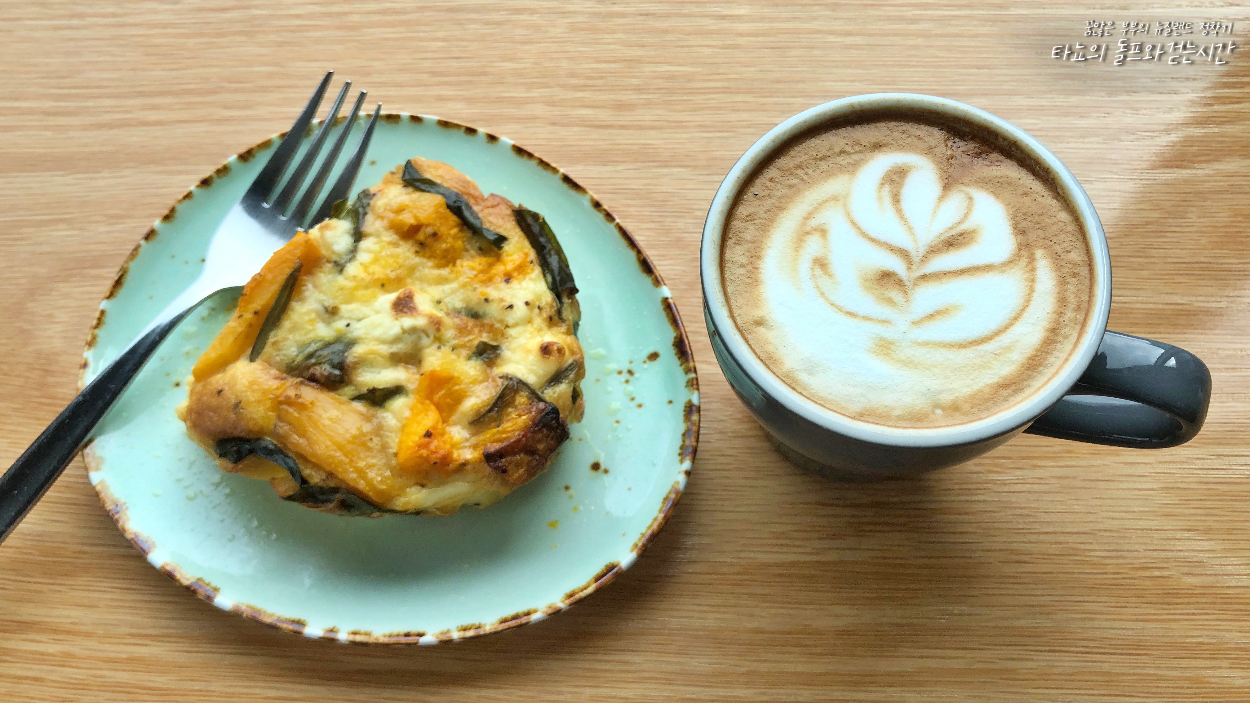 호박, 달걀, 감자, 당근, 시금치, 치즈 듬뿍 들어간 펌킨 프리타타와 플랫화이트. 프리타타는 일종의 달걀찜이죠.