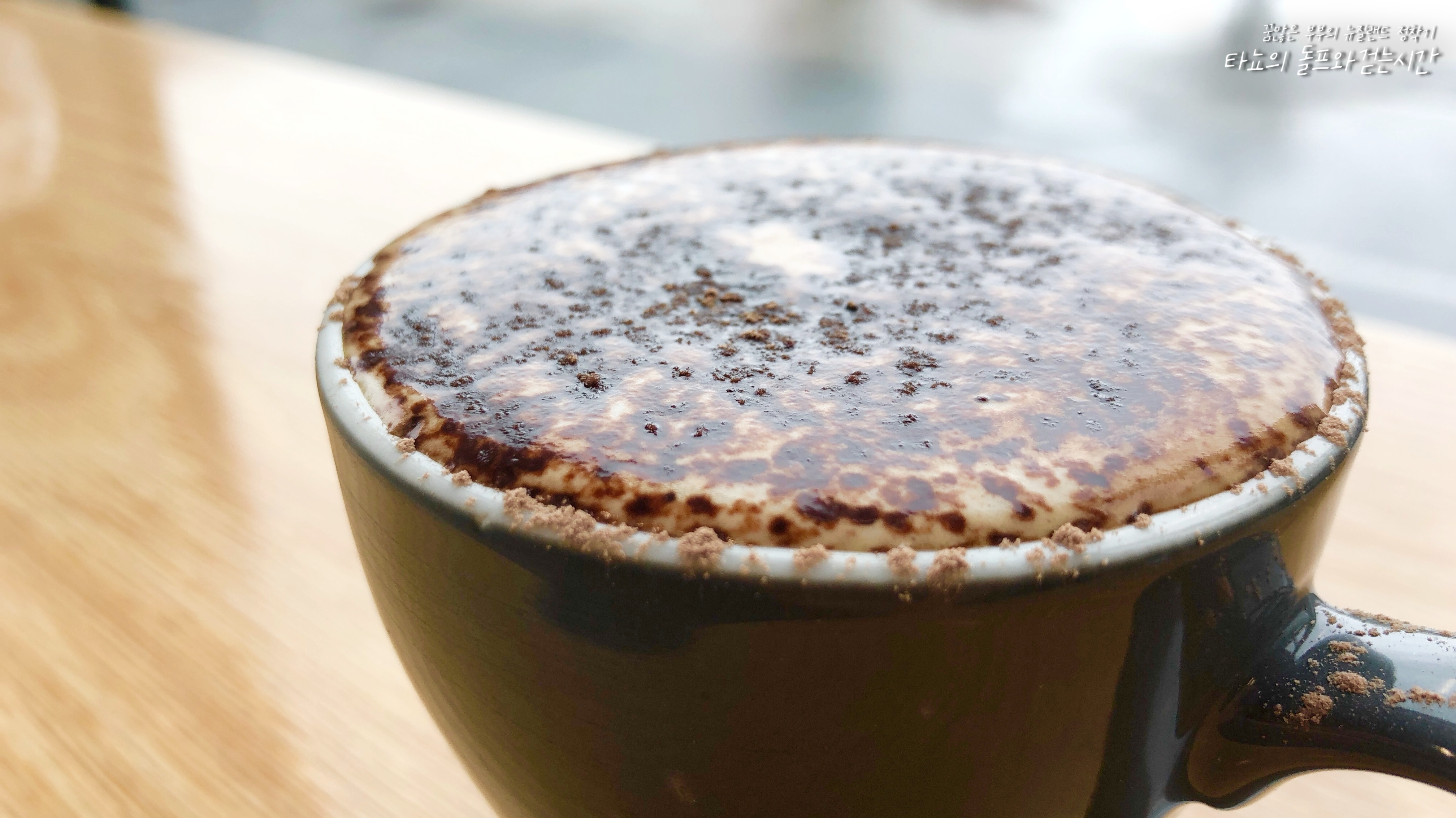 스트레스가 많았던 어느 날에 마셨던 초콜릿 파우더 잔뜩 플랫화이트