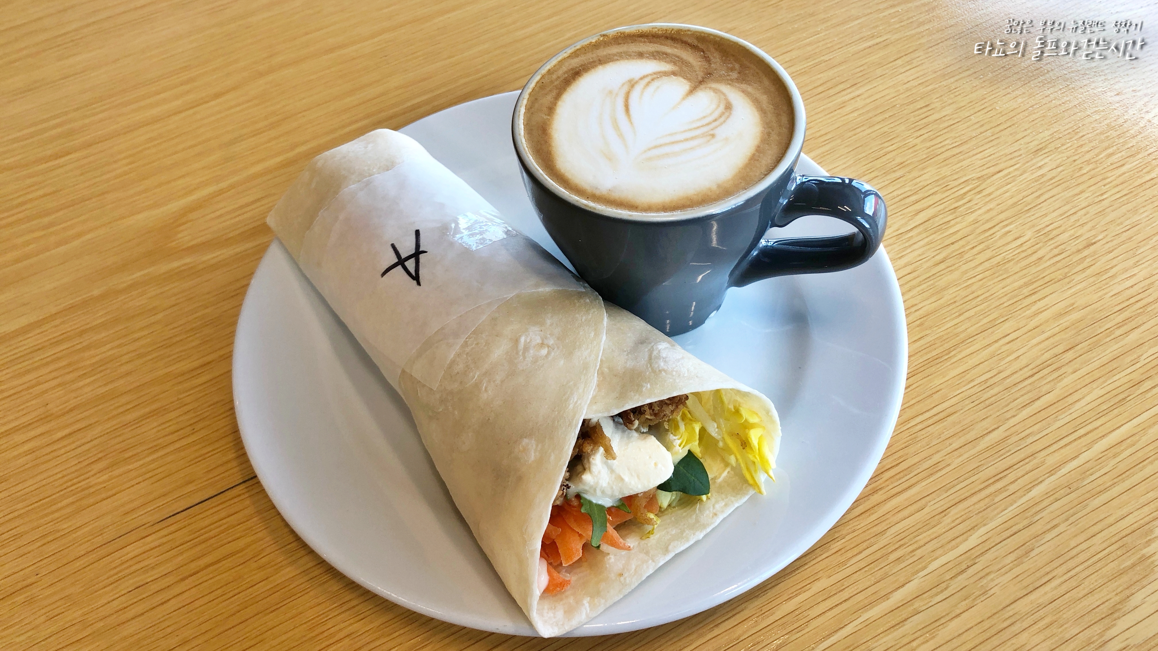 아이올리 치킨랩과 플랫화이트. 어제 아침에 싼 게 하나 남아서 제가 먹게 되었네요. 이거 남는 날은 잘 없어서 먹는 날은 좋은 날ㅋ