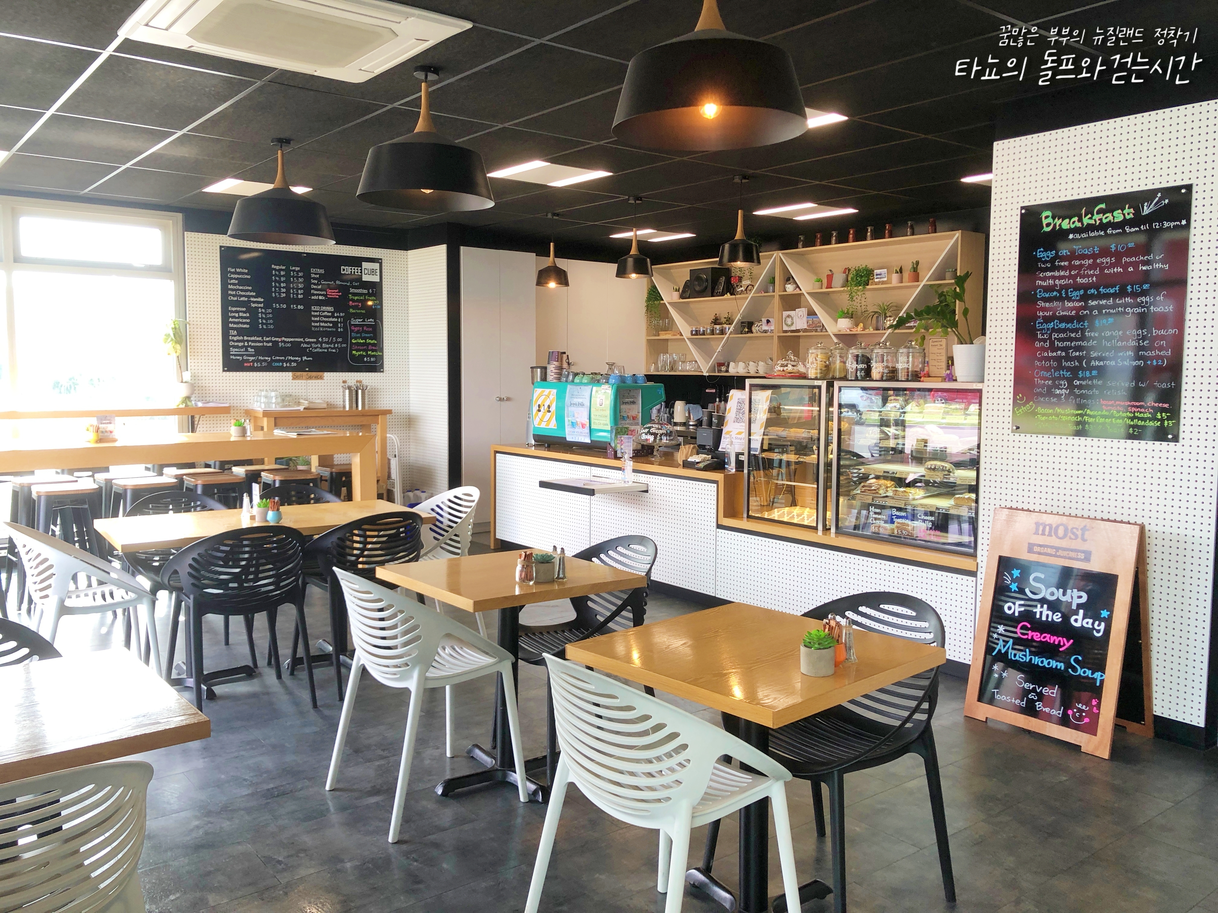 외국 카페에서 근무하는 사람들의 브이로그를 보면서 익숙해질 때까지 쉐도잉하고 거기서 나왔던 문장들을 매번 종이에 적었어요. 그리고 제가 종종 사용할 것 같은 문장은 붙여두고 달달 외웠죠. 외운 문장도 실제로 사람에게 던지는 게 얼마나 어렵던지요. 외국에서 몇 년을 살았지만, 울렁증이라는 게 정말 있더라고요. 벌써 5년째 뉴질랜드에 살고 있지만, 신랑과 함께 한국말로 이야기하고 지난 4년은 집에서 한국어로 재택근무만 했고 가깝게 지내는 사람들도 모두 한인들이다 보니 자연스럽게 영어는 더 멀어졌던 것 같습니다.