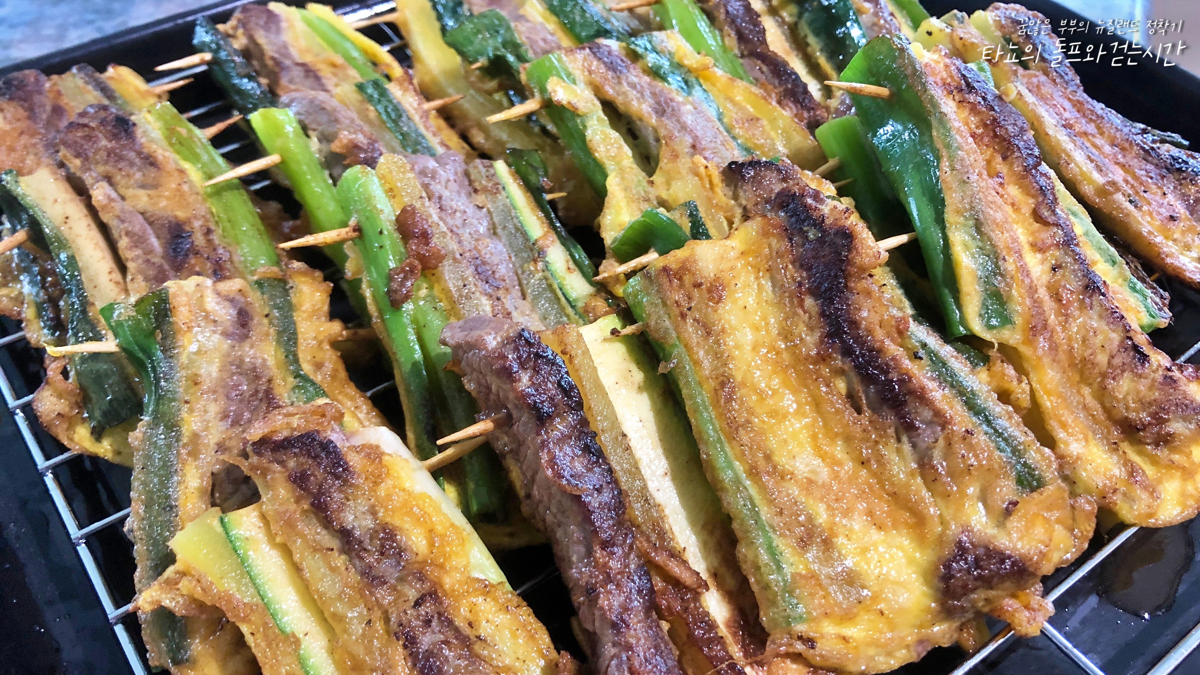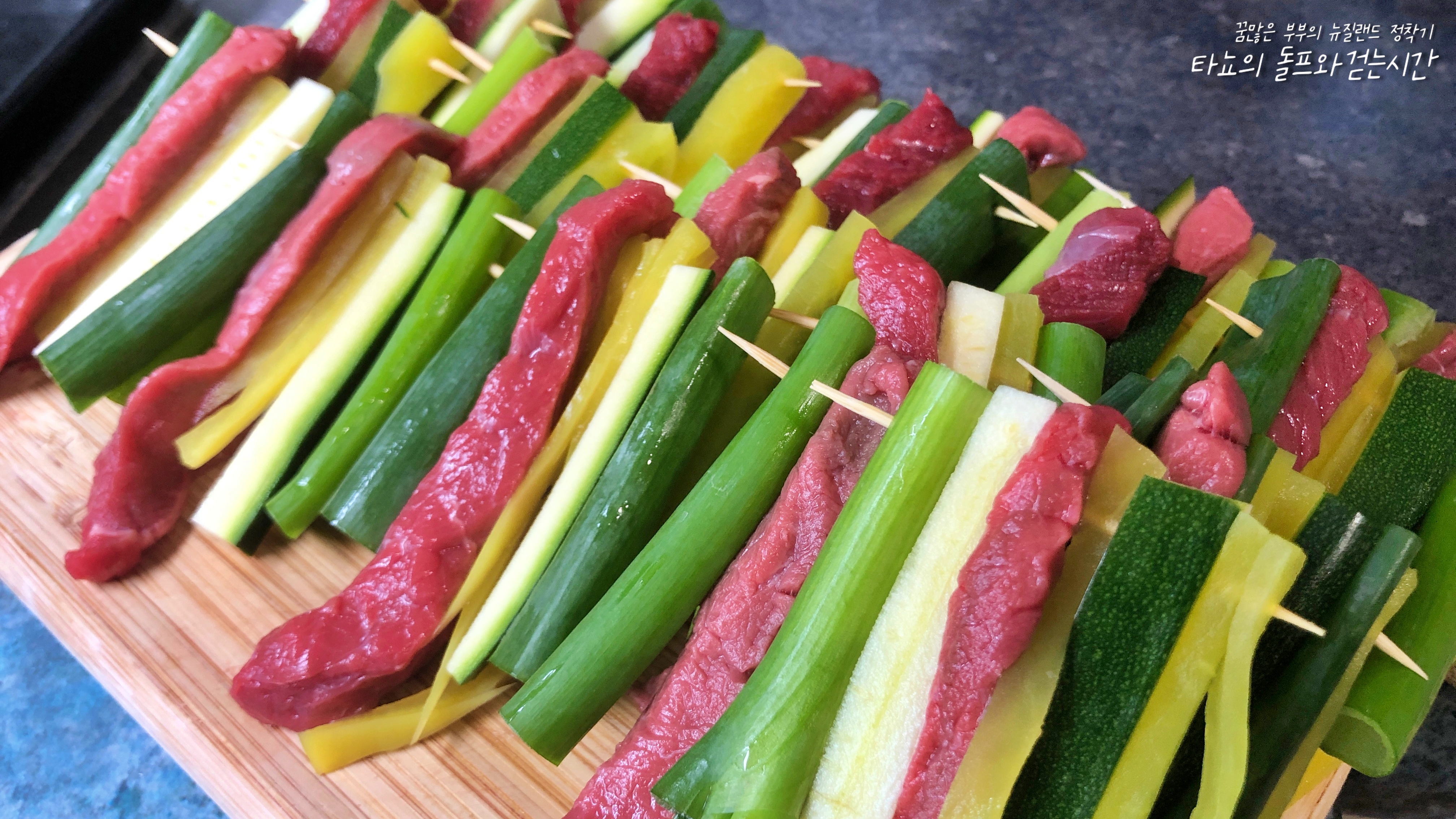 외국에 살지만 가끔 명절에 먹던 전이 먹고 싶을 때가 있습니다. 여기서는 딱히 명절을 챙기지 않기 때문에 명절 음식을 만들 일도 잘 없는데요. 그래도 먹고 싶은 순간이 오면 이렇게 준비를 하죠. 신랑과 제가 가장 좋아하는 명절 음식은 바로 산적꼬치입니다. 비록 한국에서 주로 사용하던 느타리버섯이 없어서 조금 아쉽긴 하지만, 그래도 소고기가 싼 편이라 큼직하게 넣을 수 있다는 점에서 위로를 느낍니다. 실제로 호박과 파값이 워낙 비쌌는데 소고기보다 더 비쌌습니다.