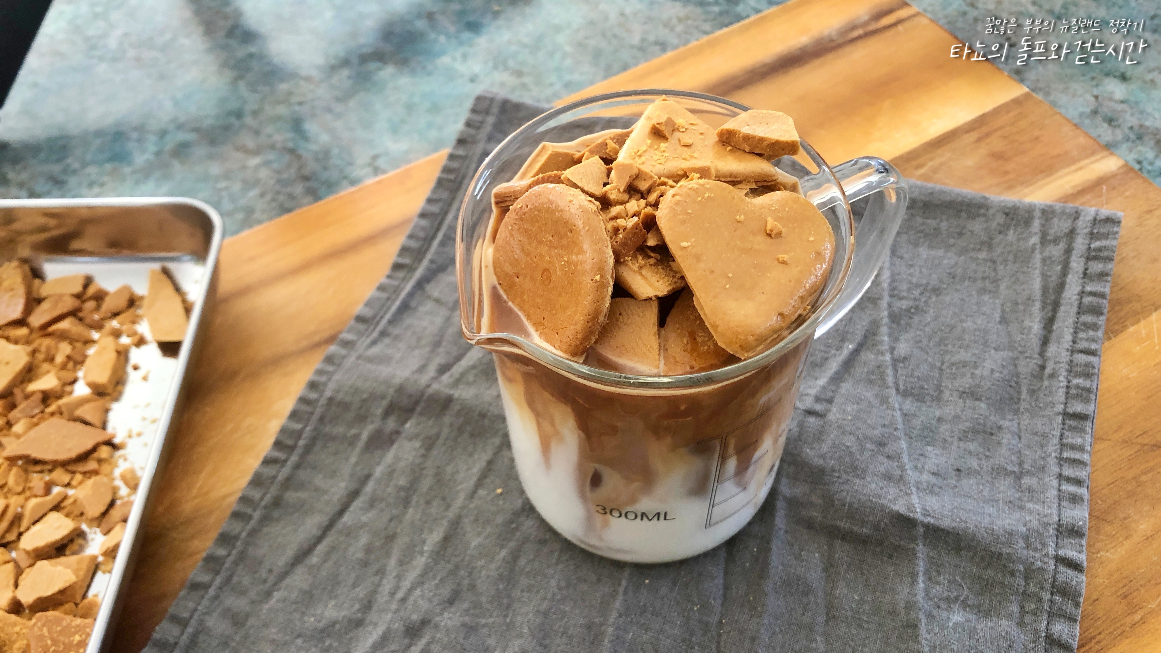 스트레스를 깨부술 수 있는 달콤한 달고나 크런치 라테를 집에서 만들어 봤습니다. 2잔 만들어서 신랑이랑 커피 타임을 즐겼죠.