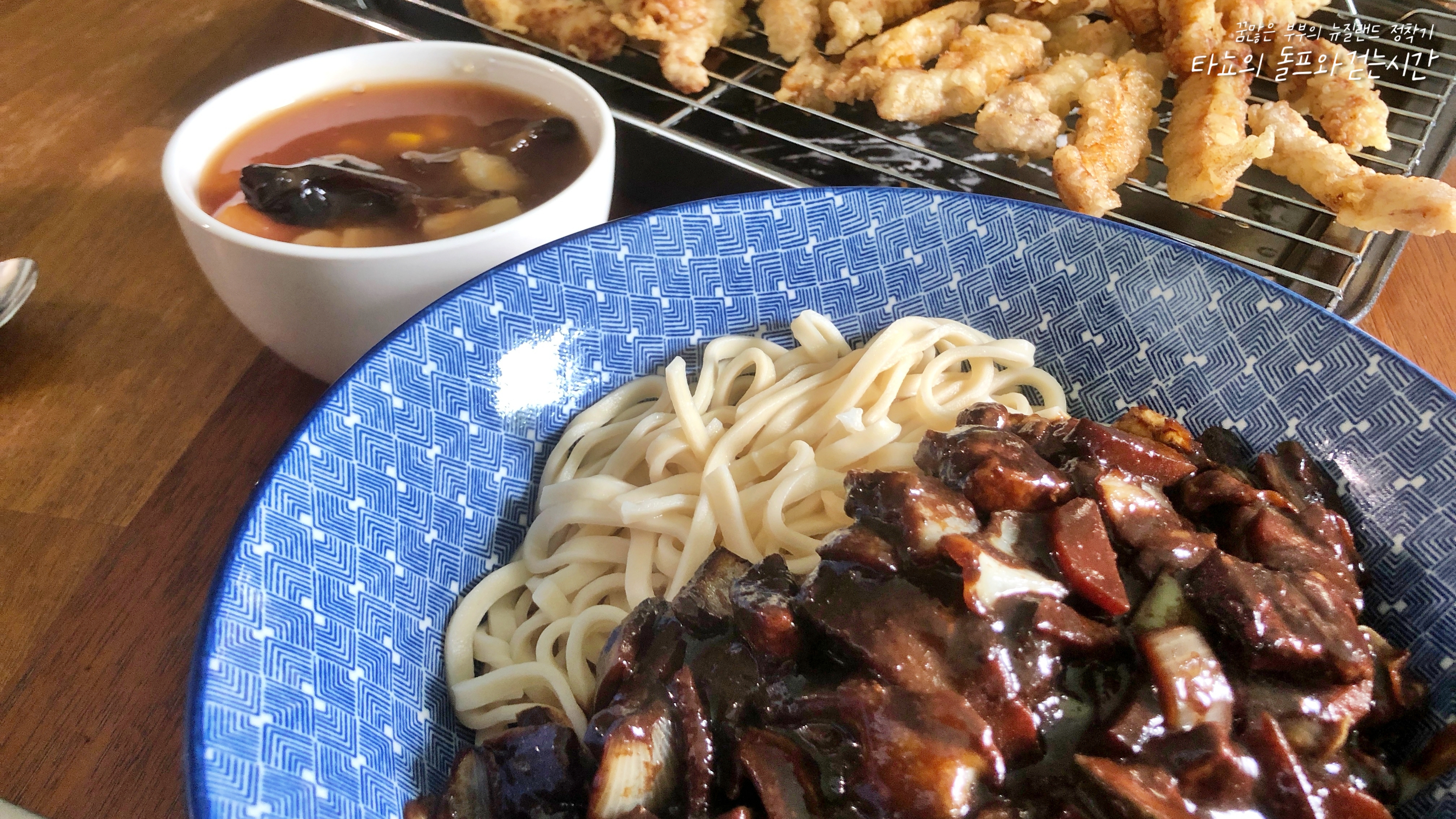 탕수육에 짜장면이 빠질 수 없죠. 춘장 사서 맛나게 만들어낸 소스에 시판용 면 넣어서 먹었습니다. 매번 참 아쉬운 게 면인데요. 짜장면 전용 면을 파는 것이 아니기 때문에 아시안 마트에서 판매하는 '에그 누들'을 주로 사용합니다. 그나마 굵기나 식감이 가장 비슷한 느낌을 주기 때문이지만, 결코 그 맛을 내지는 못하는 것 같습니다. 다음에는 면도 직접 뽑아야 하나요..