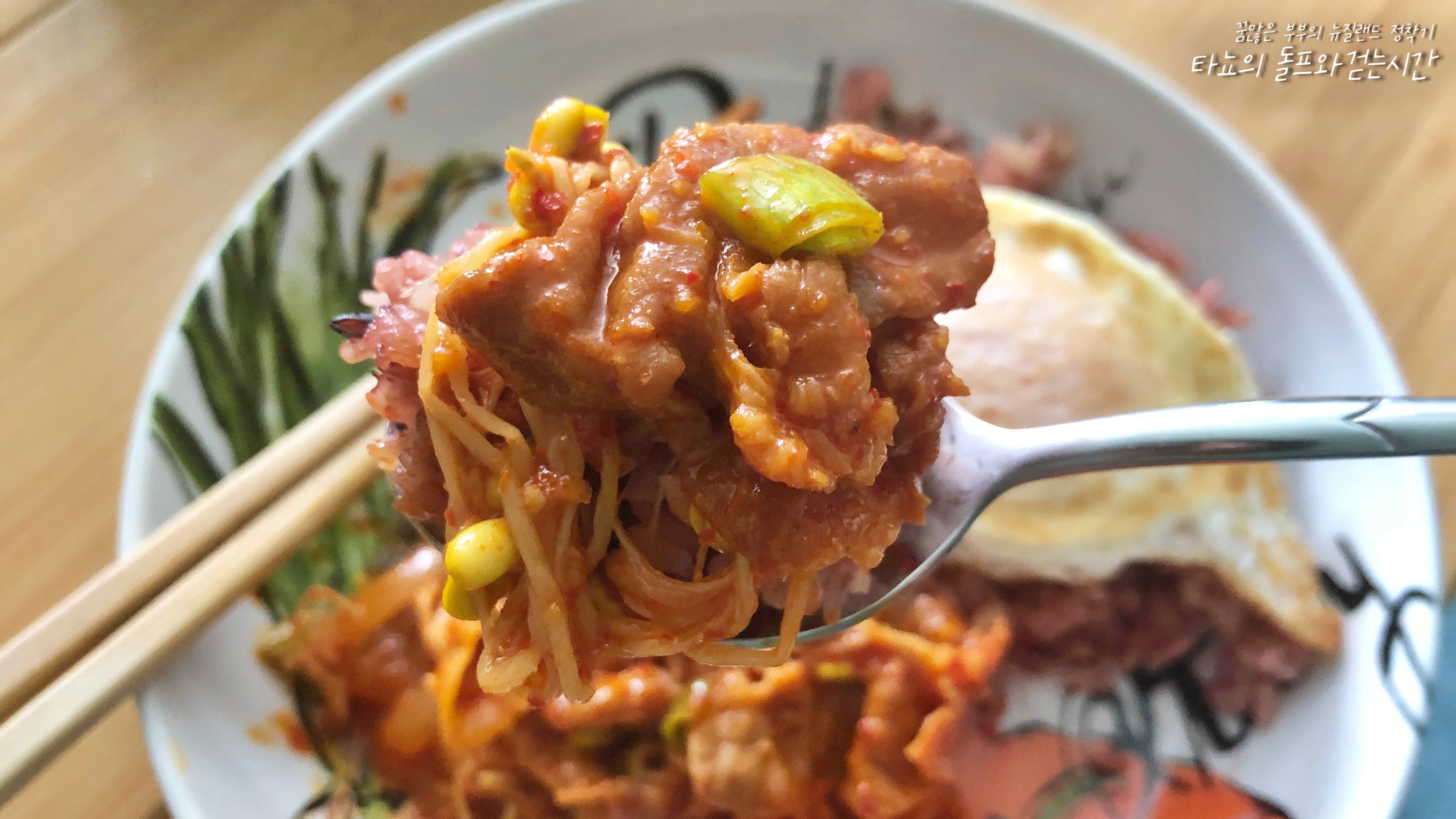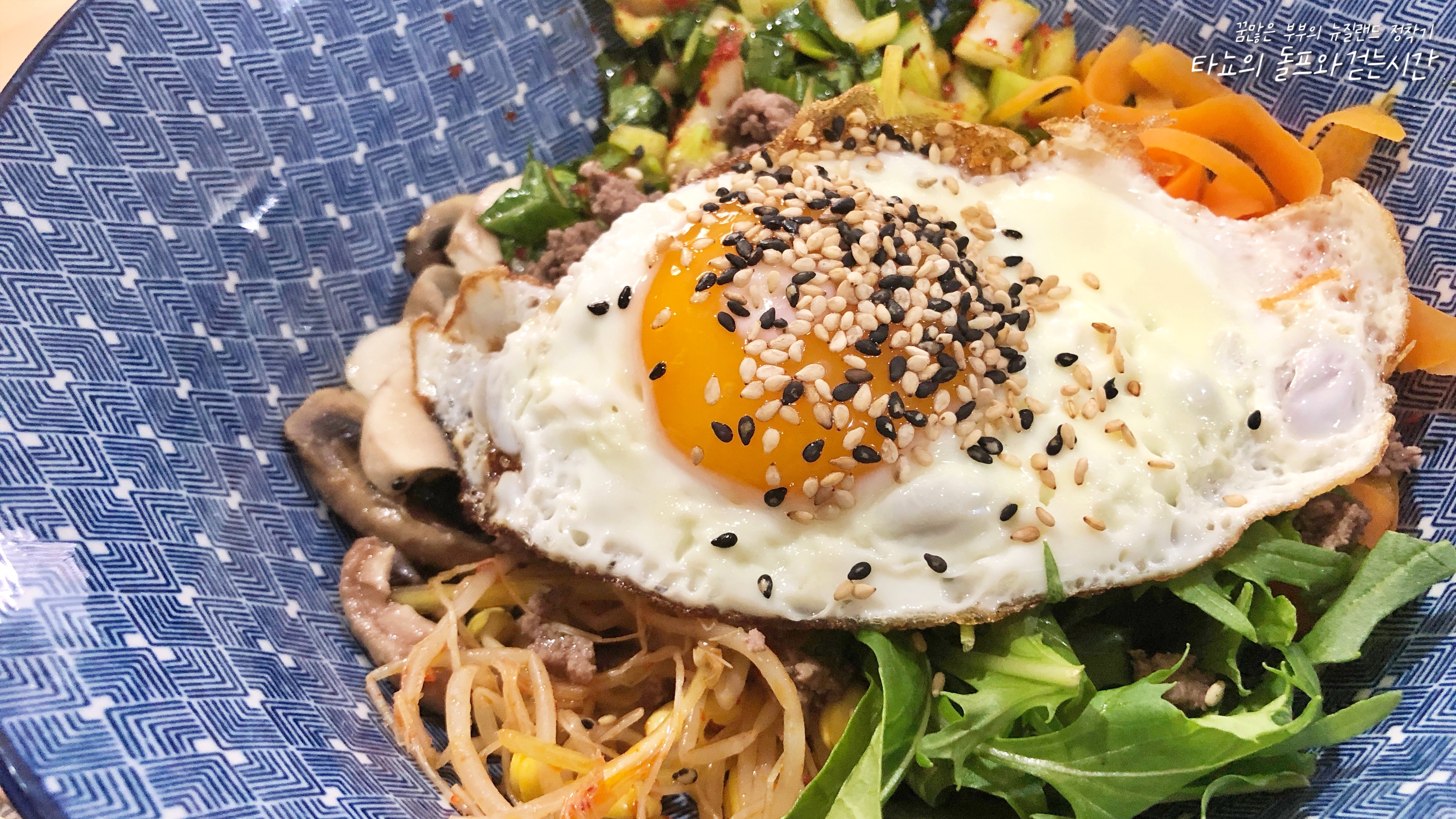오랜만에 비빔밥을 만들었습니다. 가능하다면 매일 먹어도 먹을 수 있을 음식이 바로 비빔밥이죠. 봄의 끝, 여름의 시작을 알리는 요즘 야채 값이 조금은 내려갔지만 아직도 꽤 비싼 편이라 부담스럽지 않은 식재료를 가지고 만들어봤어요. 1년 내내 가격 변동이 거의 없는 양송이버섯과 무스쿨린(어린잎 샐러드 야채), 당근을 넣고 최근 크라이스트처치에서도 다시 판매하기 시작한 콩나물과 얼갈이배추 무침을 함께 넣었습니다. 여기에 볶은 소고기 민스와 노른자를 터뜨리지 않은 달걀 프라이가 굉장히 중요하죠. 참기름 넣고 고추장 넣어 슥슥 비벼 먹었습니다.