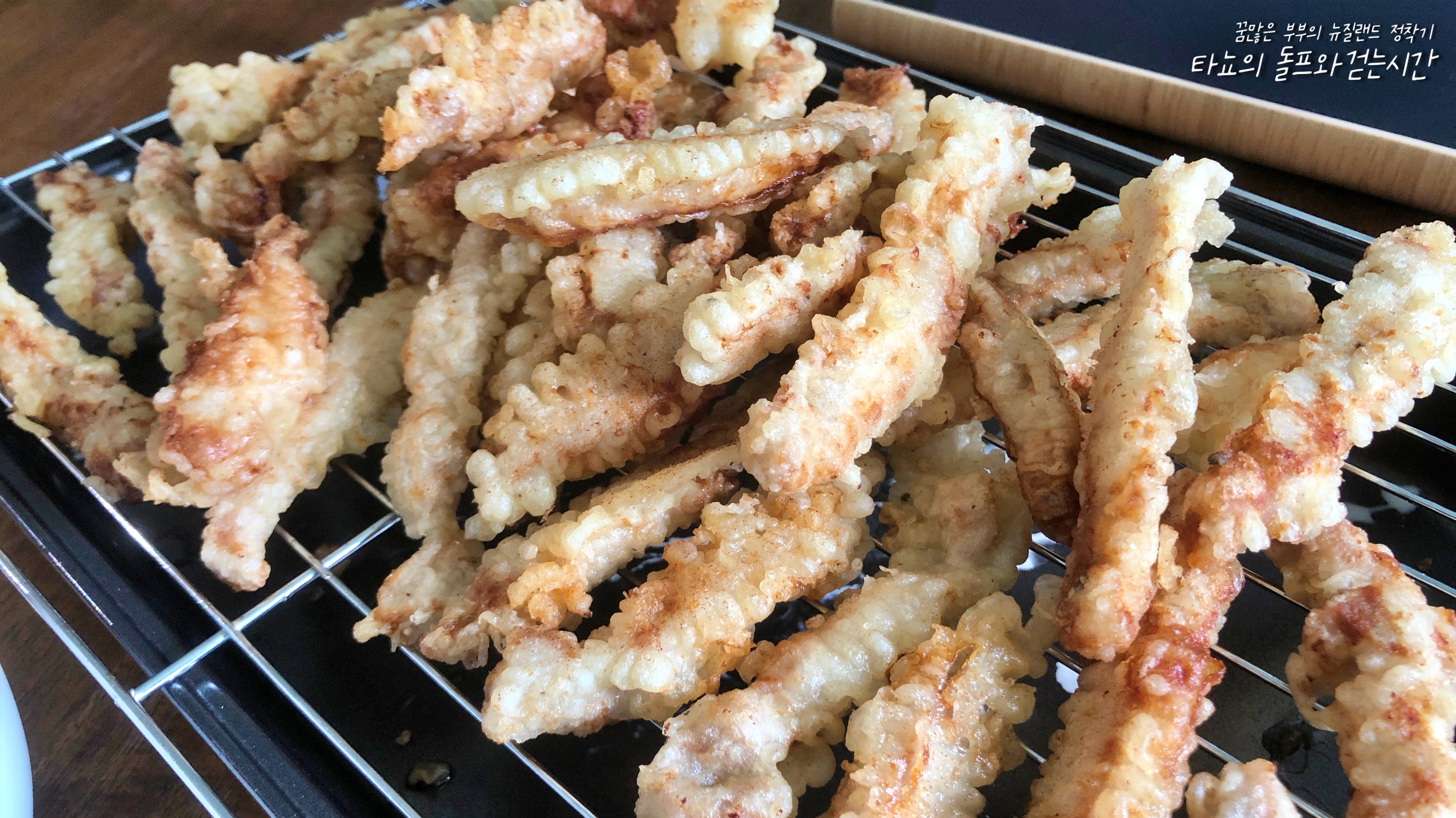 탕수육이 먹고 싶을 때는 집에서 만듭니다. 여기서 뭐 배달하는 데가 있겠어요. 파는 데가 흔하겠어요. 먹고 싶다면 직접 만들어 먹는 게 익숙한 뉴질랜드 라이프입니다. 전분과 찹쌀가루 섞은 반죽에 넣어 튀겨내니 파는 맛 부럽지 않은 꿀맛!