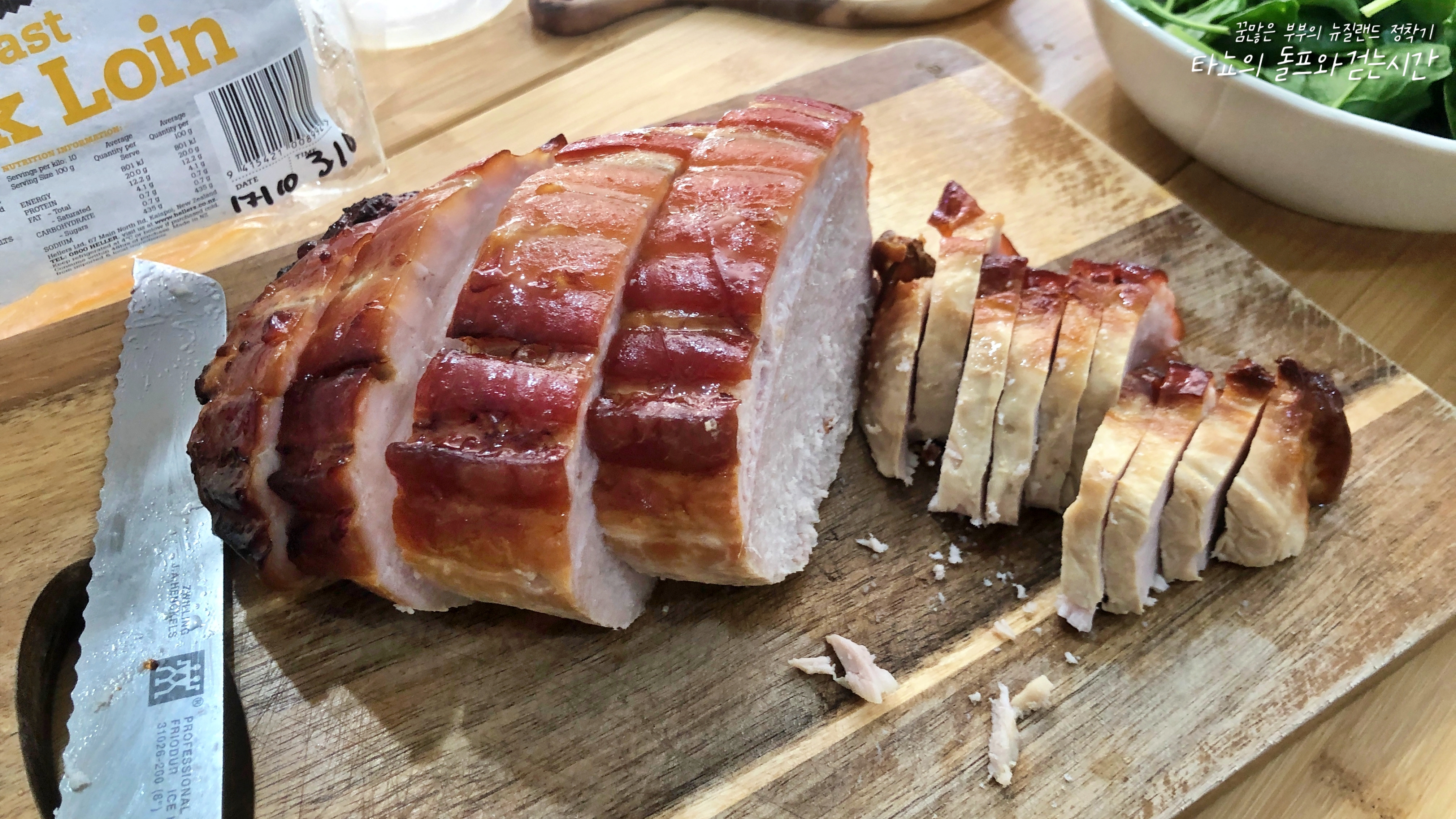 마트에 갔다가 보기에 너무 맛있어 보여서 충동구매했던 로스트 포크인데요. 겉은 참 촉촉해 보이고 환상적으로 보였으나 자르고 보니 터벅살이었습니다. 가격 또한 적힌 것과 달랐는데요. 저희가 봤던 저렴한 금액은 로스트 치킨의 가격이었다고 합니다. 예상외의 거금을 주고 구입했으나 터벅살에 너무 짜서 약간 불만족스러웠던 음식입니다. 뭐, 그래도... 최악은 아니었어요. 내 돈 주고는 다시 안 사 먹지만 누가 차려주면 먹을 수 있을 그런 맛?
