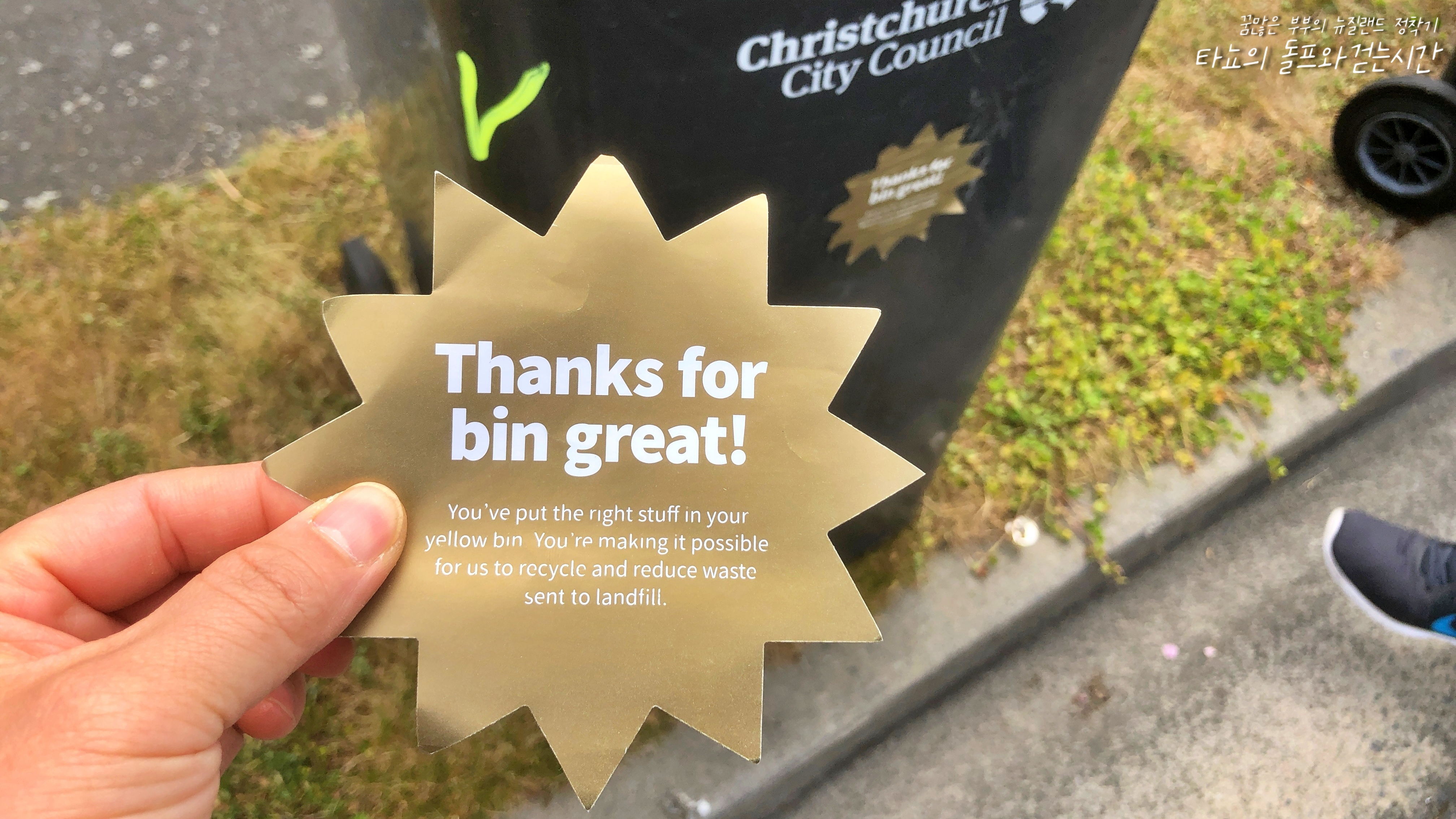 그 와중에 시청에서 또 황금별을 받았습니다. 이 정도면 분리수거에 진심이죠. 정말 진심으로 열심히 분리수거를 하고 있습니다. 이미 붙은 황금별이 있었지만, 새 것으로 교체하라고 새 것을 우편함에 넣어뒀더라고요. 하지만 이건 붙이지 않고 제가 가져갈까 합니다 ^^ 뭐, 이대로만 한다면 다음 집에서도 받겠지만... 기념으로...
