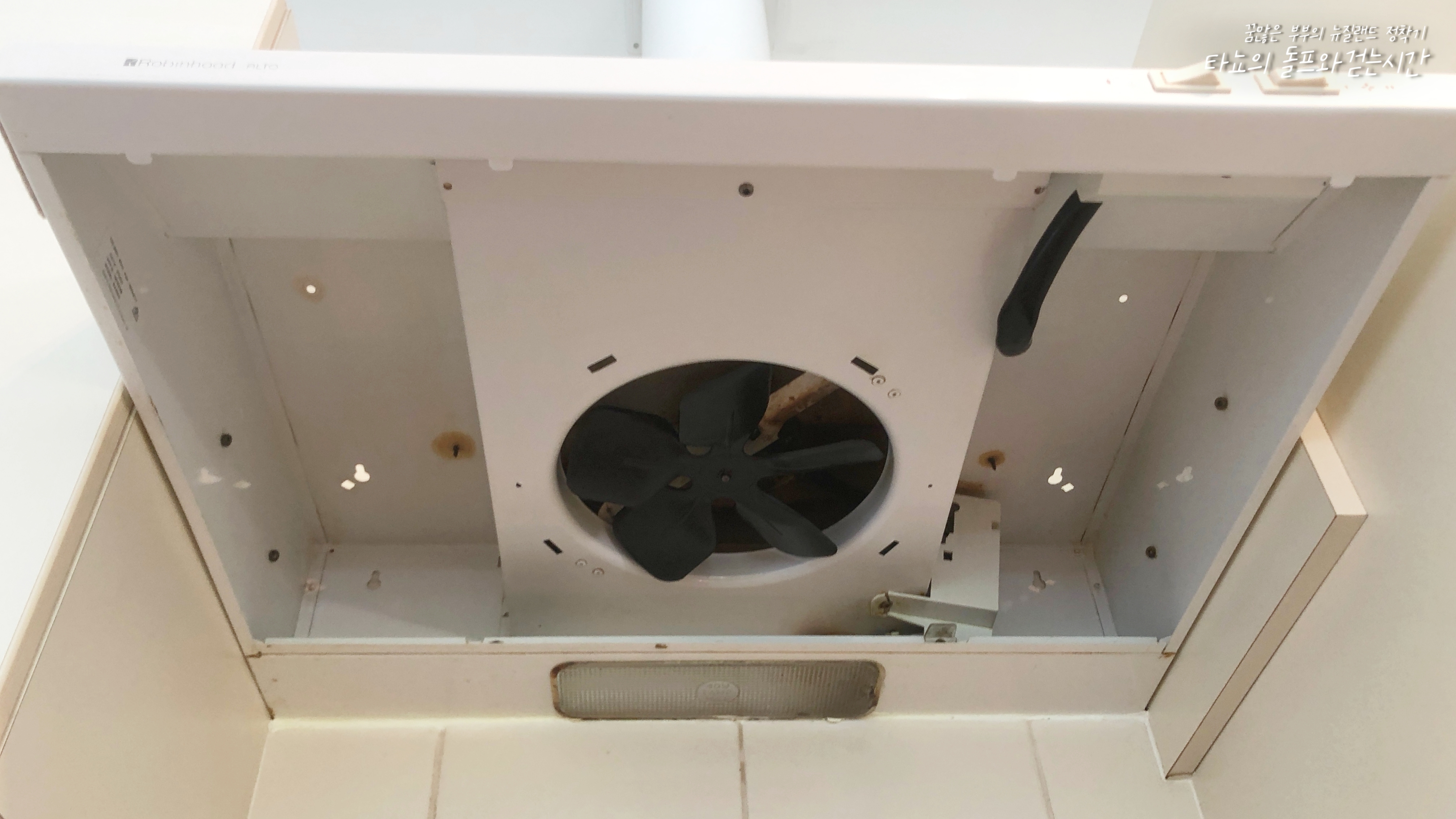 처음 이 집에 이사 왔을 때 제가 가장 먼저 했던 작업이 이 후드를 청소하는 것이었습니다. 필터를 떼고 안을 열어보니 최소 반년 이상 청소하지 않았을 것만 같은 모습이었어요. 오래되어 누렇게 들러붙은 기름이 가득했었죠. 오히려 제가 살다가 나가면서 처음보다 더 깨끗하게 해 주고 나갑니다. 뭐, 그래도 이 사람들이 알기나 할까요.