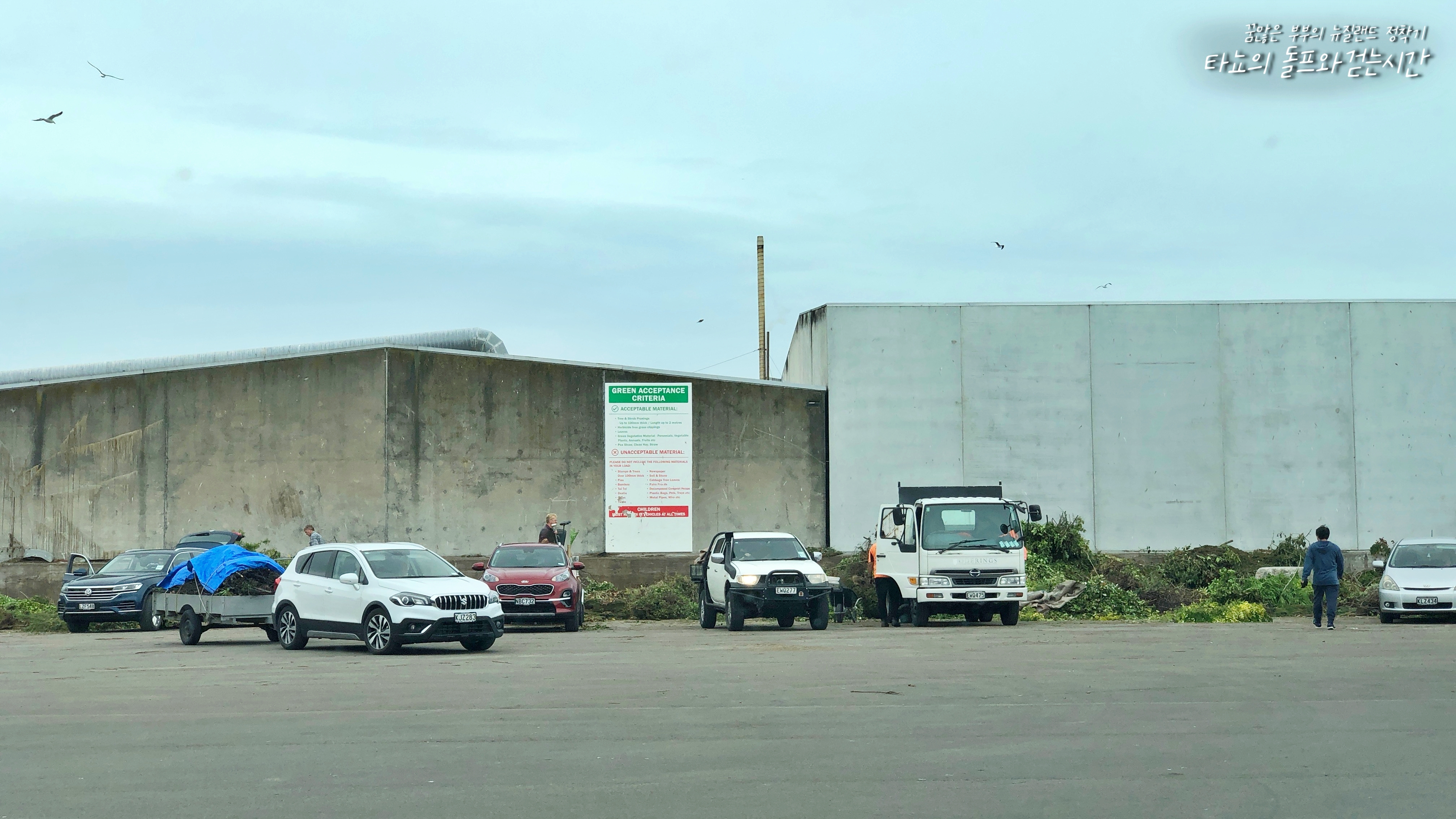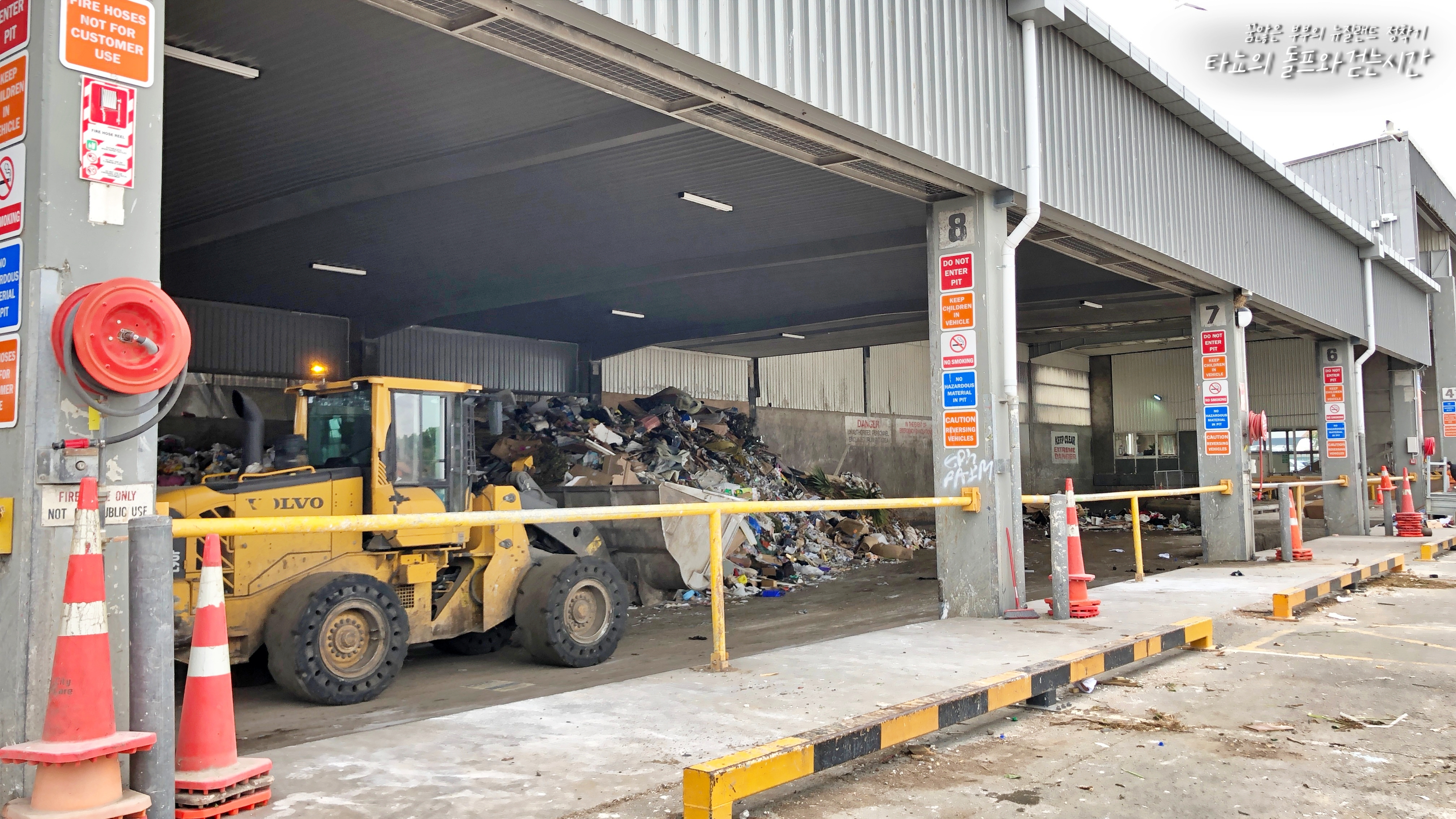 여긴 일반 쓰레기를 버리는 곳입니다. 기사님이 분주하게 트랙터를 움직이며 쓰레기를 치우고 계셨습니다. 오른쪽 사진에 보이는 곳이 주차를 하는 곳인데요. 여기 차를 알아서 세우고 쓰레기를 저곳으로 던지면 됩니다.
