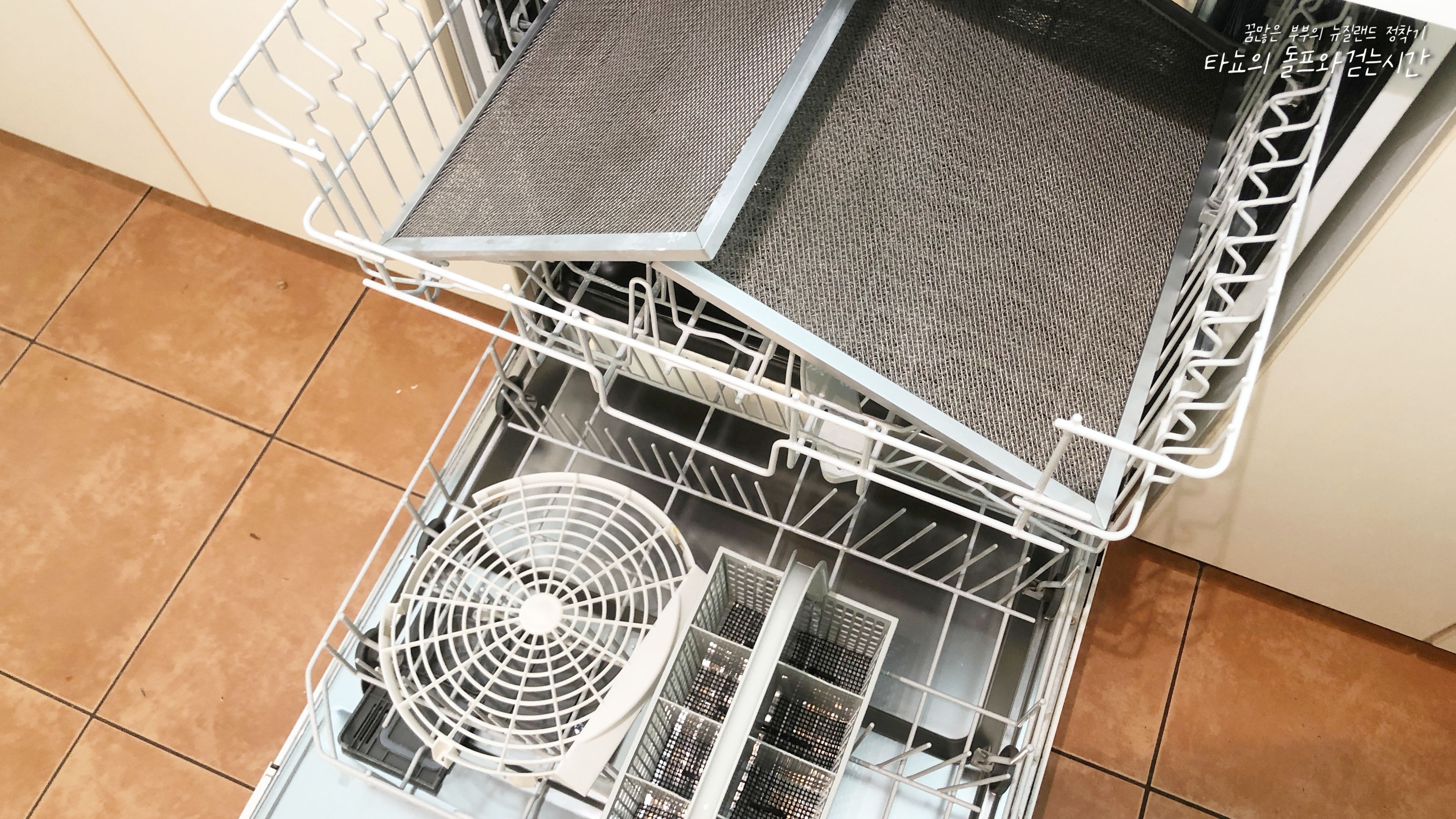 주방 청소는 제가 전적으로 담당했습니다. 일단 후드를 열어서 뗄 수 있는 모든 부분을 떼냈어요. 여긴 제가 거의 매주마다 청소를 했던 곳이라 크게 치울 것은 없었습니다. 아일람 집에서 식기세척기를 사용하지 않았을 때는 후드 필터에 낀 눅진한 기름을 제거하는 게 너무 어려웠는데요. 위 그람 집에서는 식기세척기에 넣고 돌리니 세상 편했습니다. 아주 깨끗하고 완벽하게 세척이 됩니다.
