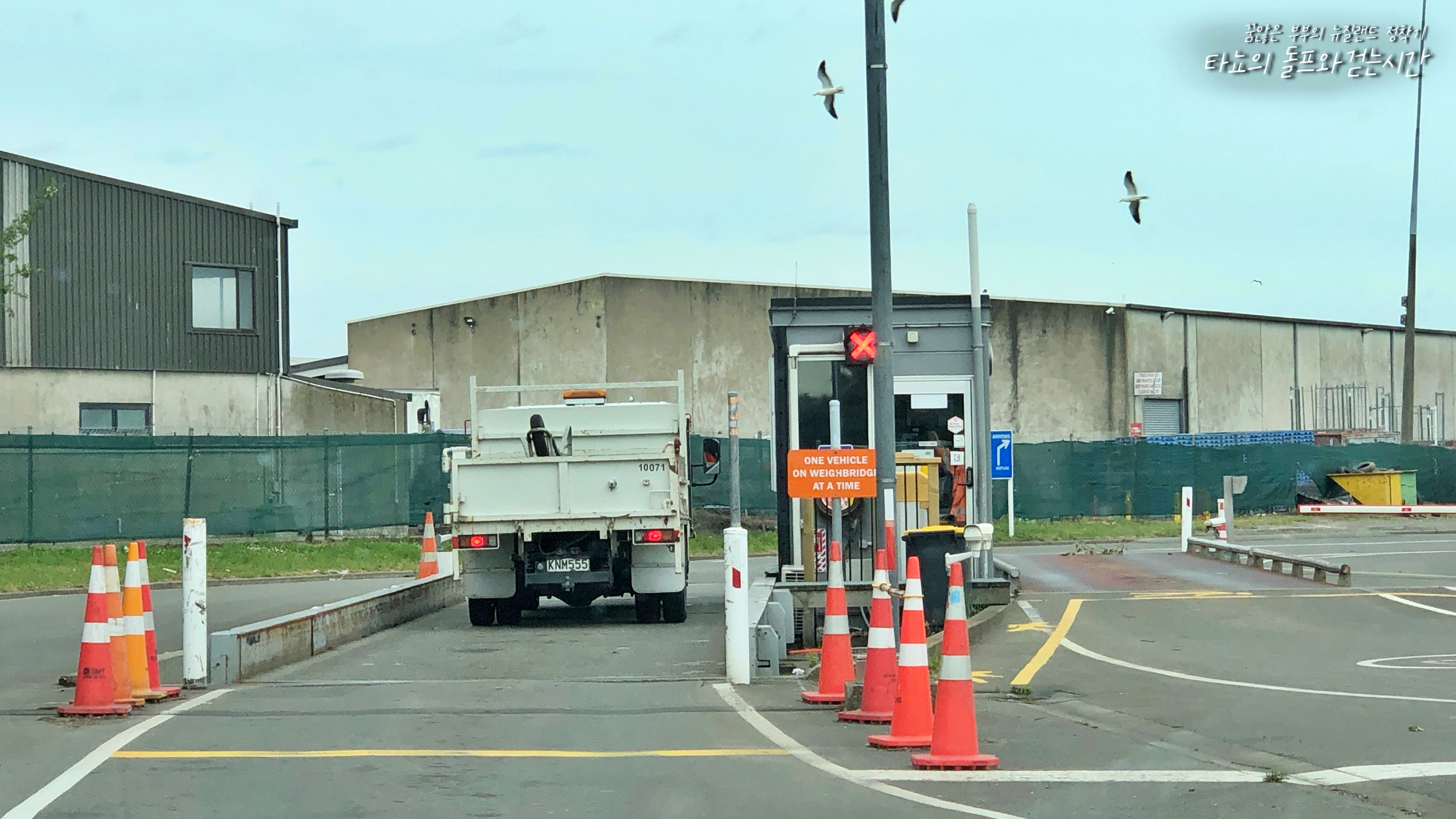 오른쪽 사진에 보이는 곳이 일반 쓰레기와 가든 쓰레기를 버리러 갈 때 통과해야 하는 곳입니다. 검문소 같은 저곳에 차를 세우면 직원이 어떤 쓰레기를 버릴 것인지 물어봅니다. 저 위치는 바닥이 아주 커다란 체중계라고 생각하시면 되는데요. 차와 사람, 쓰레기의 총무게를 잰 다음 쓰레기를 버리고 나올 때 한번 더 무게를 잽니다. 그리고 차이가 난 무게만큼의 요금을 지불하면 됩니다.