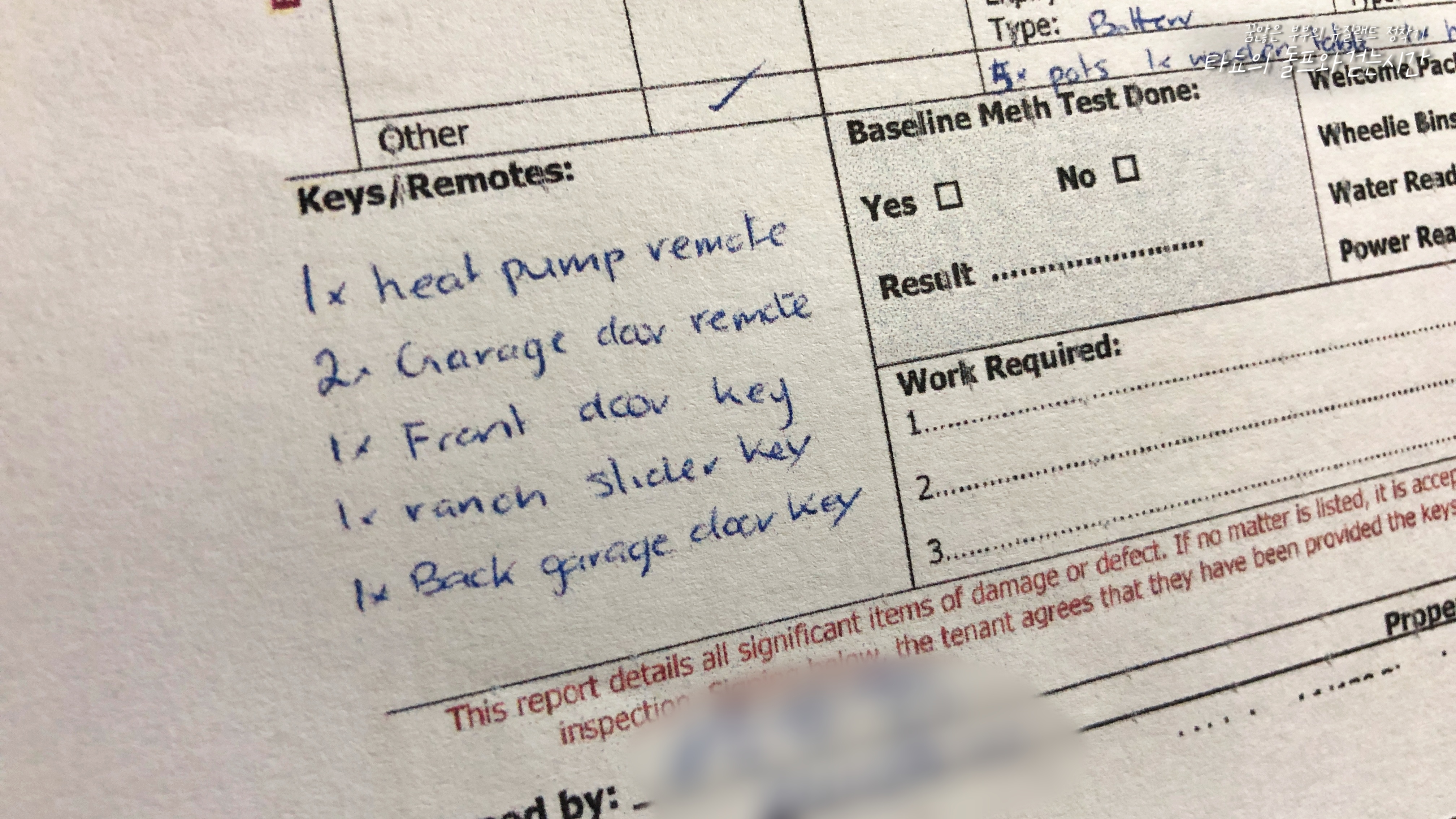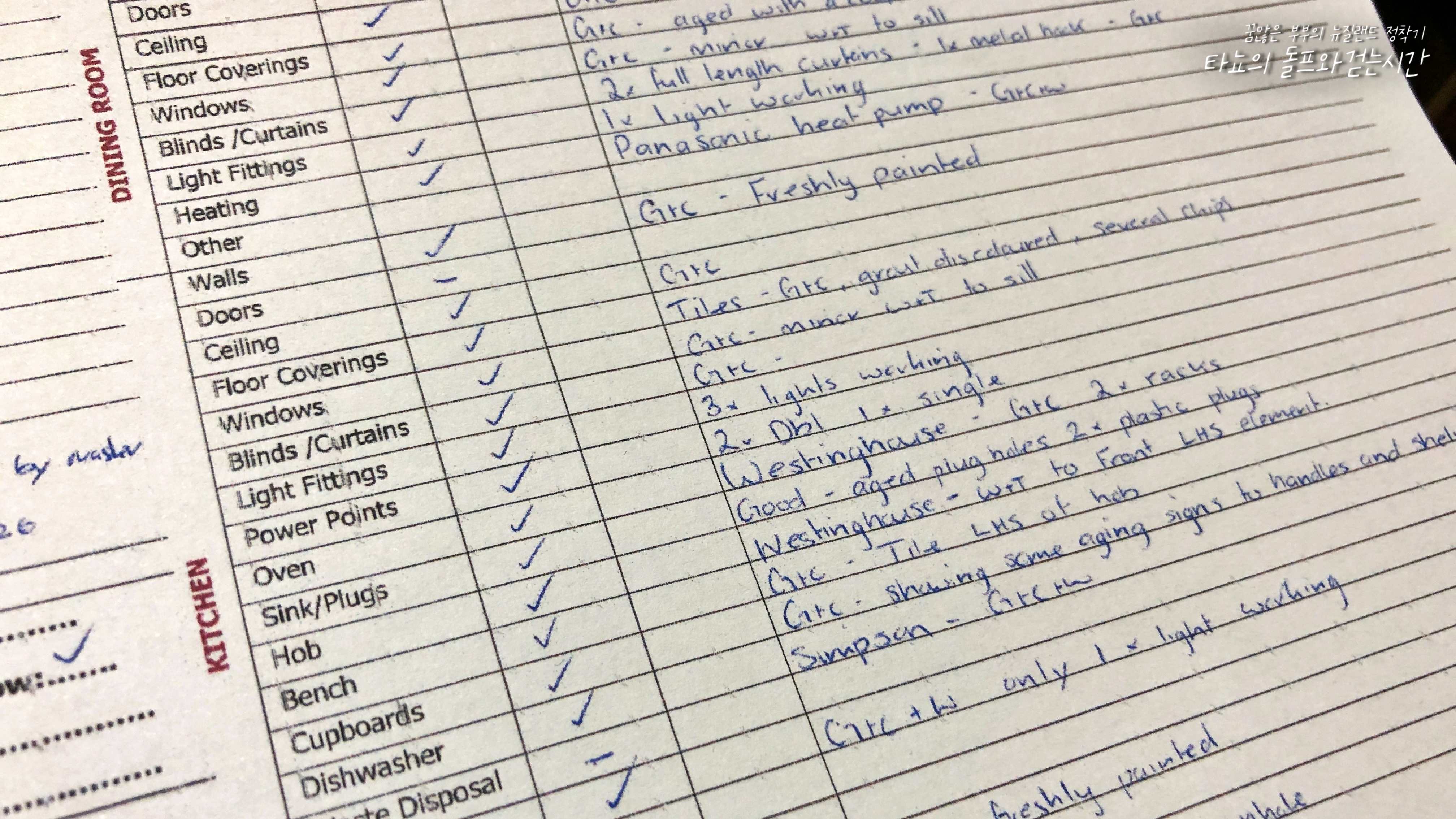 사실 저는 이 집을 떠날 때가 되어서야 이런 게 있다는 것을 알았답니다. 이전 집은 이런 게 없었고 부동산에서 찍어둔 사진으로 체크를 했었거든요. 이렇게 꼼꼼하게 적힌 리스트를 보면서 참 대~단하다는 생각이 들었습니다. 뭔가 너무 치밀해서 약간... 짜증이 올라오는... ^^;;