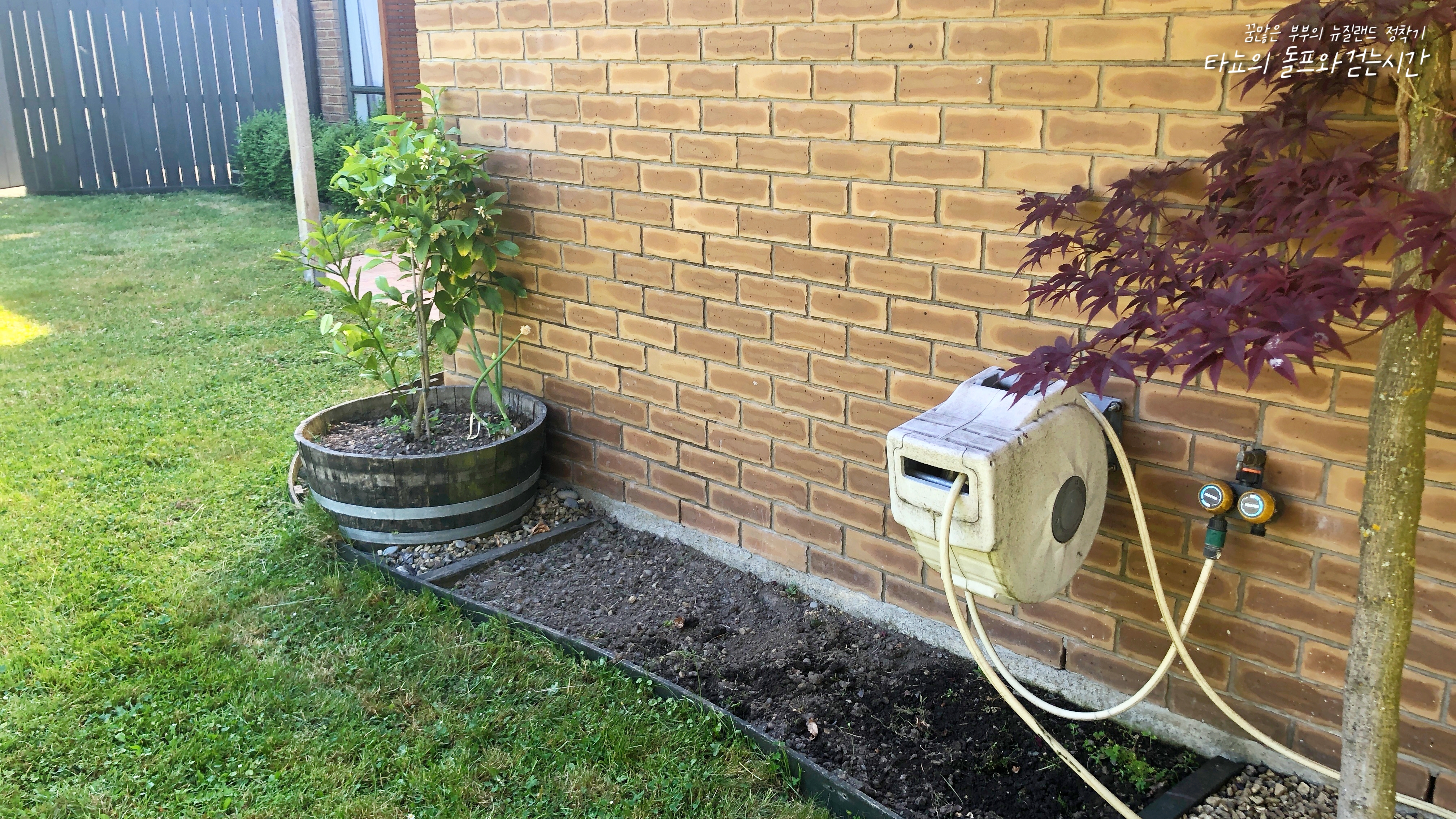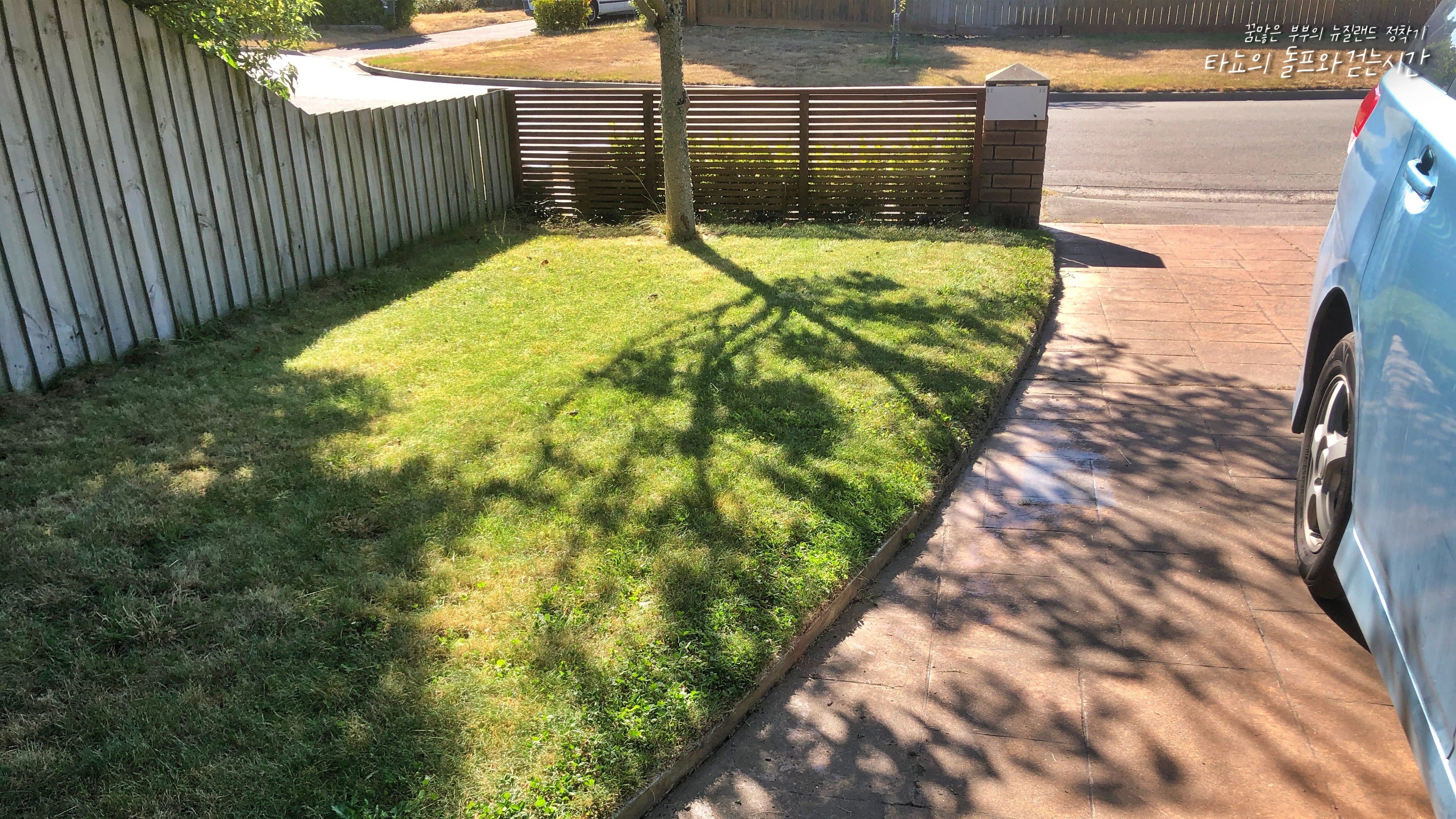 사진 속 잔디밭의 라인을 만들기 위해 애를 썼습니다. 사실 저렇게 칼로 곱게 자른듯한 라인을 만들기 위해서는 전문 장비가 필요합니다만, 저희는 잔디깎이만 있을 뿐 그런 장비는 없었기에... 잘 드는 가위로 모양을 내며 곱게 잘랐습니다. ^^;; 어쨌든 결과는 완벽!