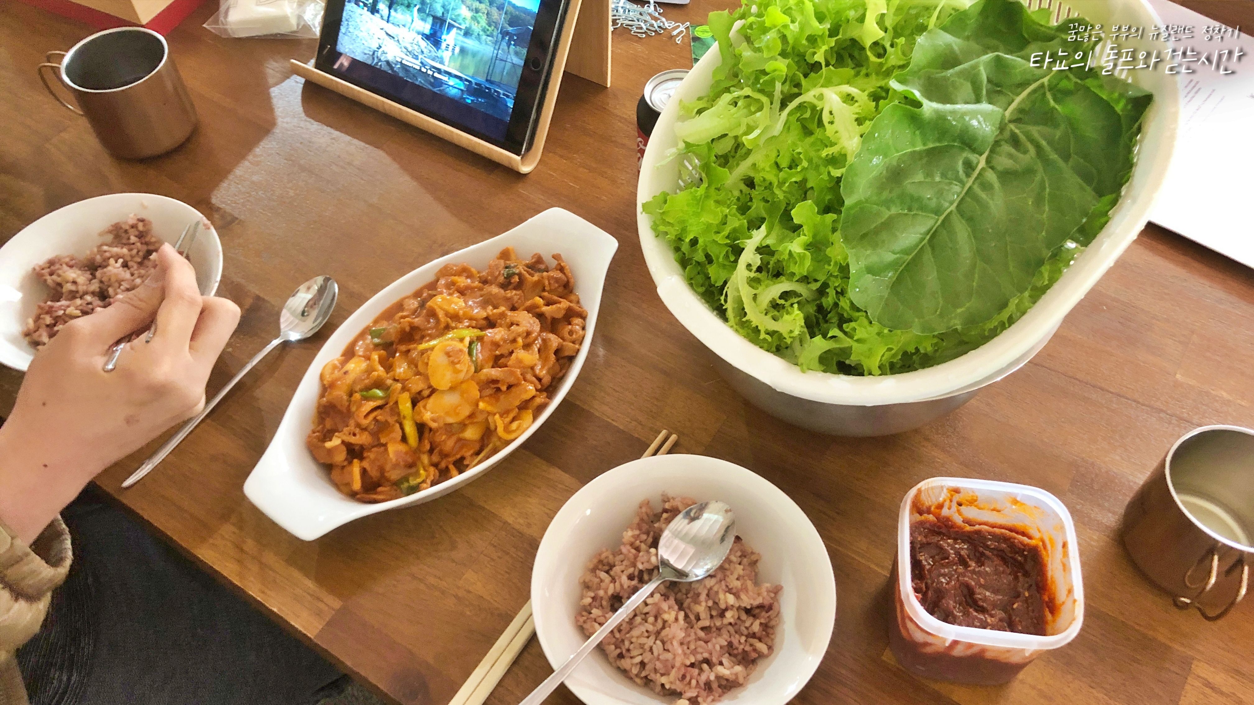 같은 날 점심 겸 저녁으로 먹은 삼겹살, 정리되지 않은 집이라 엉망이지만... 그래도 이사가 끝나서 행복했어요.
