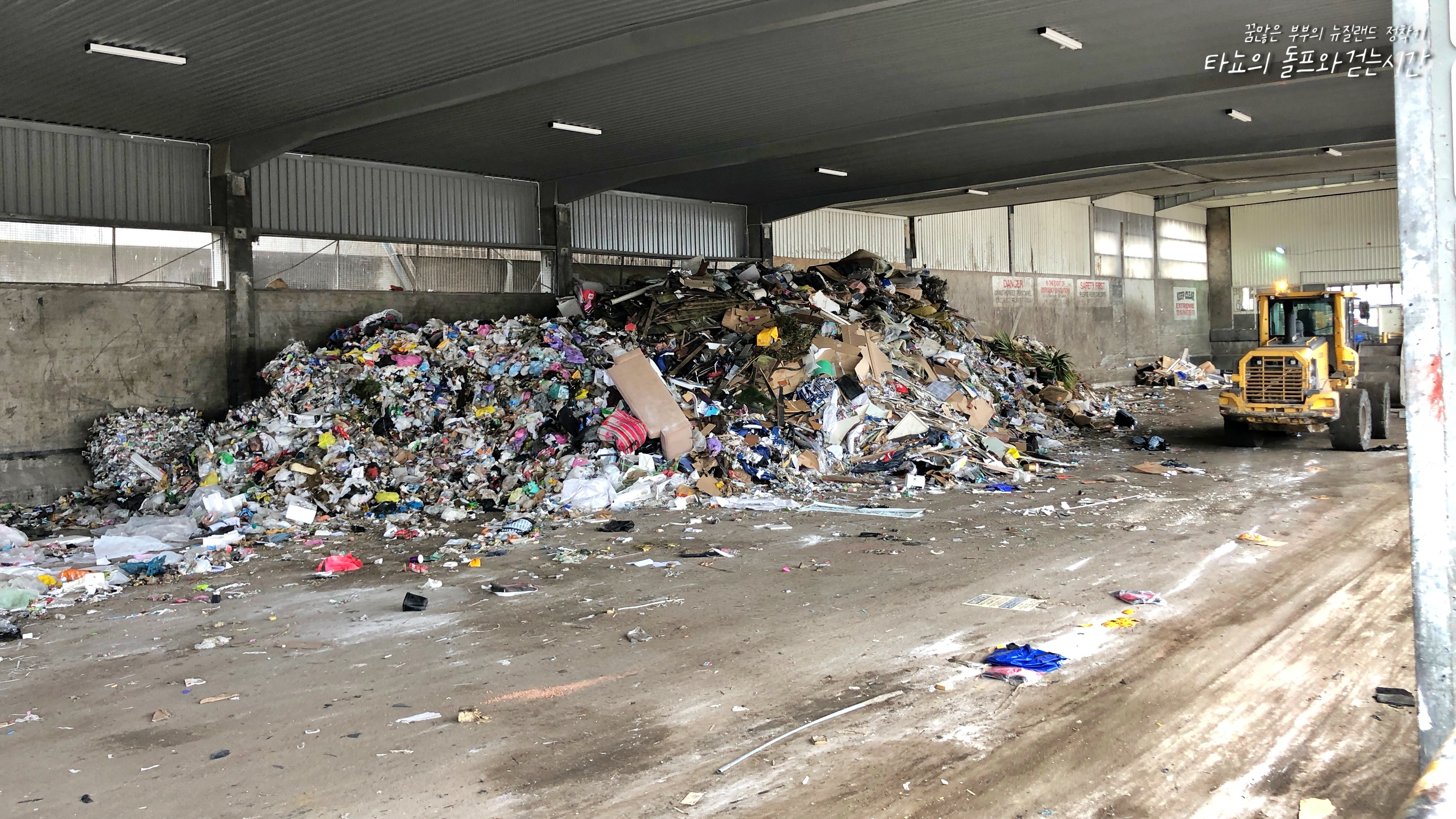 여긴 일반 쓰레기를 버리는 곳입니다. 기사님이 분주하게 트랙터를 움직이며 쓰레기를 치우고 계셨습니다. 오른쪽 사진에 보이는 곳이 주차를 하는 곳인데요. 여기 차를 알아서 세우고 쓰레기를 저곳으로 던지면 됩니다.