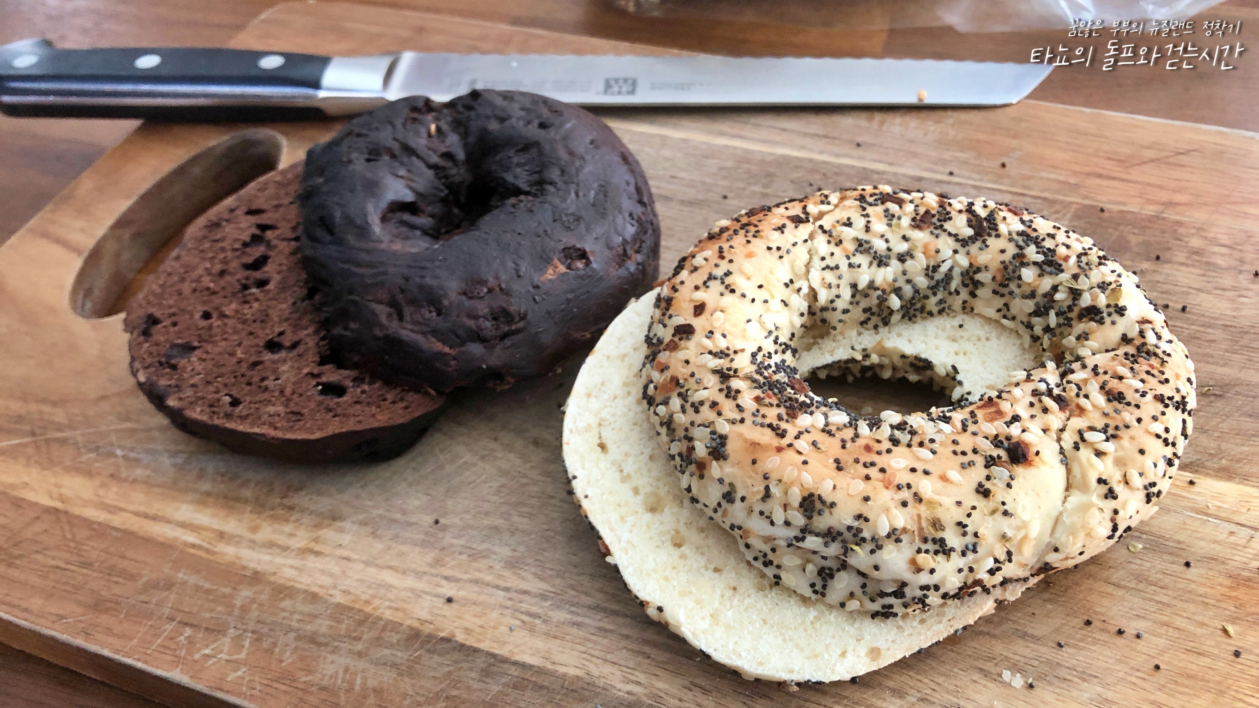 뉴질랜드의 수도, 북섬의 웰링턴에서 내려온 베이글입니다. 친구 밀리가 웰링턴에 다녀오면서 사온 베이글인데 기가 막히는 맛에 정말 반했답니다. 초콜릿 베이글도 매콤한 베이클도 처음 맛보는 종류라 굉장히 새로웠습니다. 크림치즈 발라서 먹으니 최고!