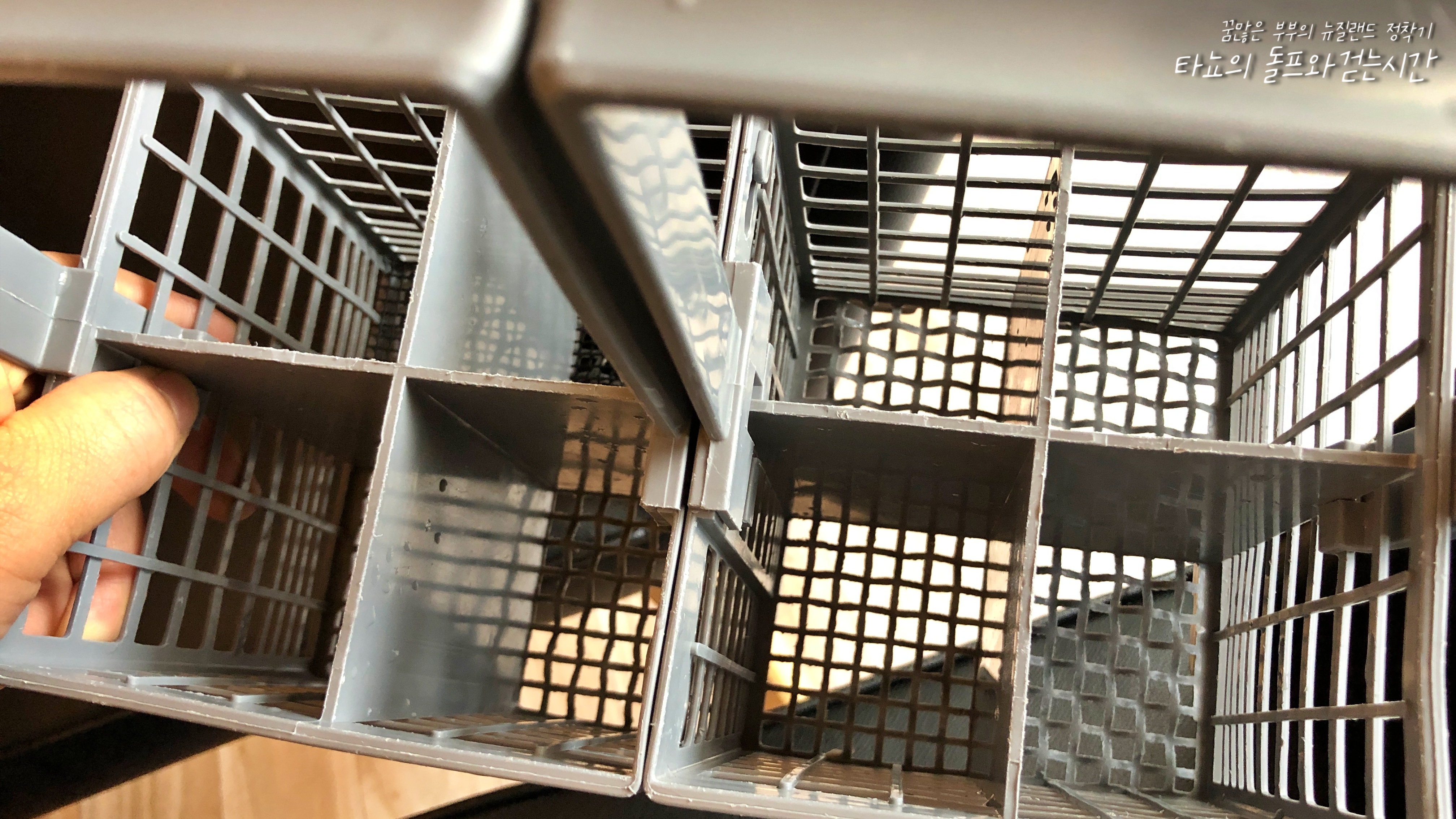 이렇게 하면 젓가락이 절대 빠지지 않는다. 한국에서는 식기세척기를 한번도 사용해본 적이 없었고 게다가 우리가 뉴질랜드에 오고 난 뒤 한국에서도 식기세척기가 유행을 하기 시작했기 때문에 한국 식기세척기의 수저통은 어떻게 생겼는지 잘 모르겠다. 솔직히 궁금하기도 하고.. 어쨌든 젓가락 문화가 없는 나라에서는 생각보다 이게 큰 문제인 것 같다. 주부들은 생각보다 스트레스를 받는다.