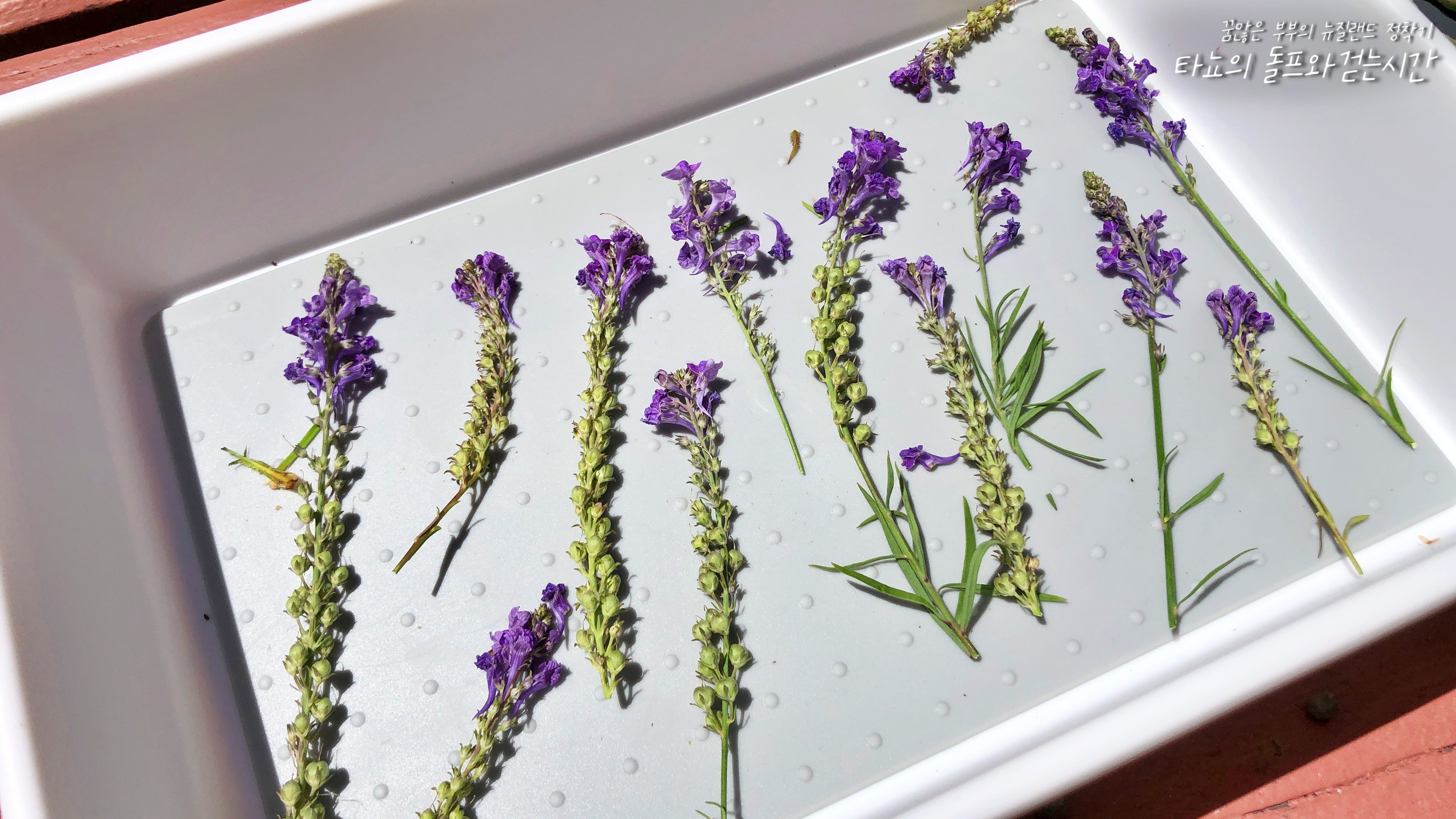 라벤더를 닮은듯, 로즈메리의 잎을 닮은 듯 보이는 이 예쁜 꽃은 사실 향도 없는 잡초다. 그래도 뭔가 장식하기에 예쁠 것 같아서 잘랐다.