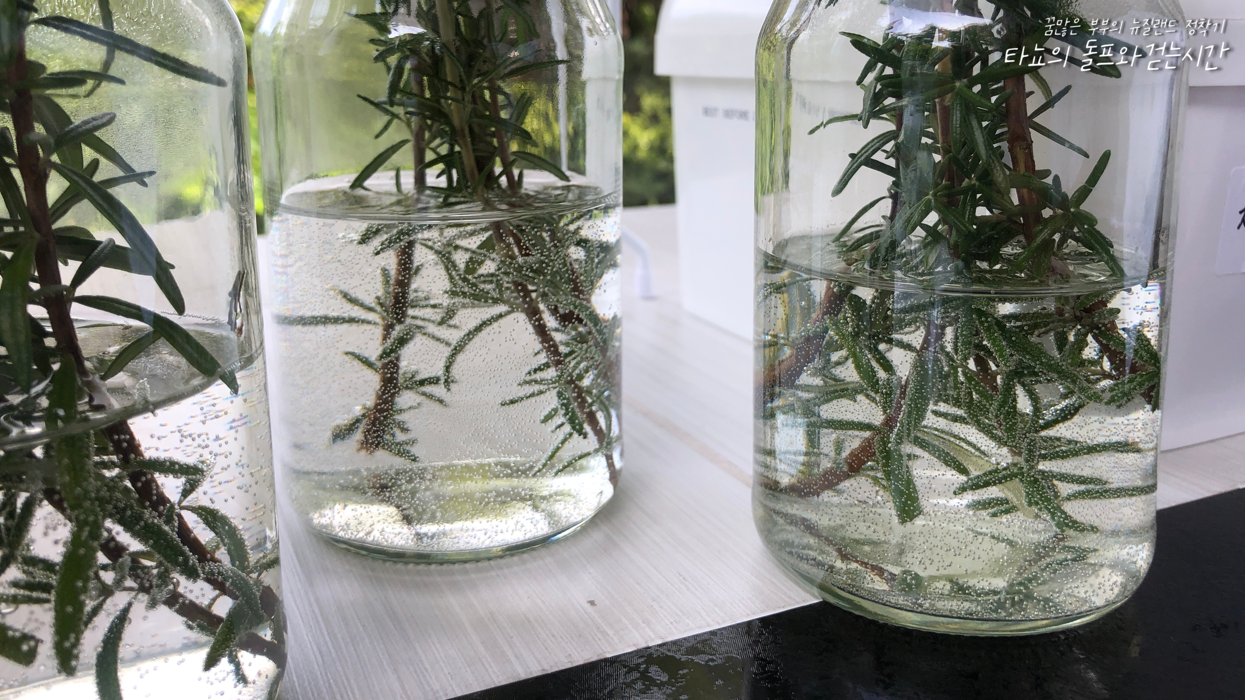 로즈메리 가지는 물에 꽂아두면 뿌리를 내린다고 한다. (인터넷에서 누군가의 글을 봤는데 뿌리가 난다는데 솔직히 아직 내 로즈메리에는 뿌리가 안 나서 확신은 없다. 열흘 정도까지 기다려보고 안되면 포기할지도...)