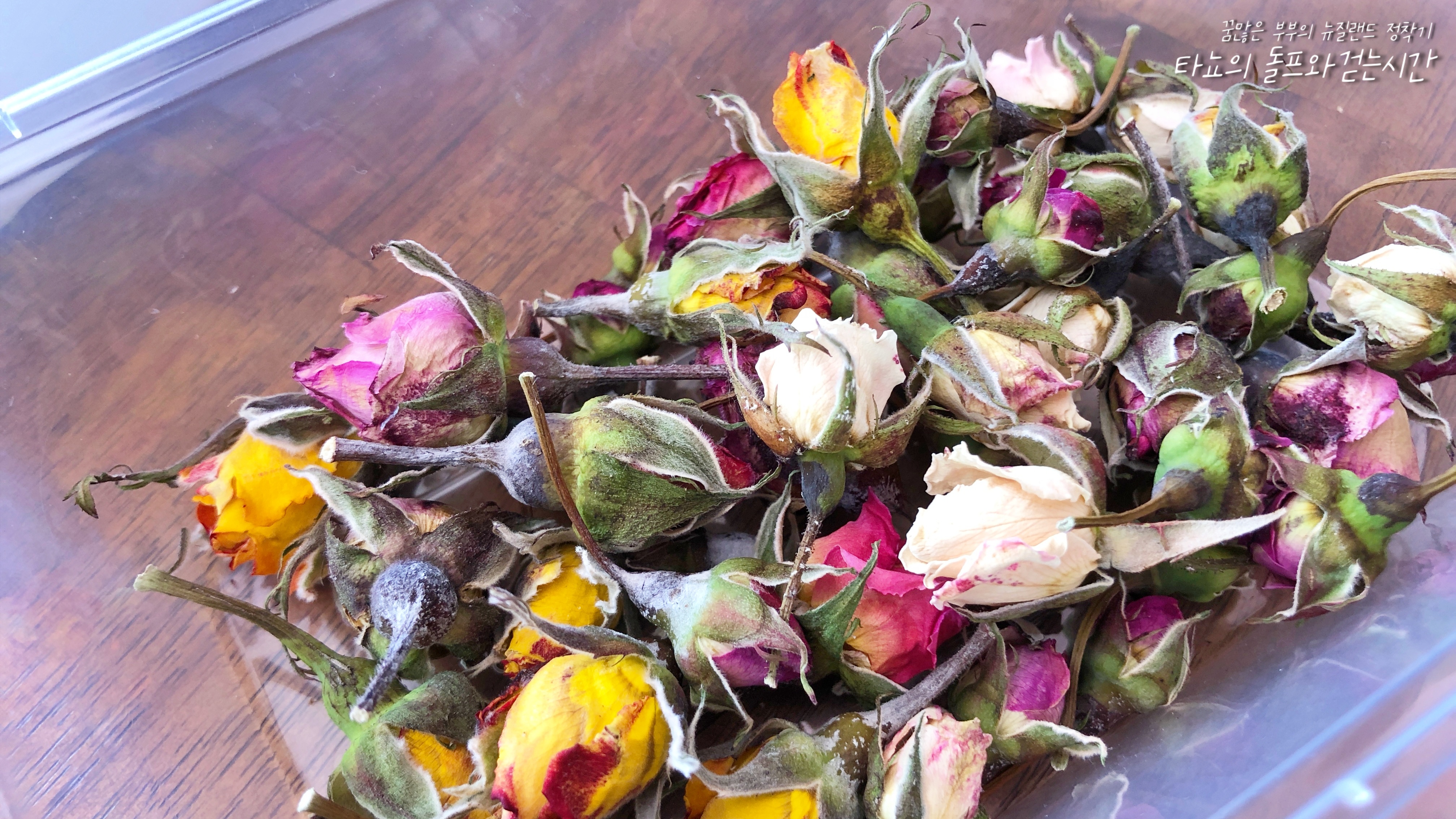 바삭하게 마른 장미를 혹시나 싶은 마음에 햇빛이 잘 드는 실내 창가에서 며칠 더 말렸다.