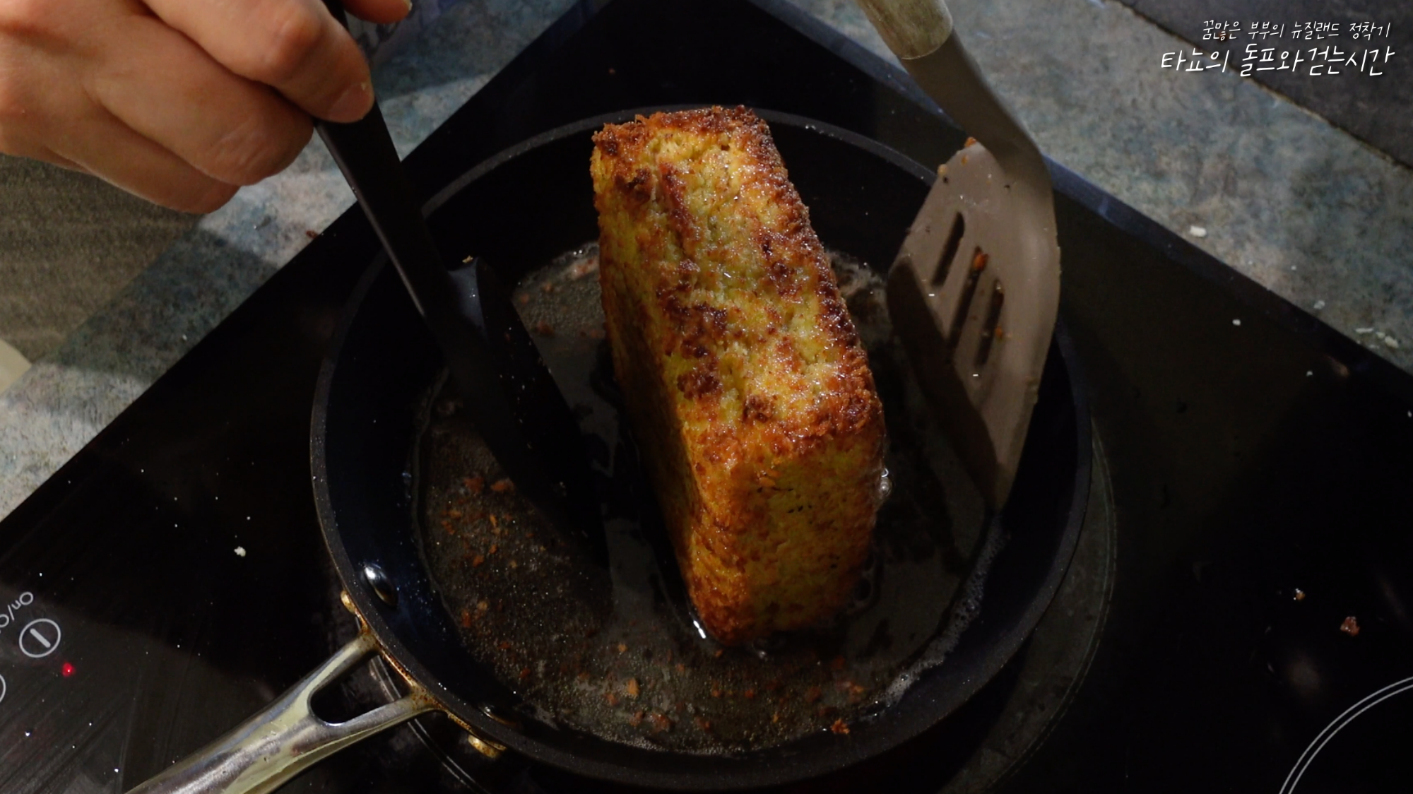 겉은 바삭하고 속은 촉촉한 겉바속촉의 대명사 '몬테크리스토'를 만들었다. 튀기듯이 구워주고 모퉁이까지 꼼꼼하게 잘 굽는 것이 중요하다.