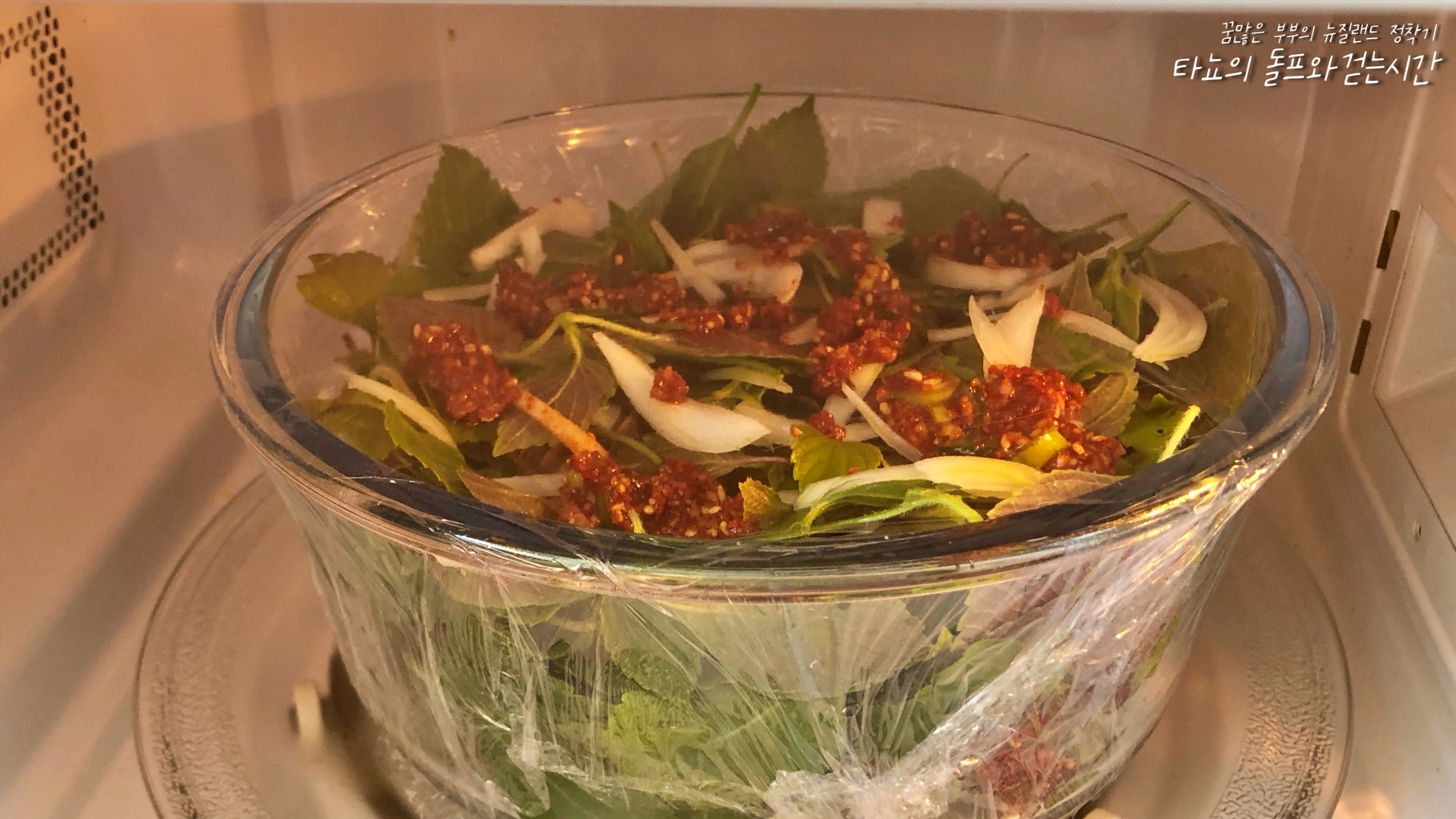 생각보다 깻잎순이 많았다. 원래 깻잎 20장 기준이면 렌지 30초? 취향 따라 1분 정도만 돌려도 충분한데 이건 양이 워낙 많아서 2분은 돌려야 할 것 같았다.