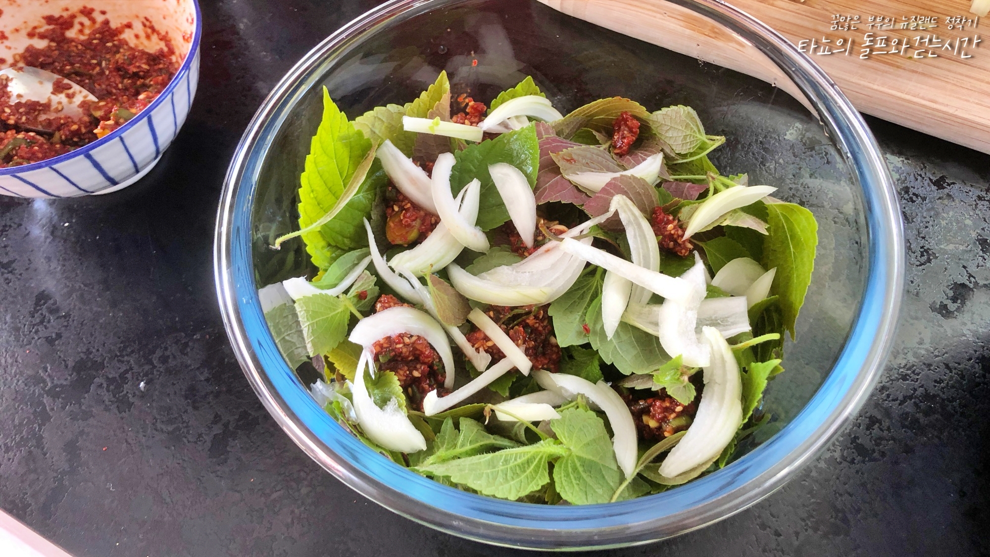 생각보다 깻잎 순이 많았다. 깻잎, 양념, 양파 순으로 올렸다.