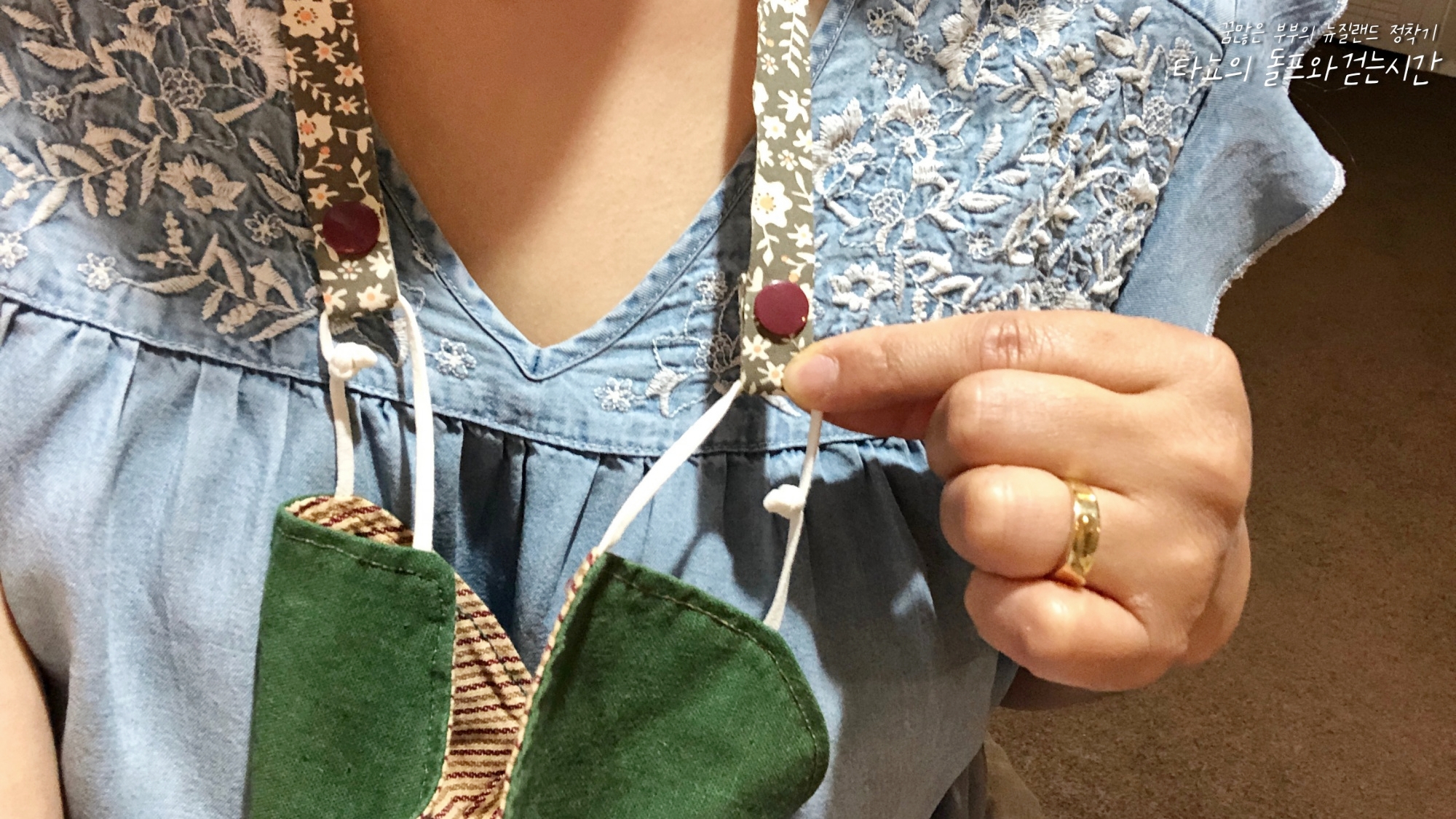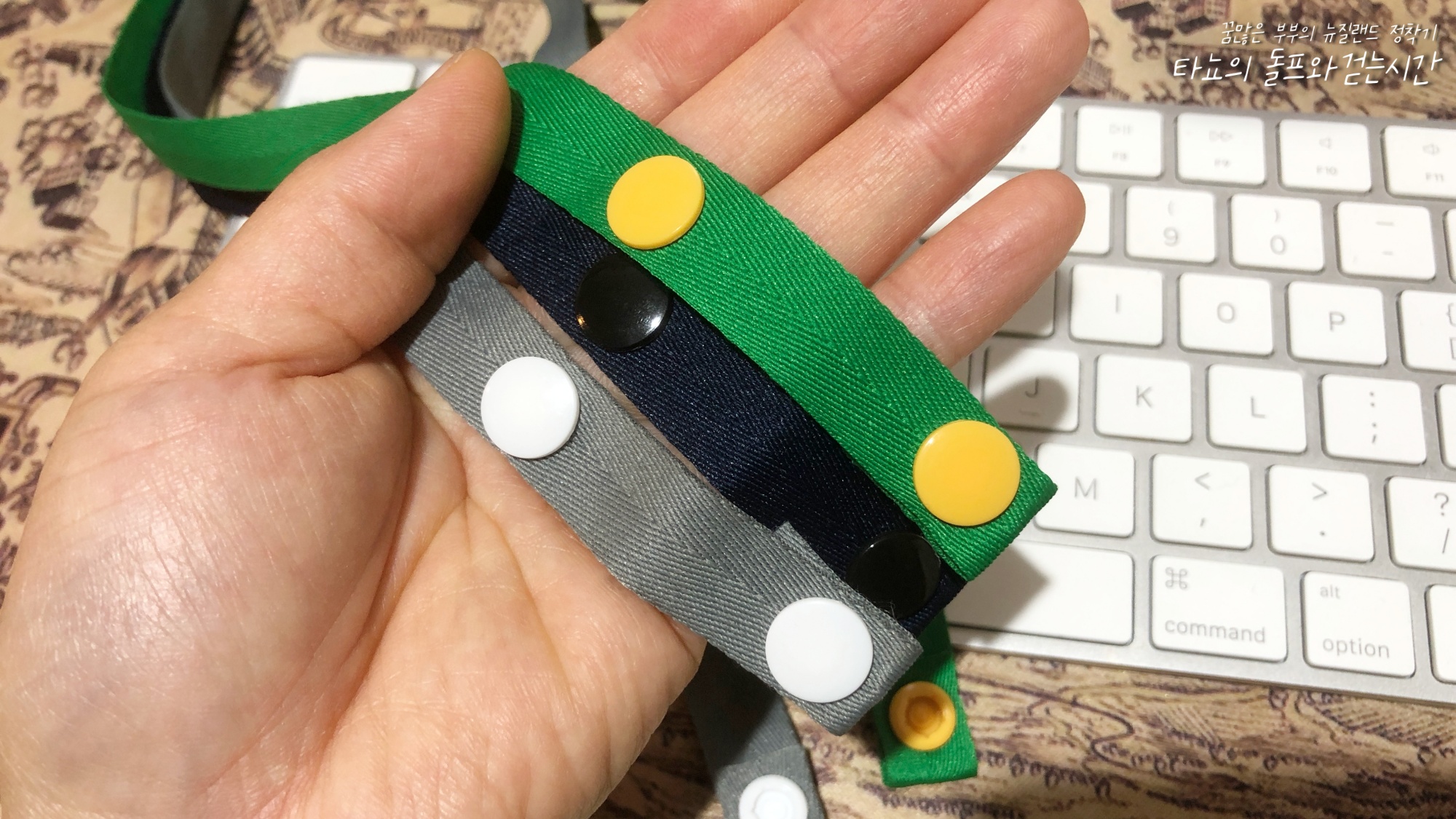 한국에서는 바느질이 꼼꼼하게 잘 된 통이불을 종종 사용하고 그 이불 자체를 세탁하며 살았는데, 뉴질랜드에서는 하얀 속 이불에 이불 커버를 바꿔주며 사용한다. 이불 커버 또한 지퍼가 달린 게 아니라 듬성듬성 달린 단추로 잠그기 때문에 가끔 자다가 그 사이로 발이 쑥쑥 들어가기도 했다. 하지만 그 틈마다 T단추를 달아주니 이제 그런 일이 없게 되었다. 여러모로 좋다. 필요한 사람들에게 마스크 스트랩 종종 선물도 해야지. 완전 마음에 든다.