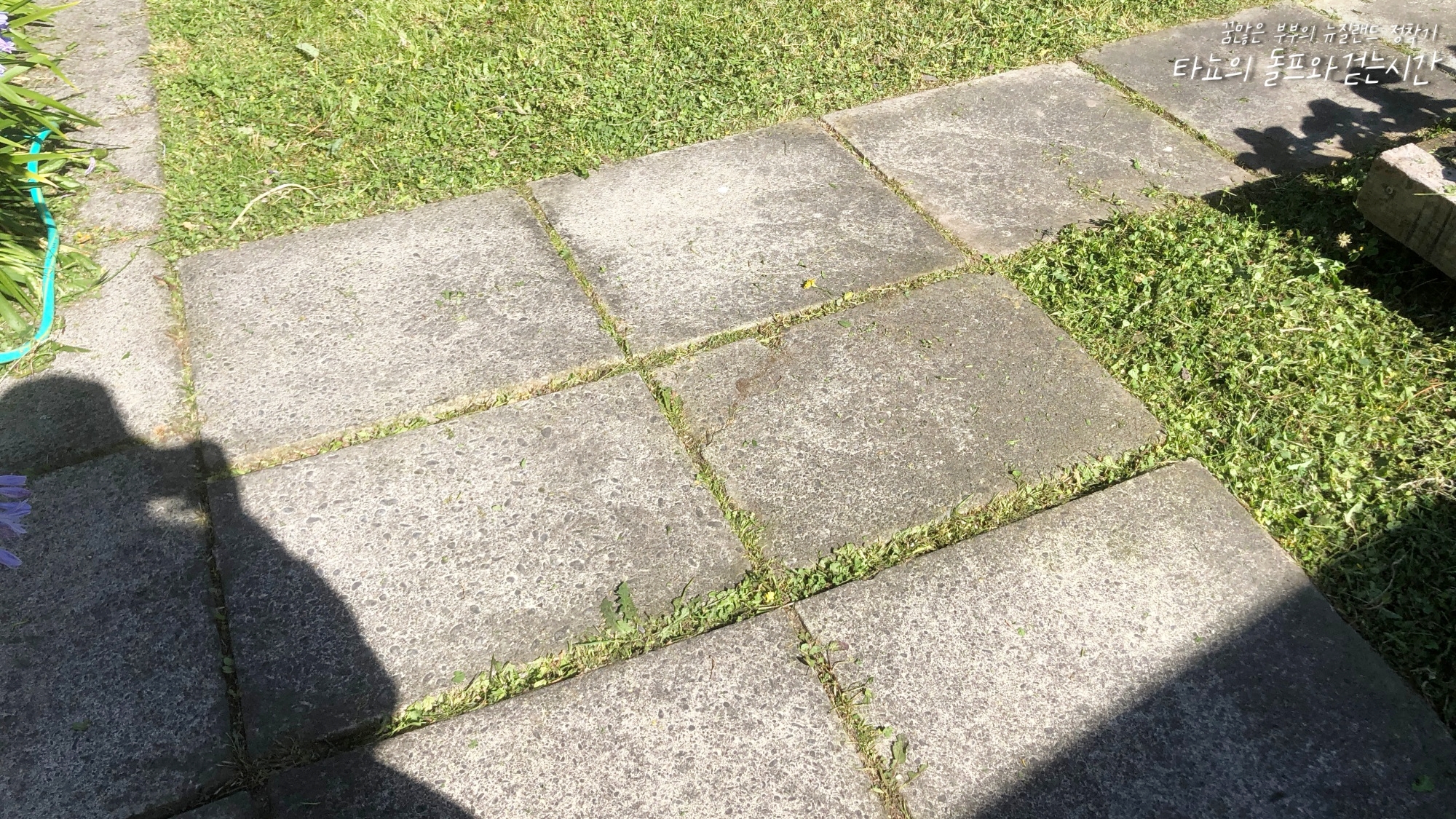 예초기를 돌리고 블로워로 청소를 한 뒤 깔끔하게 정리된 모습이다. 타일 사이로 초록이 보이는 게 역시 좋다. 예전에는 신랑 혼자 잔디깎이를 밀고 나는 그 모습을 지켜보기만 했었는데, 이제 서로 일을 나눠서 하게 되니 더 좋다.
