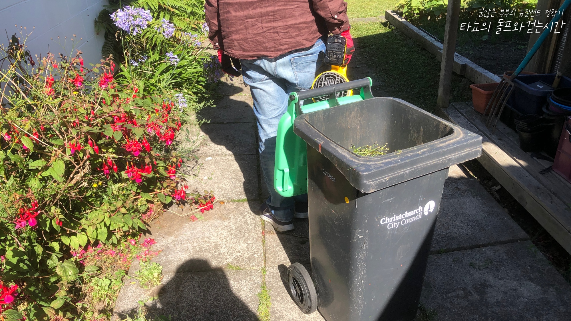 매주 목요일 나는 예초기를 돌린다. 번사이드로 이사하면서 쓰레기통을 내놓는 날짜가 달라졌는데 이 동네는 매주 금요일 오전에 쓰레기통을 비워간다. 노란 통(재활용)과 빨간 통(일반쓰레기)의 쓰레기는 격주로 수거하지만, 초록 통(풀, 낙엽, 음식물 쓰레기 등)은 매주 가져간다. 이 나라의 집 특성상 가든 쓰레기가 워낙 많이 나오기 때문에 그런 것 같다.