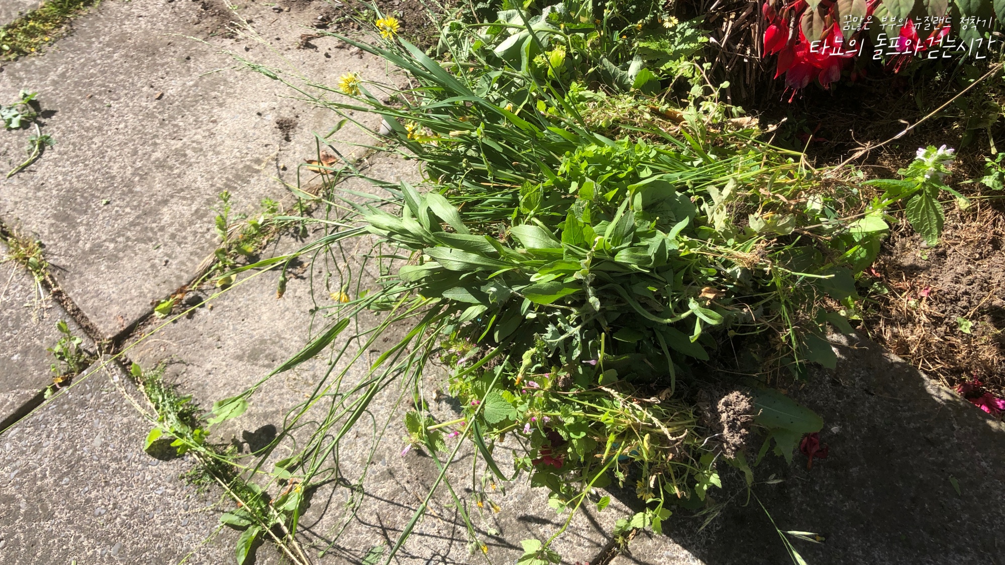 뒷마당은 하루 종일 해가 제대로 드는 지역이라 풀이 굉장히 잘 자란다. 그리고 절반은 타일이 깔려 있는데 그 사이사이에서 올라오는 잡초가 상당히 많다. 이런 것들은 뿌리가 깊어서 손으로 뽑아주는 것이 좋다. 이런 놈들을 모두 제거하고 나면 그때 예초기를 돌린다.
