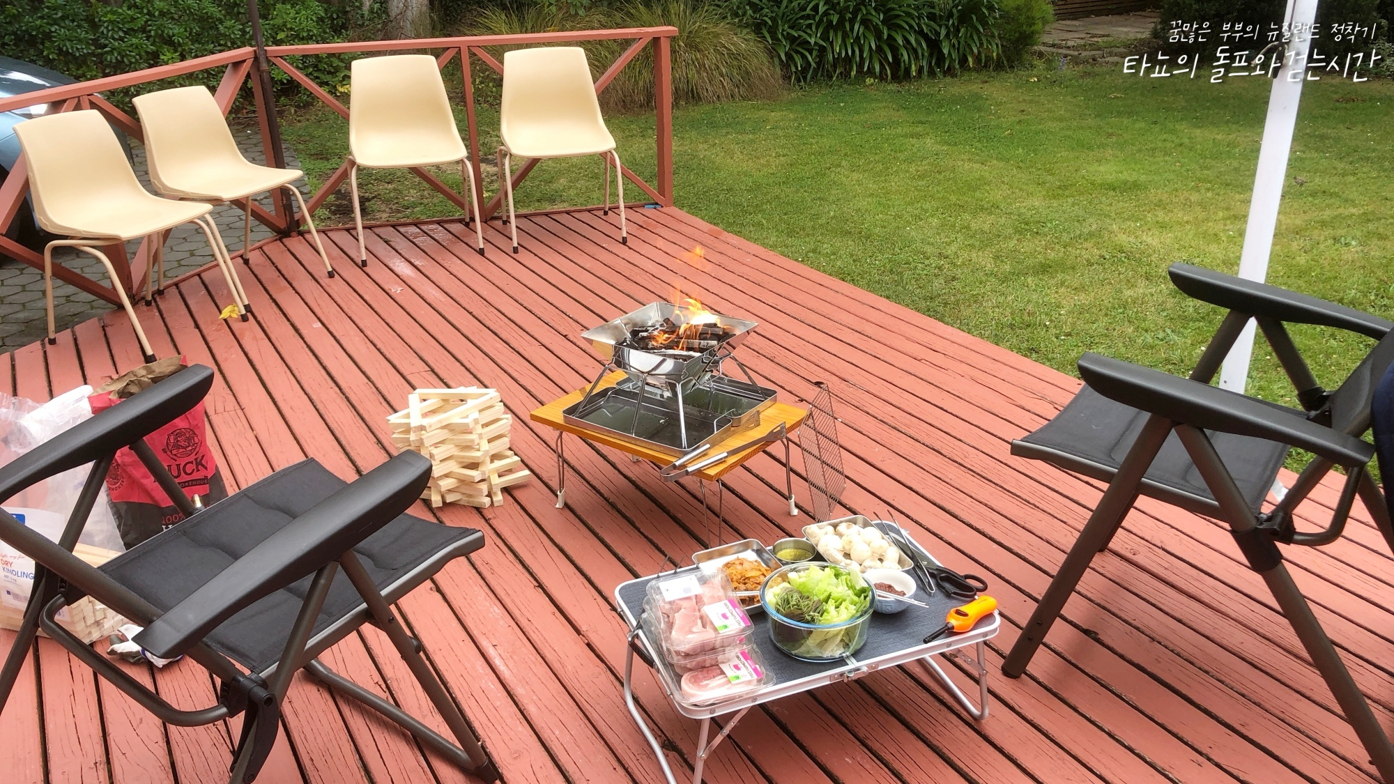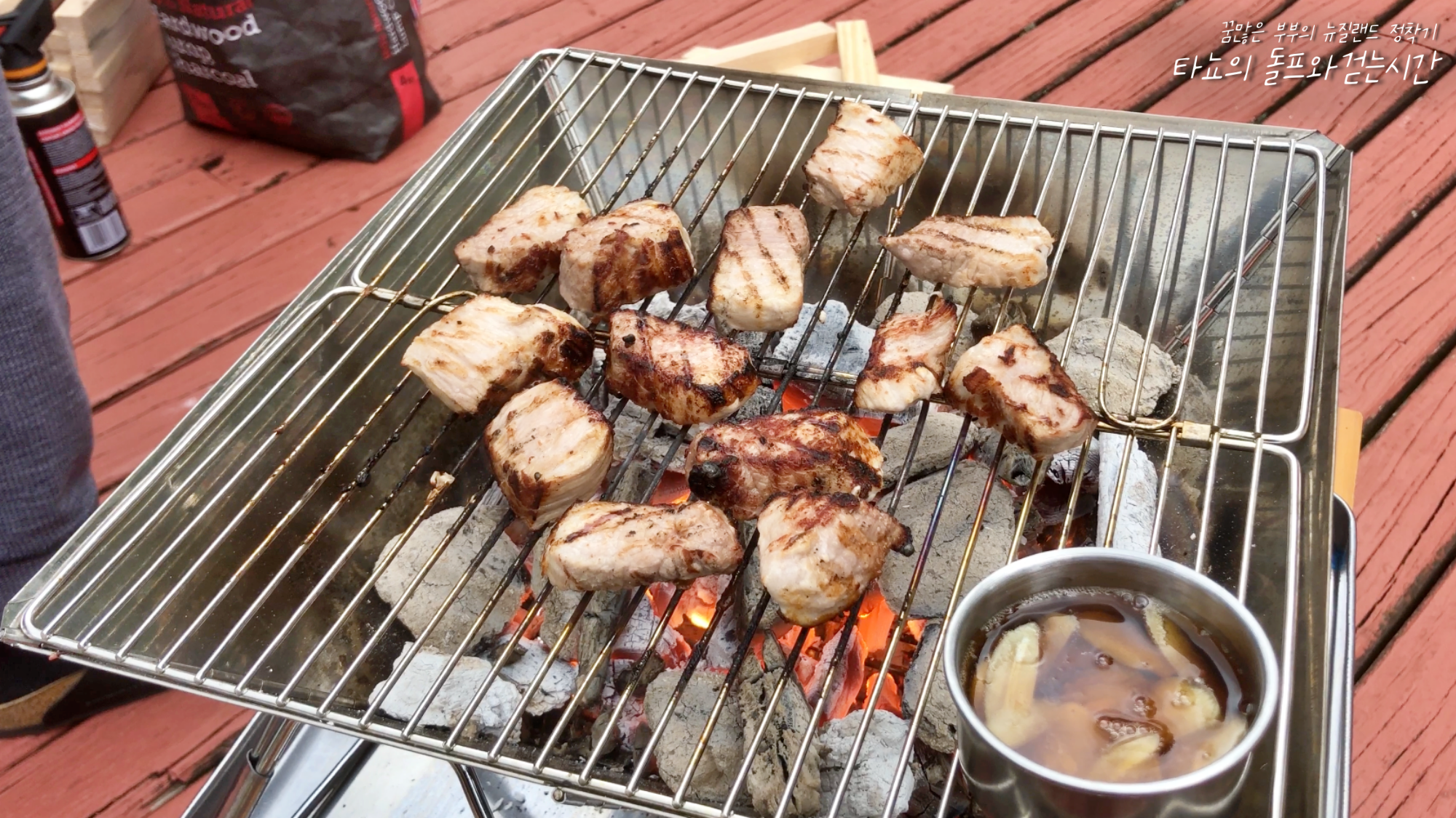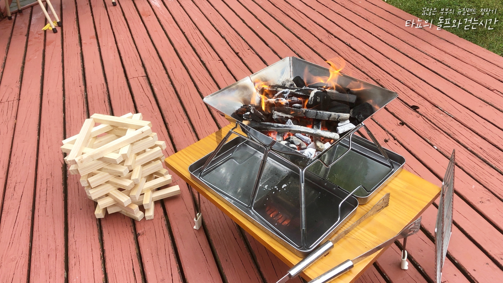 며칠 전 언니가 보낸 택배 박스에서 꺼낸 접이식 화로를 개시했다. 비록 제대로 된 장작을 구하지 못해 스타터 장작인 각목 비슷한 것을 구입할 수밖에 없었지만, 그래도 나름 만족했다.
