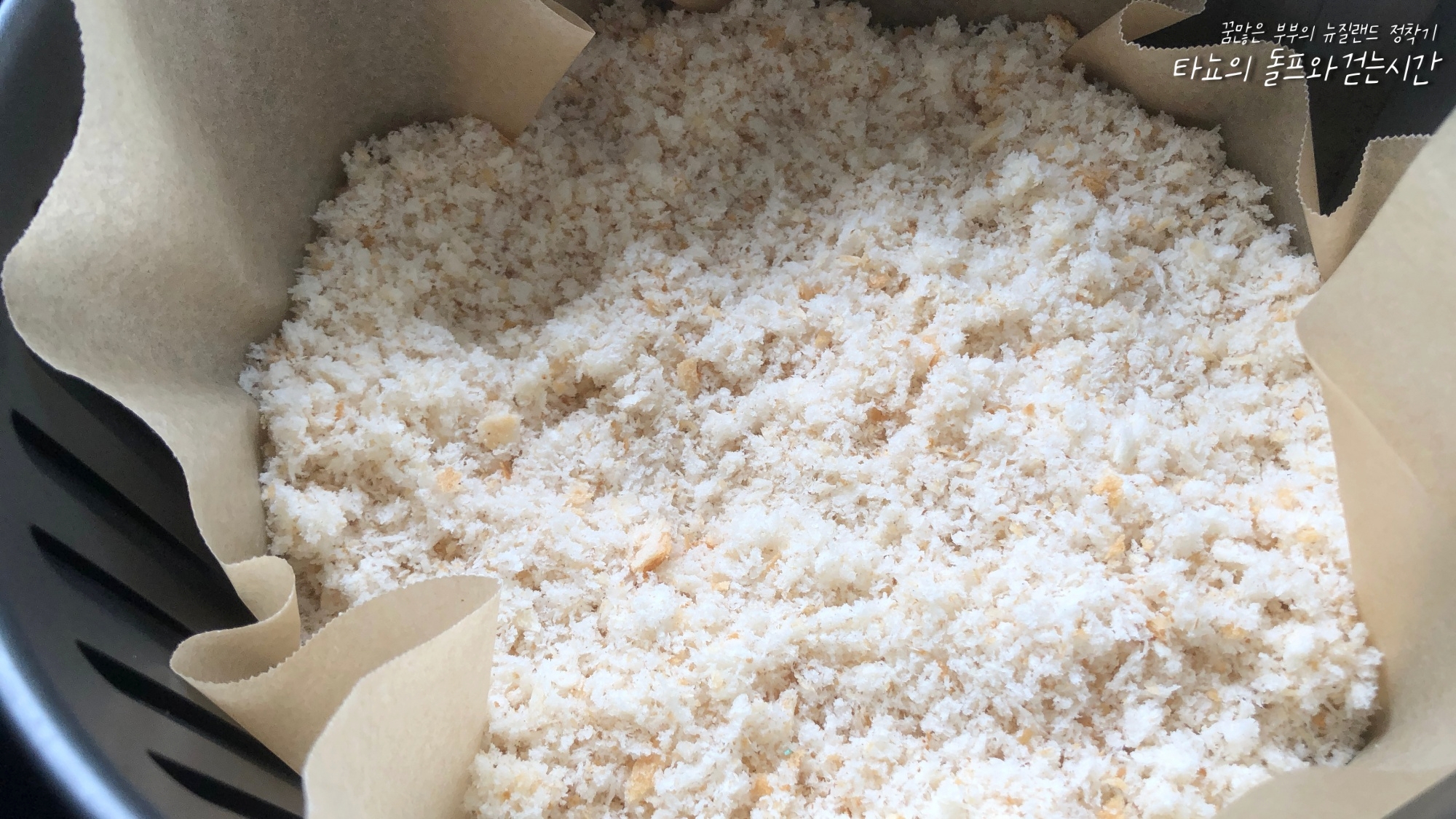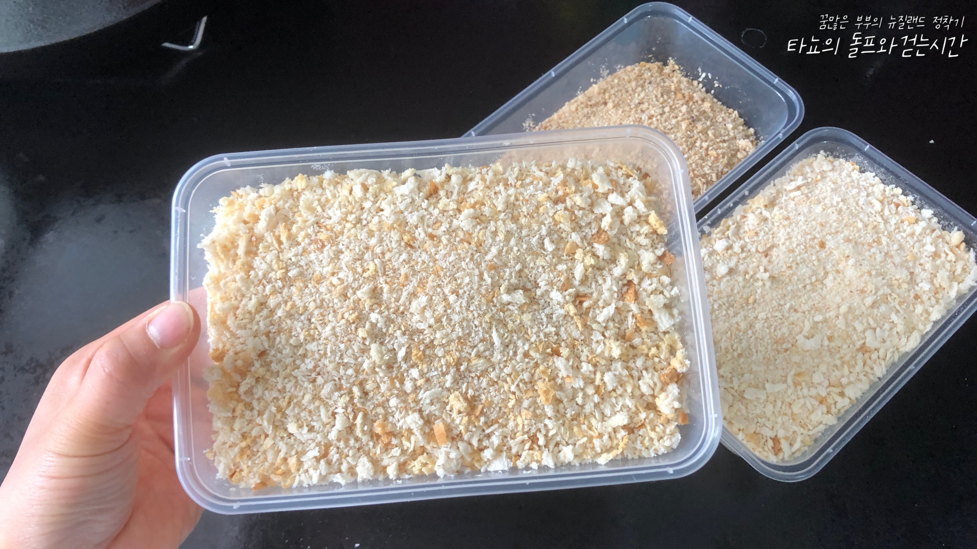 어쨌든 만족스러운 입자와 바삭함을 고루 갖춘 건식 빵가루가 완성되었다.