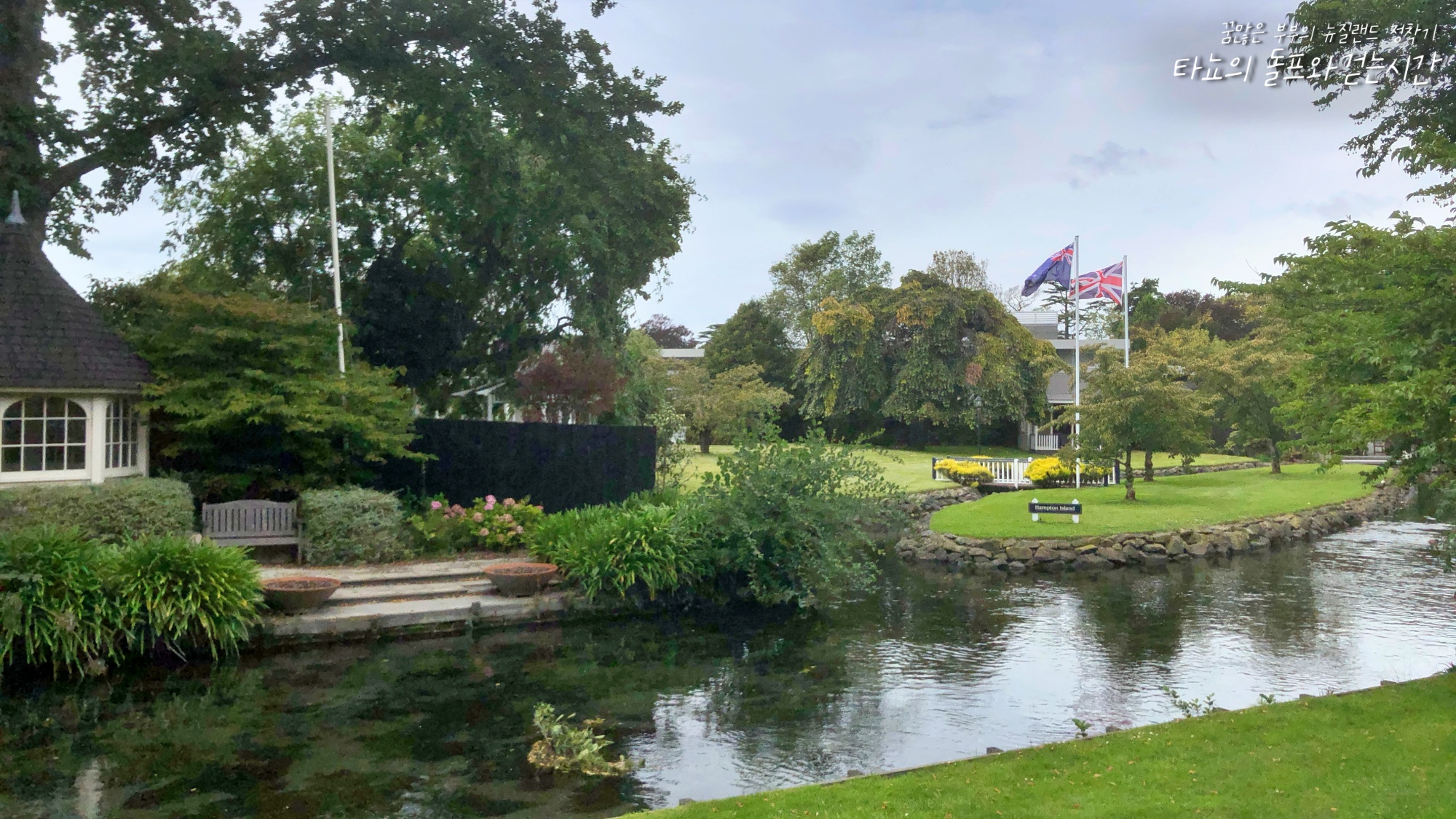 길을 따라 걷다 보니 유독 눈에 띄는 집이 있었다. 뉴질랜드와 영국 국기가 동시에 휘날리는 것을 보니 아직도 열렬히 영국을 사모하는 1세대 영국 이민자의 집인 것 같다. 집 앞에 있는 아주 작은 섬에 국기를 세워두고 명패를 달아 '아일랜드'라고 적어뒀더라. 집 정원에 이어 흐르는 강물과 뒤로 이어지는 모나베일 공원까지, 이런 뷰를 가진 집이라면 정말 비싸겠지. 휴양지가 따로 없었다.