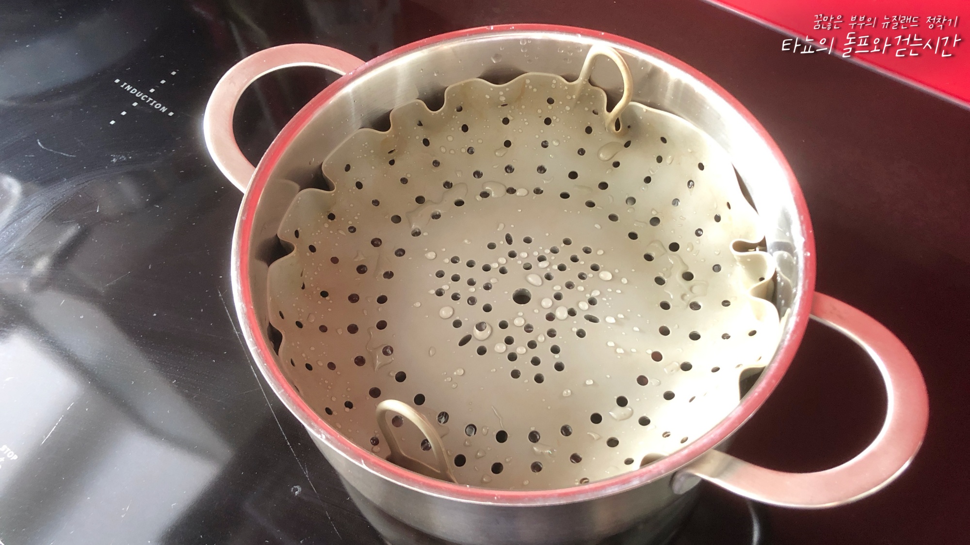 이왕 산거 맛있게 먹어야하지 않겠나. 촉촉하게 분식집 아줌마가 썰어주는 순대처럼 맛있게 쪄주겠다고 호언장담을 하고 주방으로 들어왔다. 순대를 조리하는 방법은 물에 넣어 삶거나 전자레인지에 돌리거나 찜기에 올려 찌는 방법 등이 있다. 그중에서도 가장 클래식한 방법으로 나는 찌는 것을 선택했다. 냄비에 물을 넣고 실리콘 찜기를 올렸다.