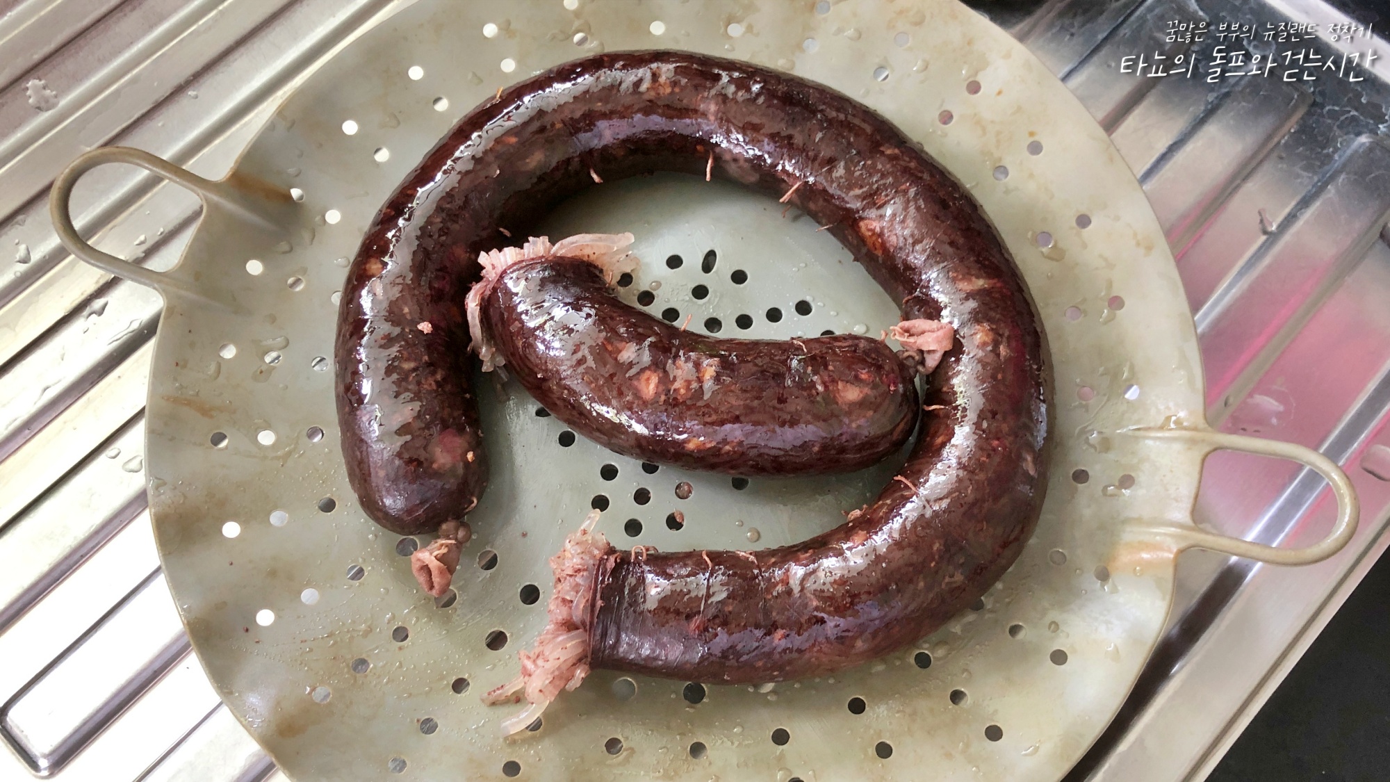 한국에서 순대를 직접 삶아 먹을 일이 얼마나 있겠냐만은 혹시라도 냉동 덩어리 순대를 구입한다면 해동시킬 것 없이 그냥 통째로 찜기에 넣어 물이 끓을 때부터 딱 15분만 삶으면 된다. 그렇게 삶은 순대는 파는 순대 부럽지 않다.