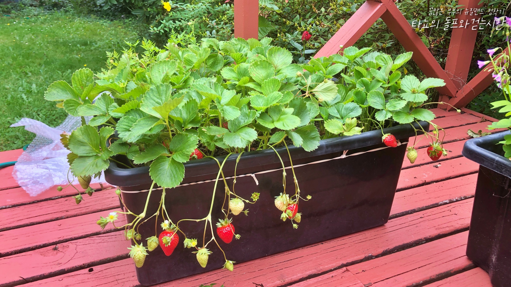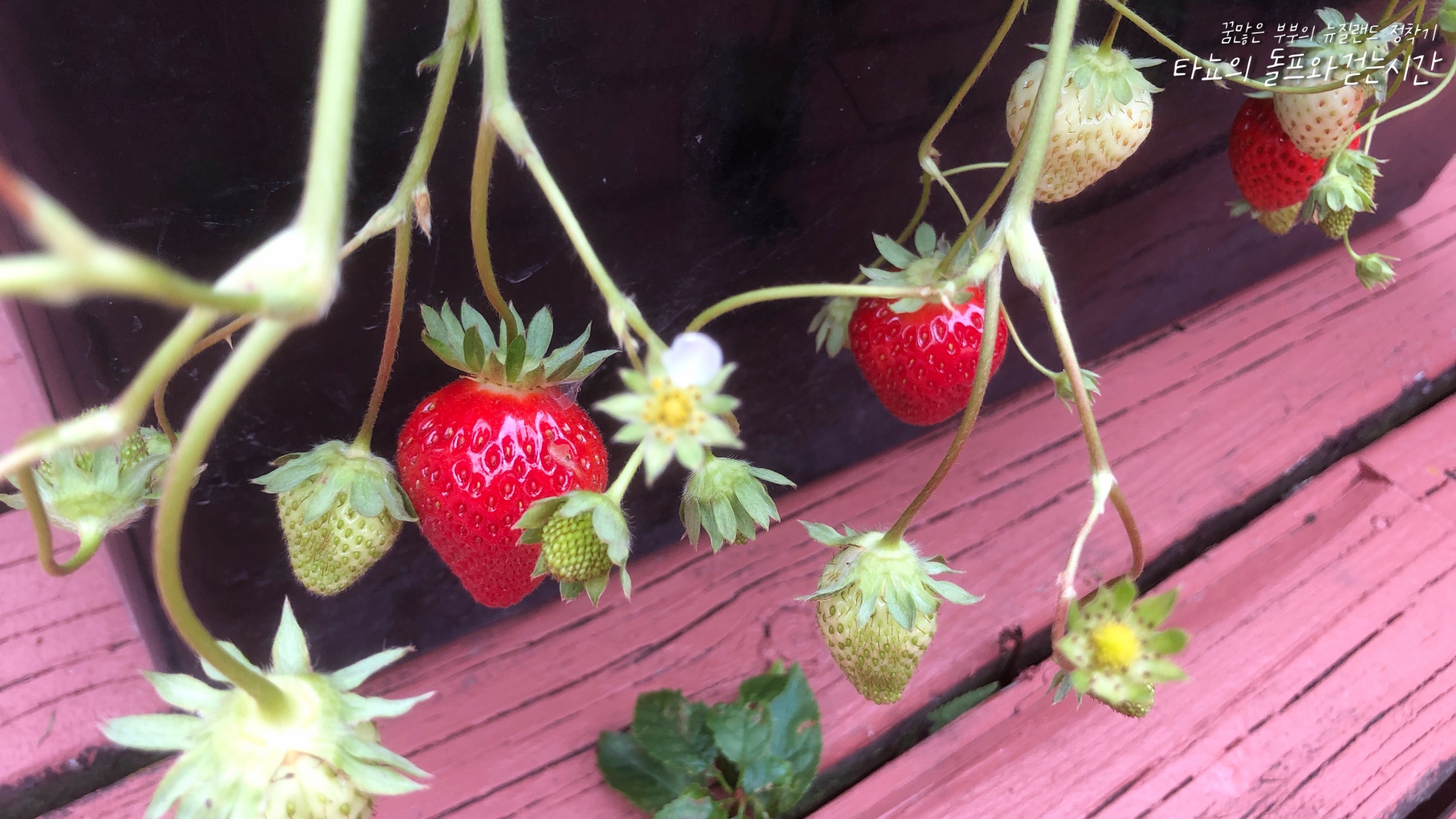 딸기가 자리를 잡은 것이 하필이면 여름의 끝자락이라 조금 아쉽긴 하지만, 그래도 만족하고 감사하며 이 기쁨을 누려야지.