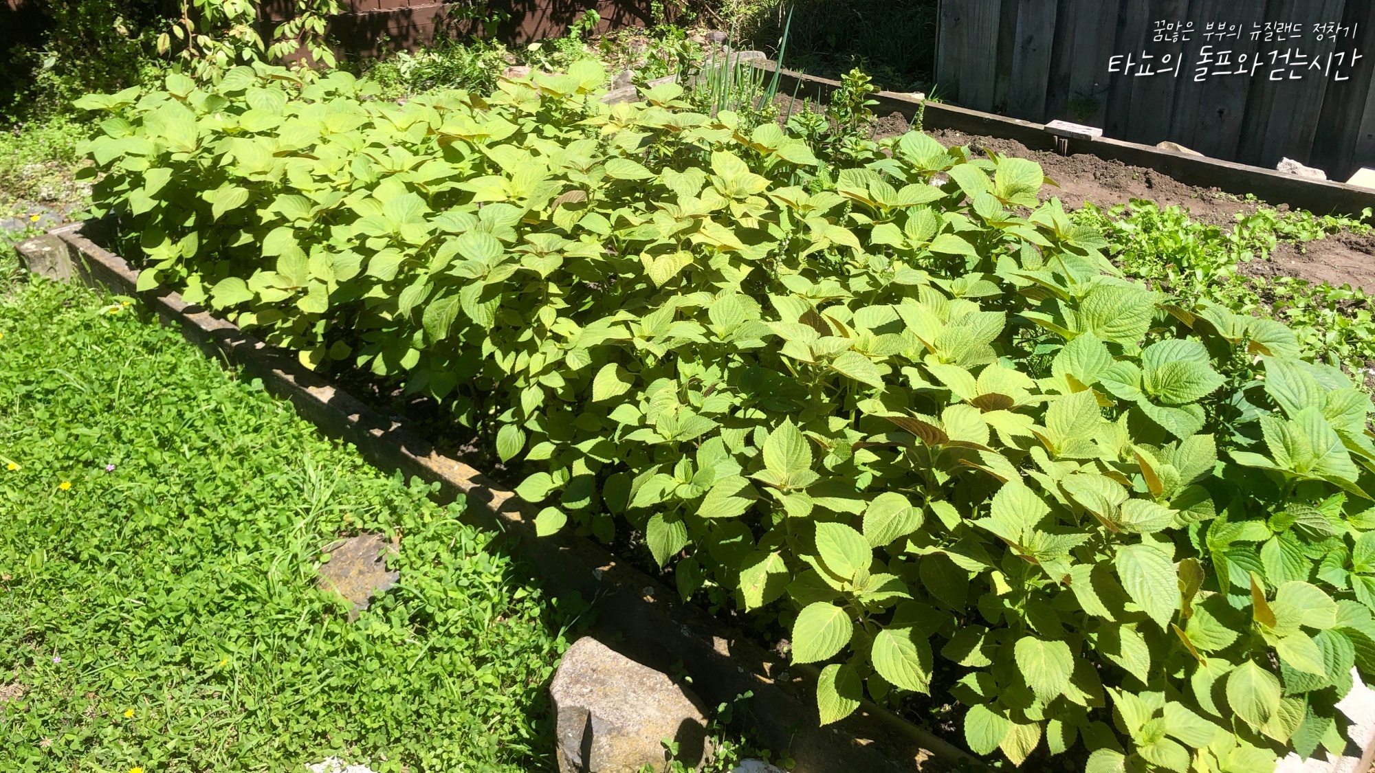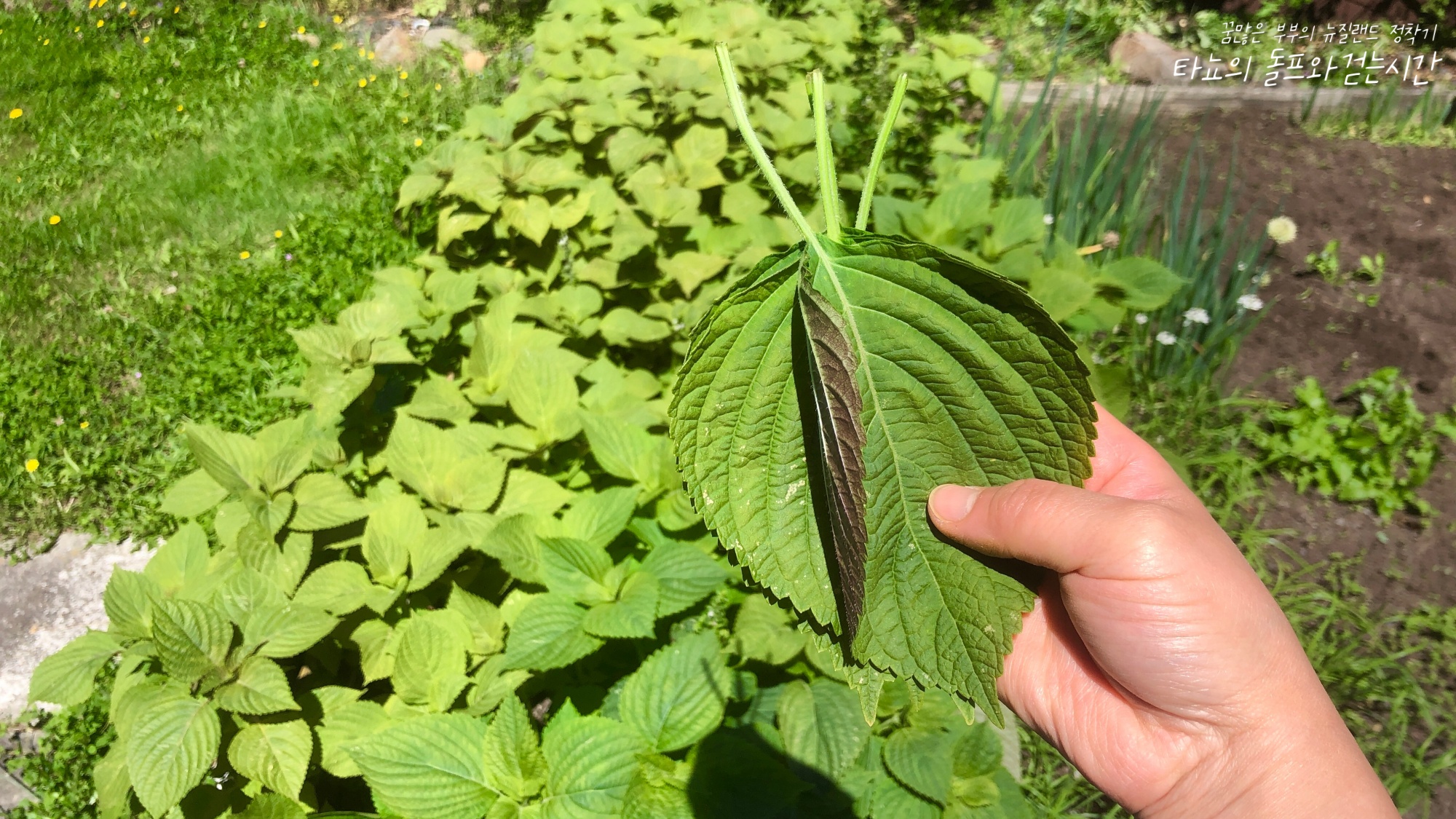 그래도 조금만 더 그늘진 곳에 심었다면 깻잎이 색도 더 진한 초록빛에 조금 더 야들야들한 식감을 자랑했을텐데, 햇볕이 하루 종일 드는 자리에 바람도 잘 맞는 위치라 잎이 많이 거칠다.