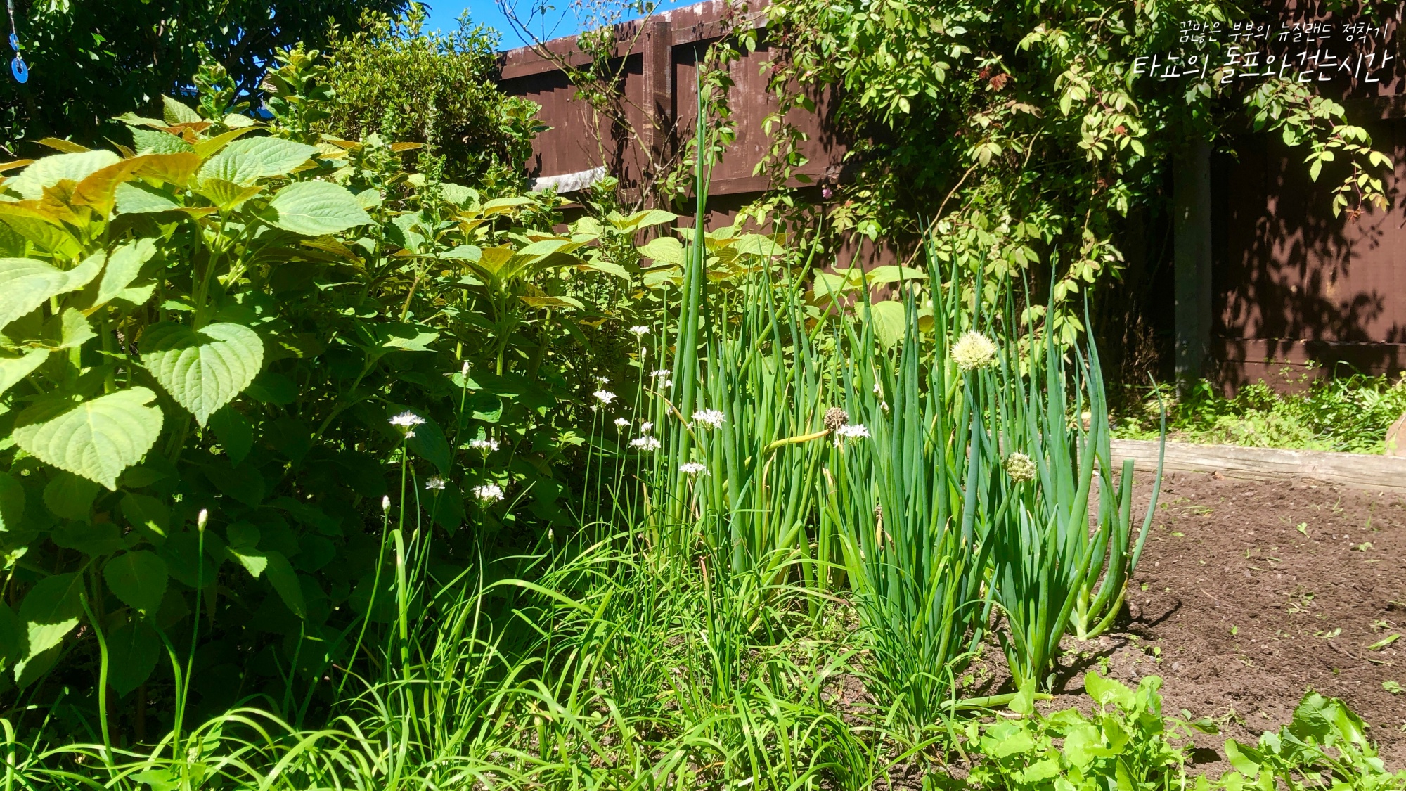 부추도 꽃이 피기 시작했다. 부추꽃은 참 앙증맞고 예쁘다. 지난 가을에 받아둔 부추 씨앗이 한가득인데 이번에도 씨를 받아야 하나 고민이 된다. 부추는 한번 심어두면 철마다 꾸준하게 올라오기 때문에 다시 씨앗을 뿌릴 일이 없었다.