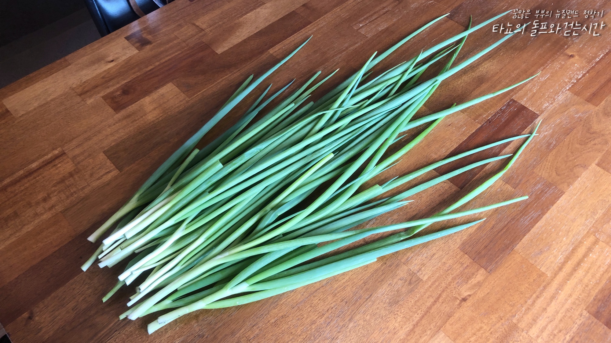파도 이만큼 수확했다. 가장 길게 자라난 파는 1미터가 넘었는데 이렇게 튼튼하고 꼿꼿하게 손상없이 잘 자란 파는 한국에서도 본 적이 없었다. 내가 키웠다 싶은 마음에 괜히 뿌듯했다. 물론 실상은 자연이 키웠다. 부추에 깻잎에 파까지 수확했으니 오늘 저녁 식사는 기필코 모둠전이다. 파전, 깻잎전, 부추전, 부추 파전, 부추 깻잎전, 모둠전으로 다양하게 준비해야지.