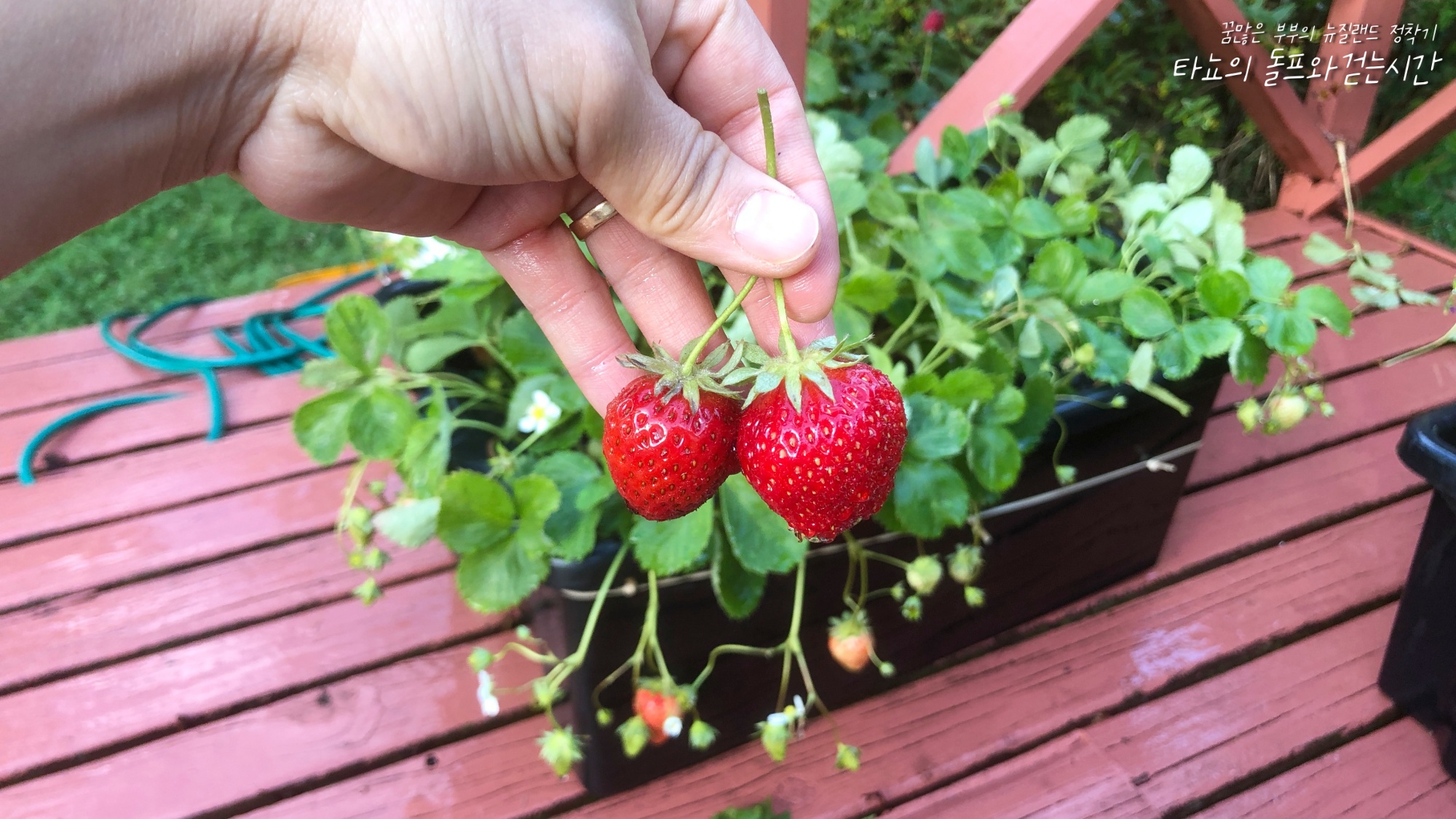 딸기가 자리를 잡은 것이 하필이면 여름의 끝자락이라 조금 아쉽긴 하지만, 그래도 만족하고 감사하며 이 기쁨을 누려야지.